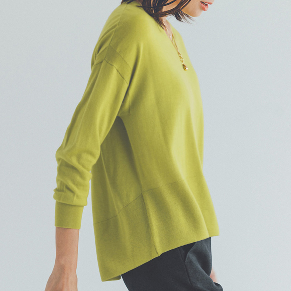 • 天竺部分 細番手の梳毛ウール100%の上質な糸を使用。なめらかで微光沢感があり高見えが叶います。手洗い可能でお手入れ楽ちんなのもポイント。