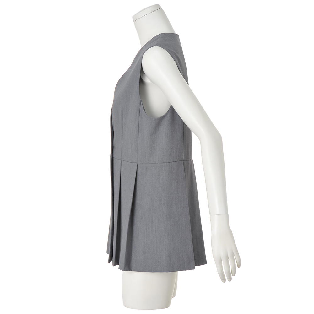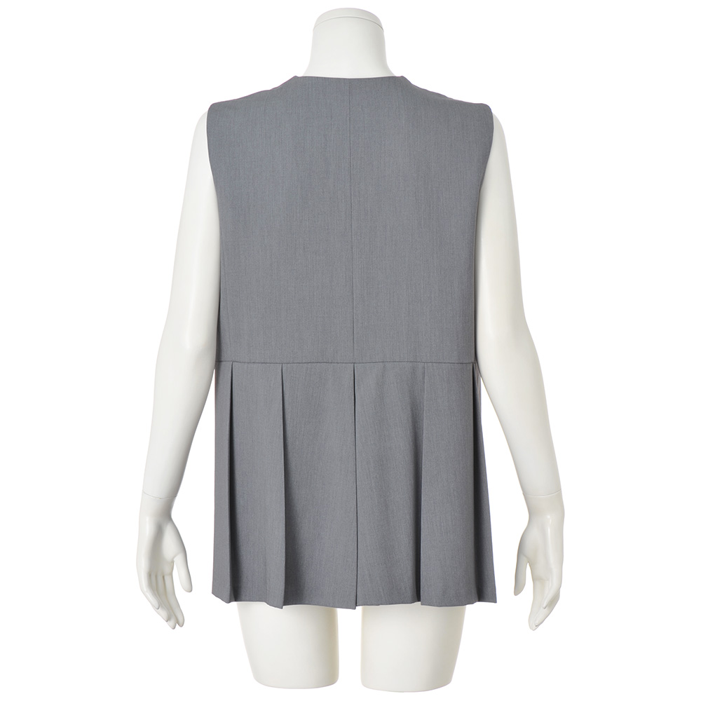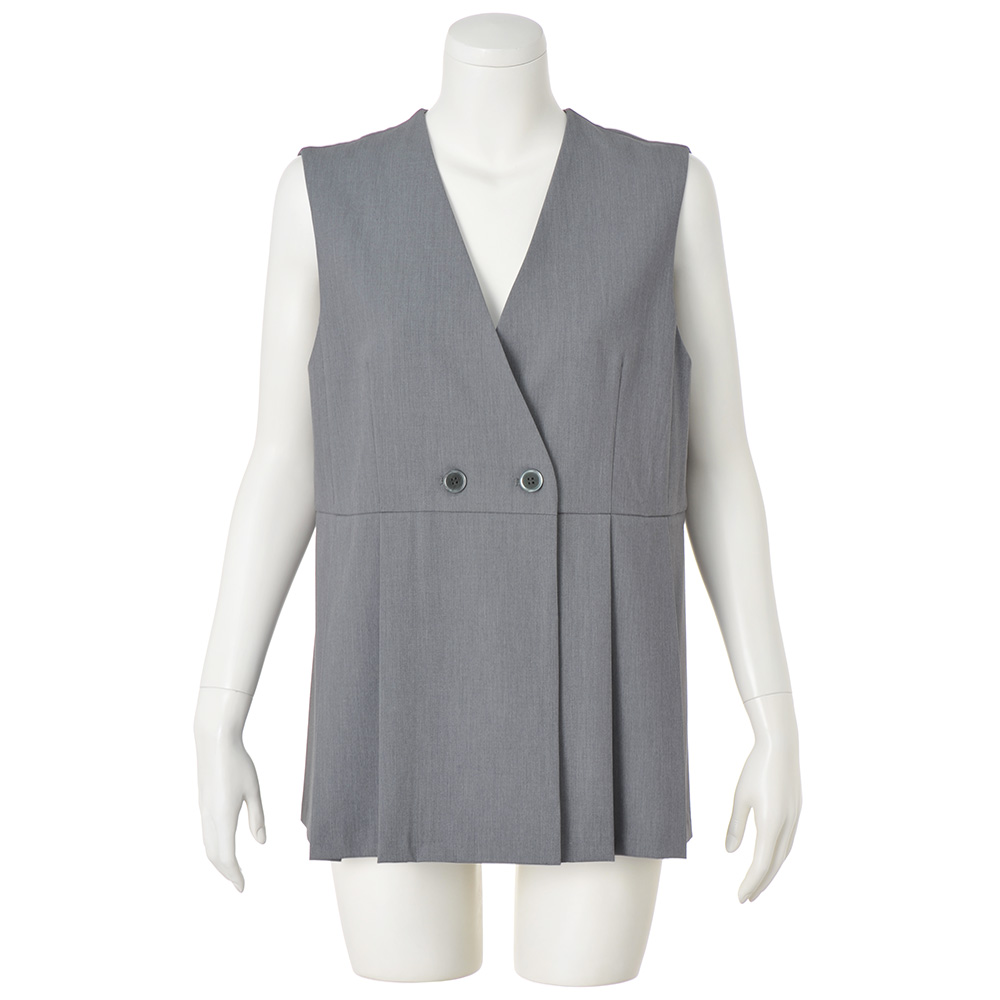 オンオフ問わず活躍するアイテムが味方きれいな目面とドライタッチ生地でジレを仕立てました。前後にほどこした裾のプリーツ、ダブルの合わせがポイント。女性らしさとマニッシュさを程よくミックスしています。オンオフ問わず、シーズンレスで活躍します。