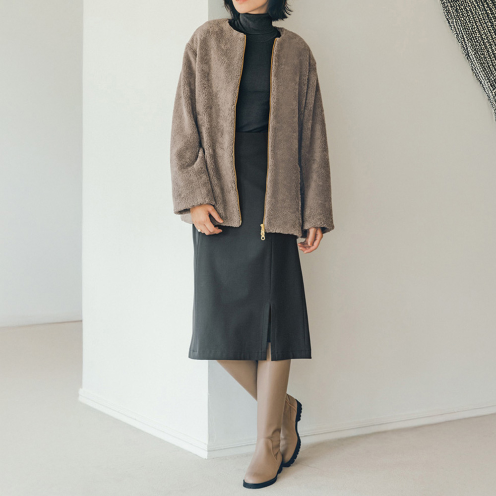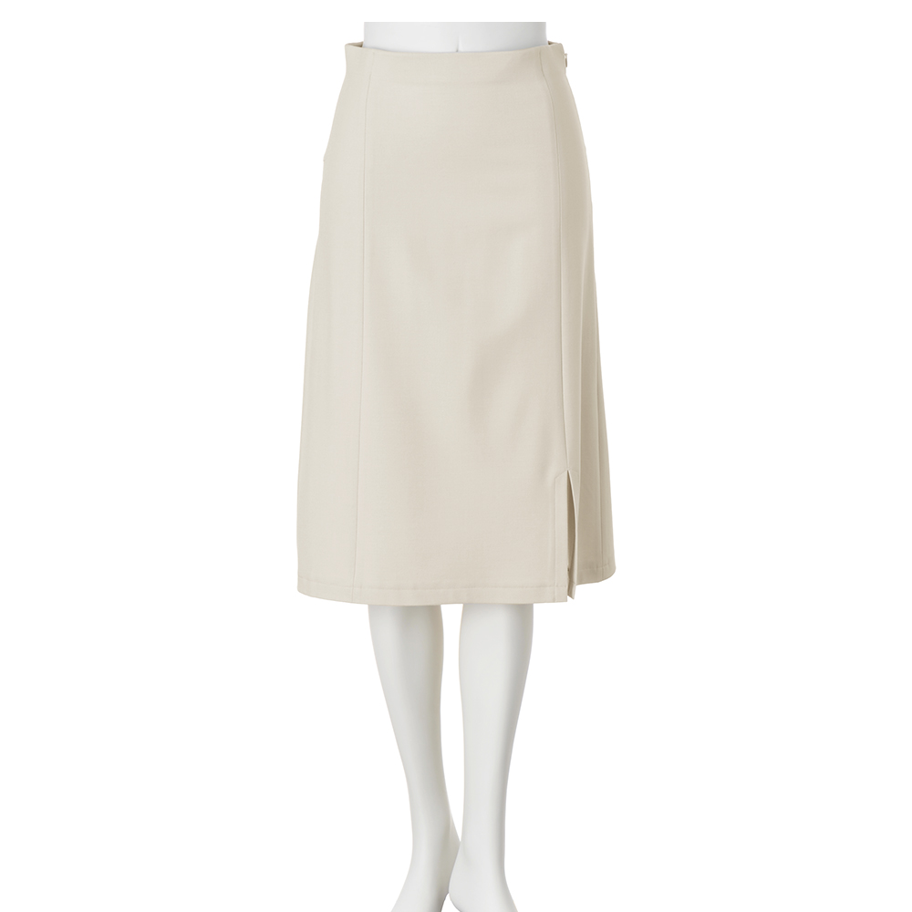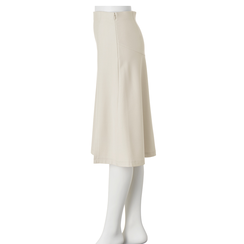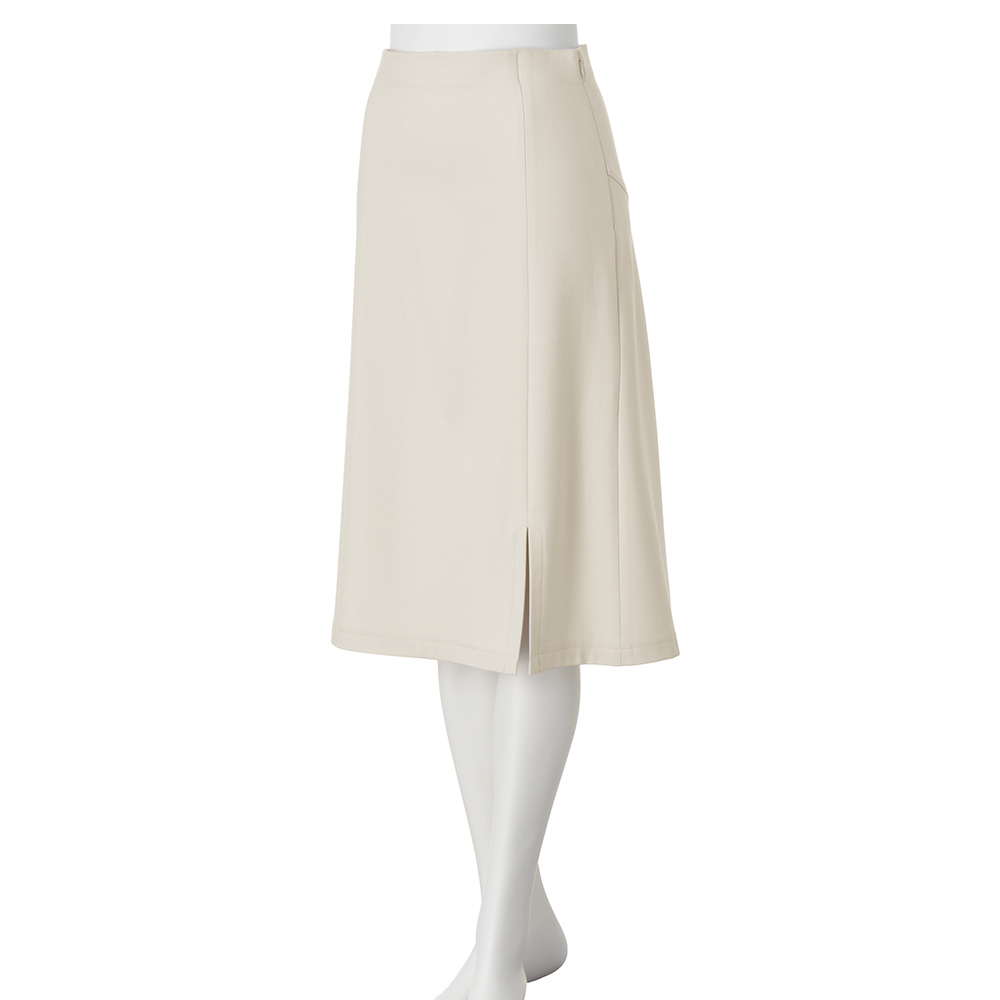 [吸湿発熱] [保温] [イージーケア] [2ウェイストレッチ]吸湿発熱・保温機能つきで、寒さが残る時期に嬉しいスカート。生地の裏側は起毛加工がほどこされています。美シルエットのためのこだわりも満載!2ウェイストレッチのはき心地のよさと、ご家庭で洗えるイージーケアもポイントです。 美シルエットポイント 1.前から見るとスリット入りのセミタイトですっきりシャープな印象 2.後ろはヒップ下の切り替えで美しいマーメイドラインに変化 3.インベルトなしのハイウエストデザインで腰位置を高く見せつつお腹まわりをすっきり 4.シルエットが映えてボディラインを拾いにくい程よい生地感