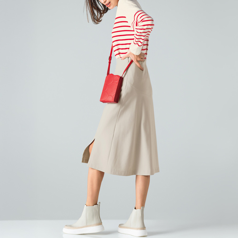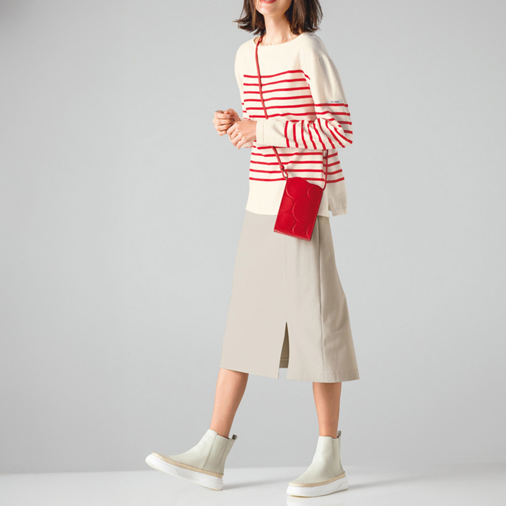 (ア)オフベージュ Side Style ウエストインでもアウトでも!バランスアップが狙えるニット&スカート コーディネート例