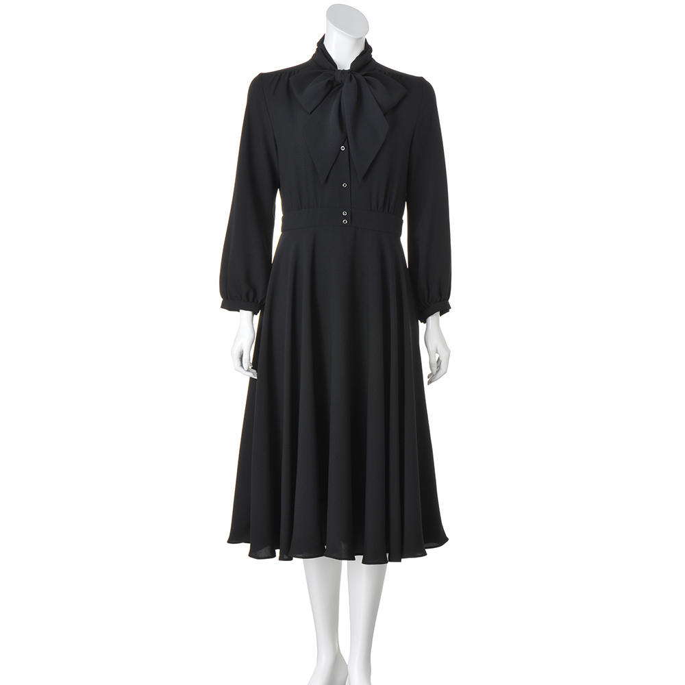 艶めきLady服一点投入で気分が上がる、“Lady”なアイテム。ボリュームのあるボウタイが顔まわりを華やかに魅せる、レディなワンピース。ウエストの切り替えとスカートのたっぷりとした分量感で、ブラウスとのセットアップのように見える、ドラマティックな一着。
