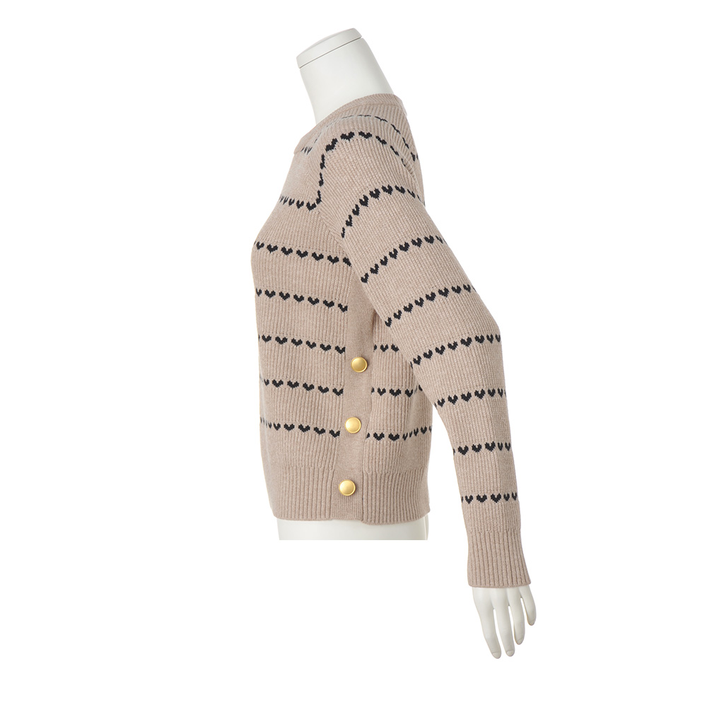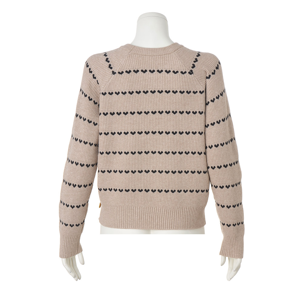 • 表面感のある畦編みにハート柄をジャカードで表現。