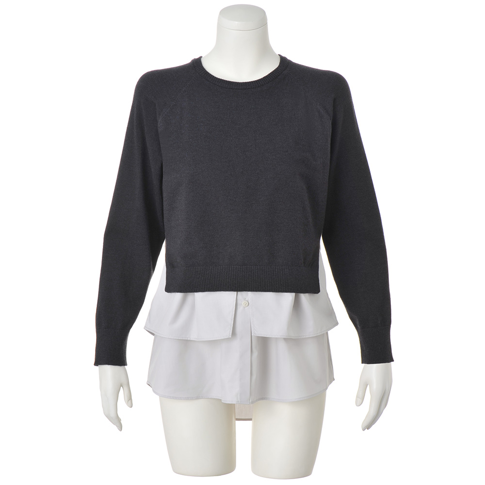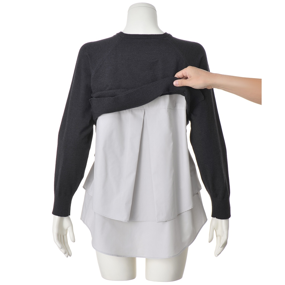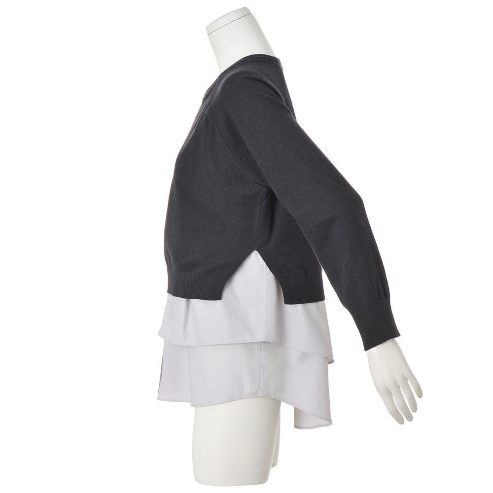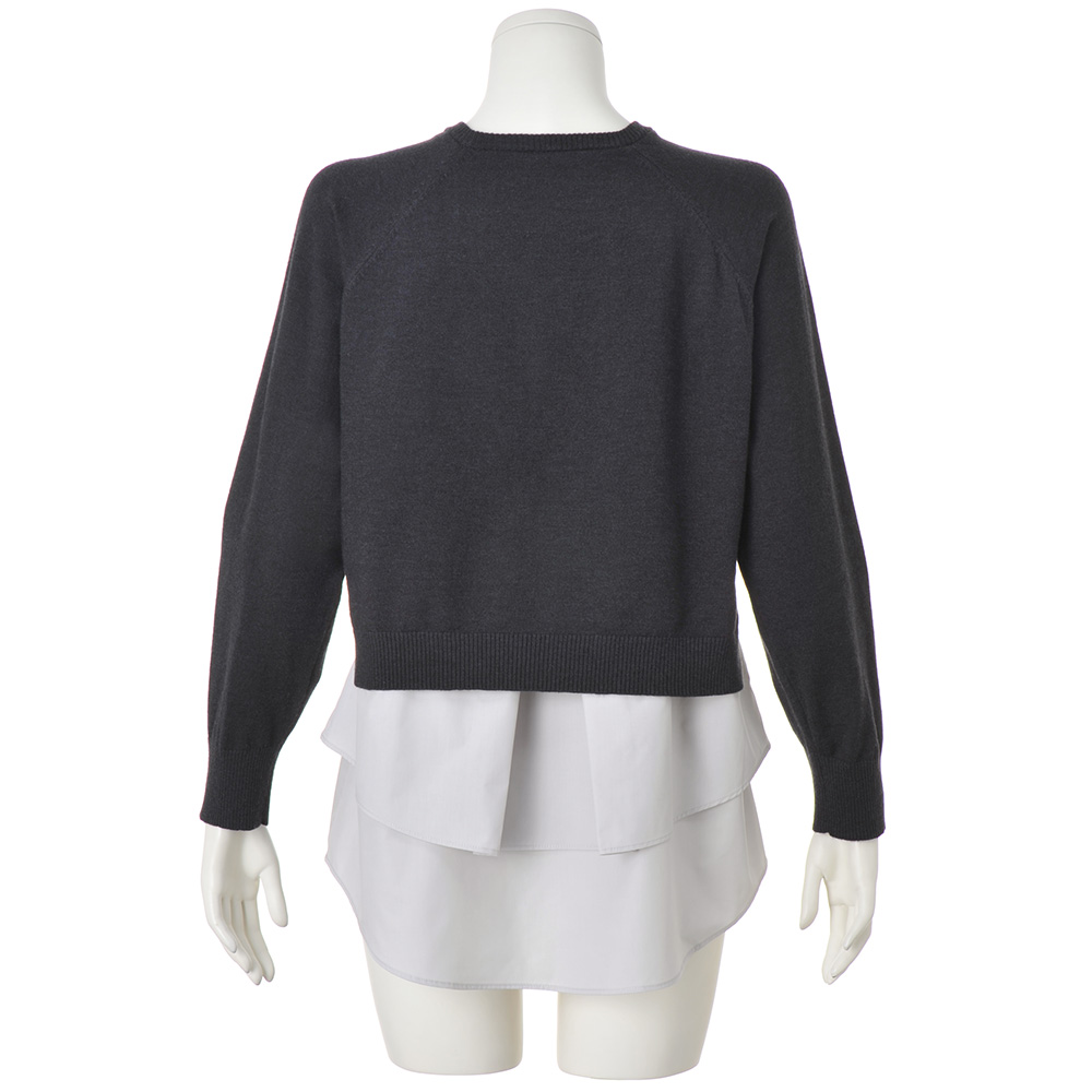 おしゃれ上級者見えが叶う一着を味方につけるショート丈ニットにシャツを2枚レイヤードしたようなデザインが目を引く一着。ニットは軽くてふくらみがあり、シャツは高密度のコットン混タイプライター。ニットのサイドにスリットを入れたり、シャツにタックをほどこし動きをつけ、リアルな重ね着感を演出します。