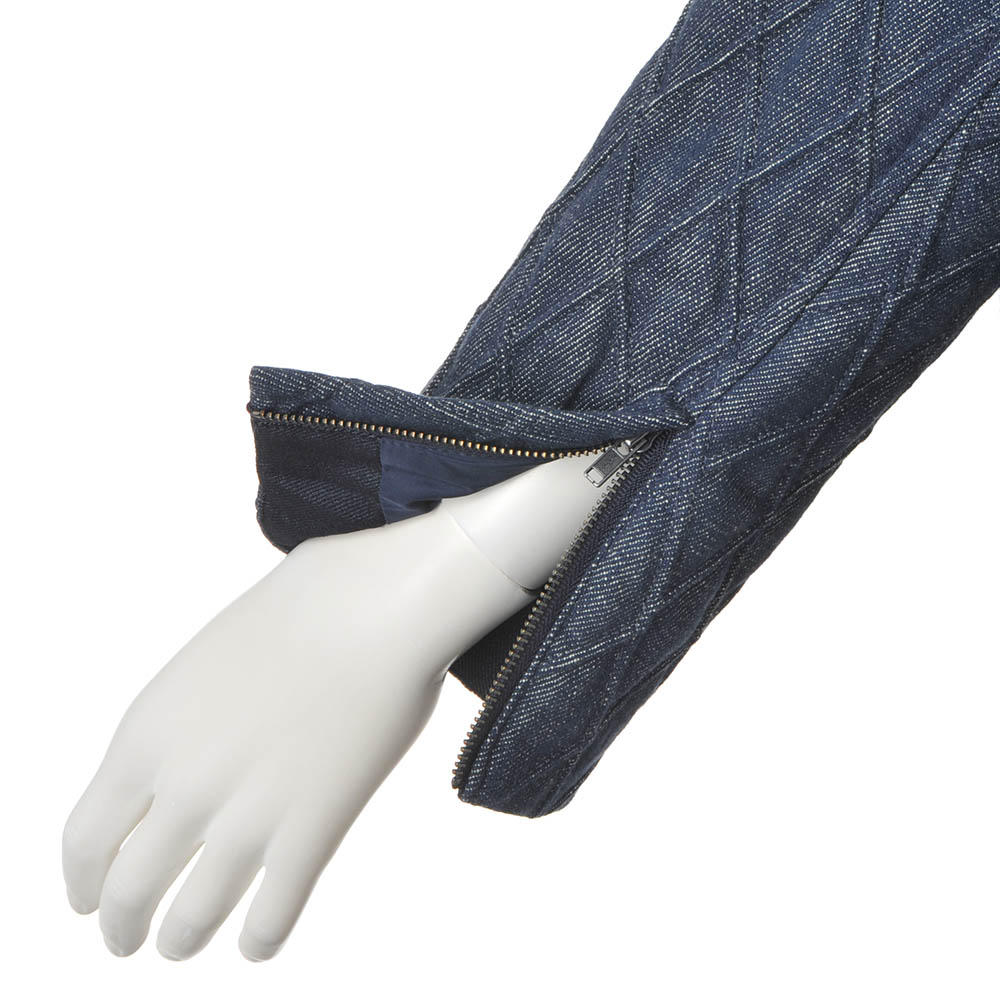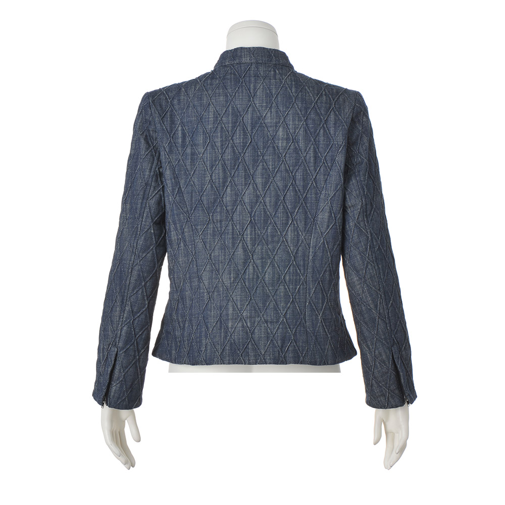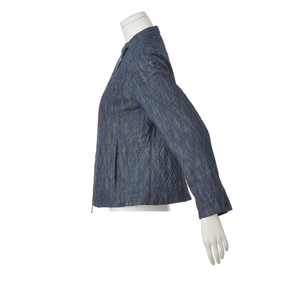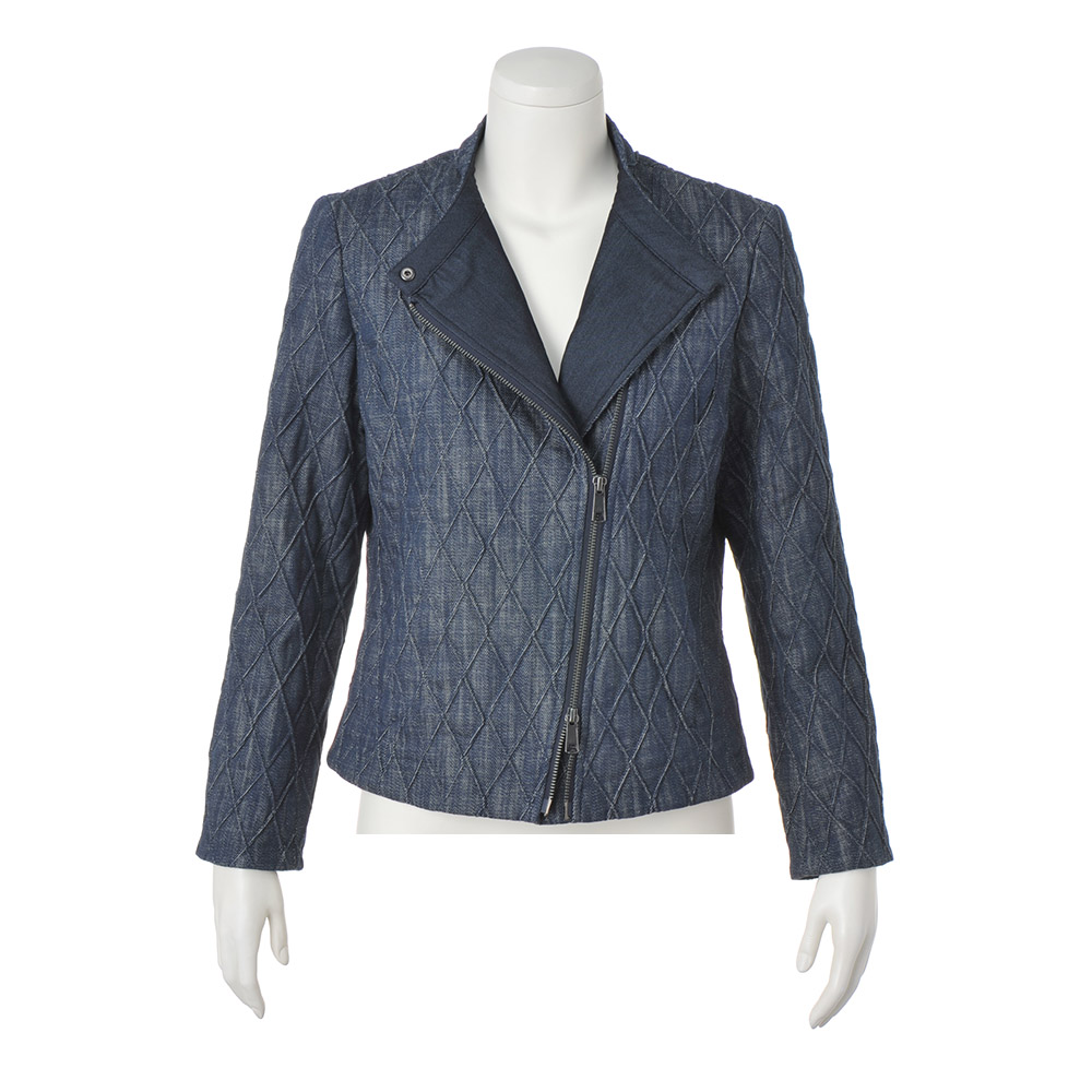 ライダースジャケットをデニムキルティングでアクティブかつ上品にクールなライダースジャケットを、DAMA世代のキャリアスタイルに落とし込んだら…。そんな発想から誕生した、キルティング加工を得意とするイタリア「TEX-LUIS」社らしい中わた入りデニム素材で仕立てたジャケットです。特筆すべきはキルトステッチ。特殊な織り機を使って2本のラインを同時に描き、凹凸のある柄が浮かび上がる逆キルトだから、ぐっと大人っぽい表情に。縦長なダイヤ柄は細見え効果も期待できます。ライダースの着こなしが決まるコンパクトなサイズ感でも、中わたの薄さと表地のしなやかさで着心地良く。纏うだけで美しく、コンフォート!洗練を授ける素材と形斜めのダブルファスナーや袖口ファスナーを利かせたライダースジャケットを、斬新な素材ときれいなフォルムで大人仕様に。