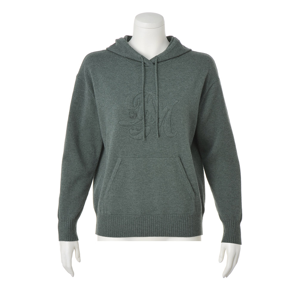 エクストラファイン ラムズウールニット 3Dモチーフ刺しゅう パーカ パーカー スウェット トレーナー PC6430