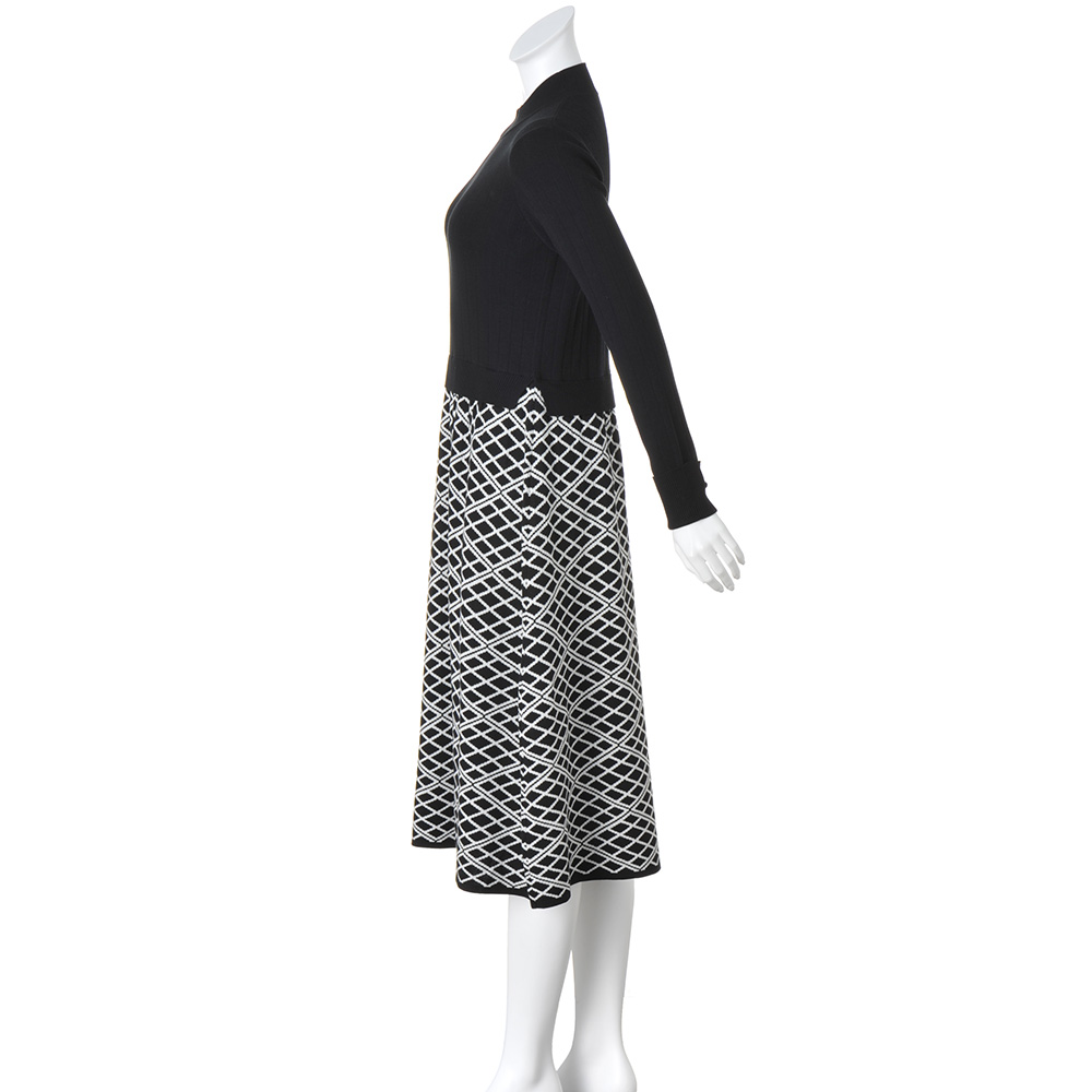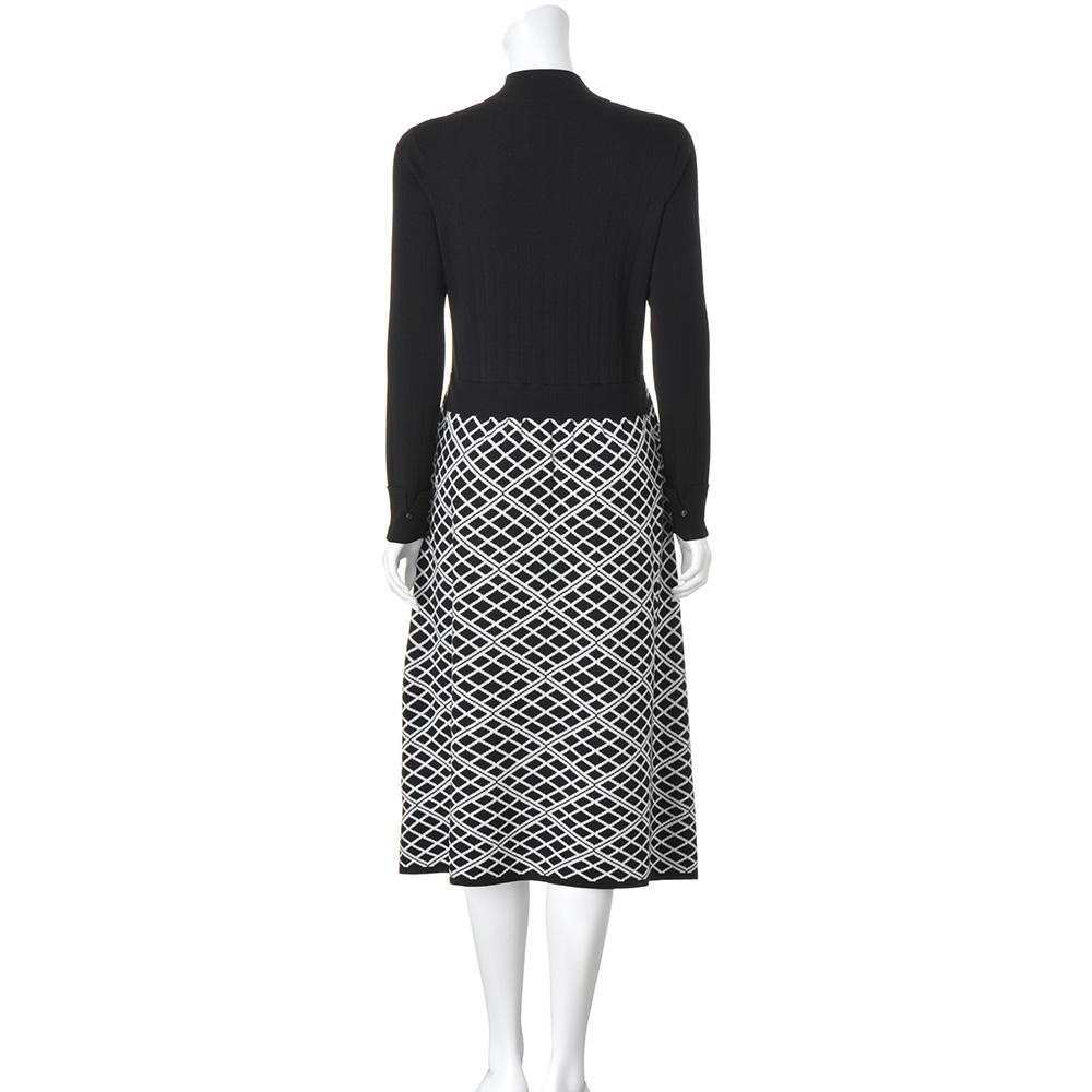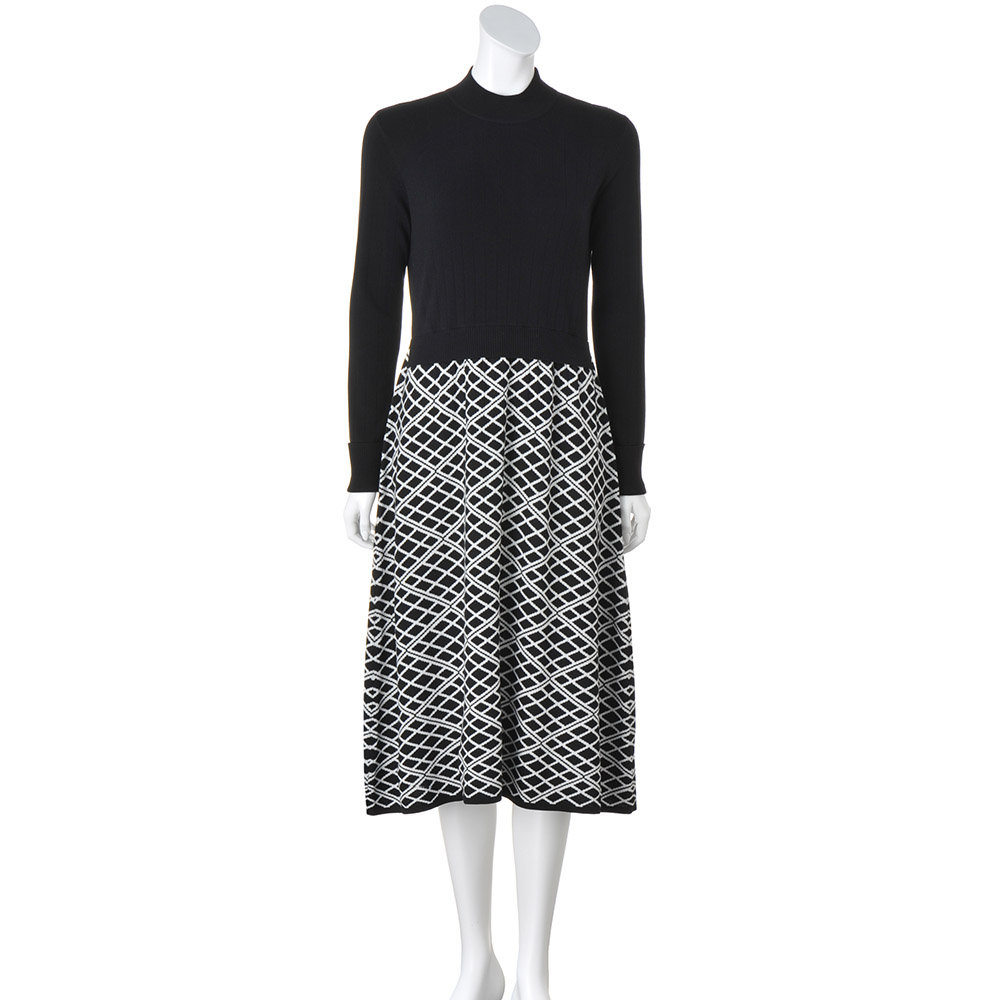 幾何学柄ドッキング風 ニットワンピース ワンピース ファッション PC6433