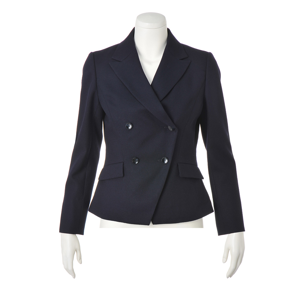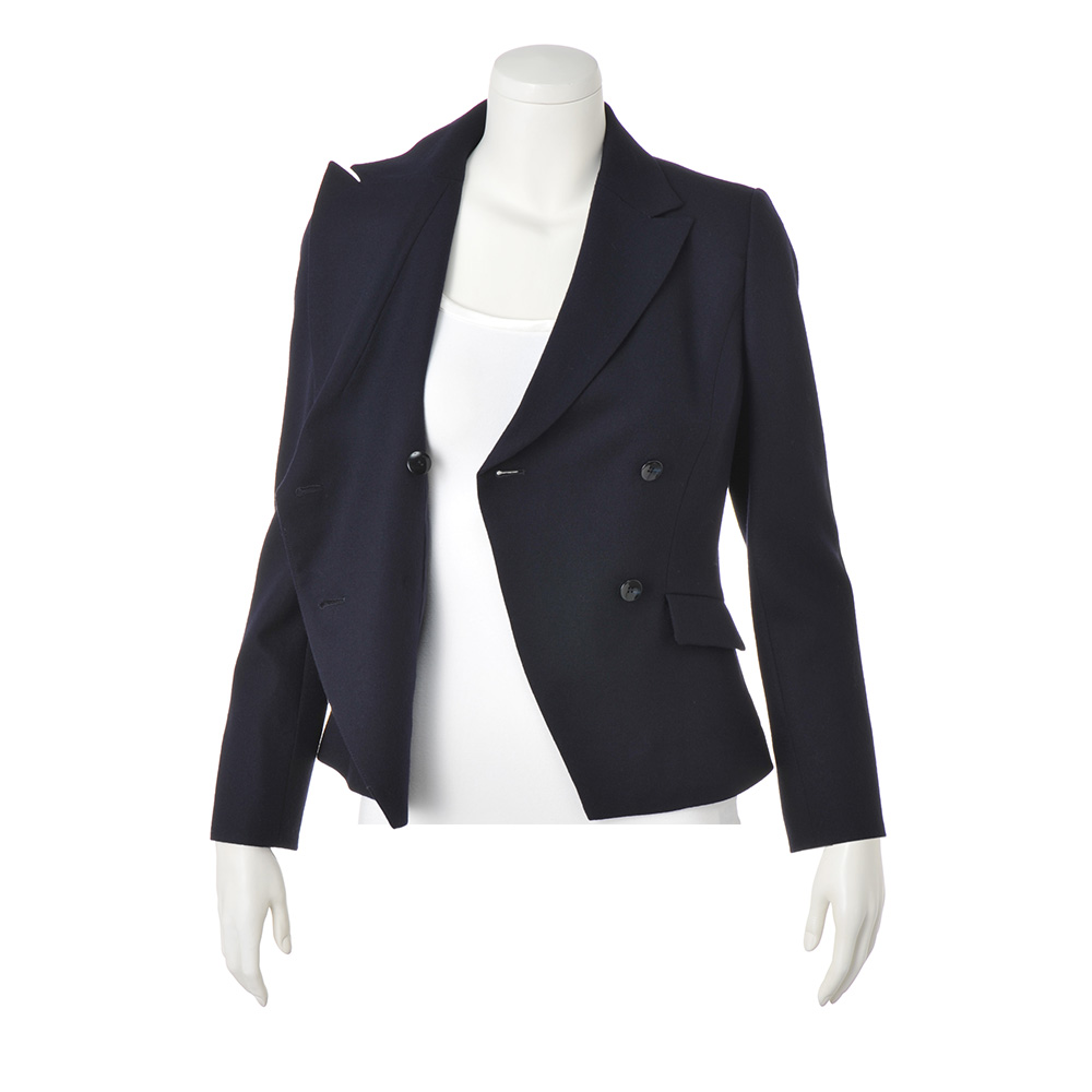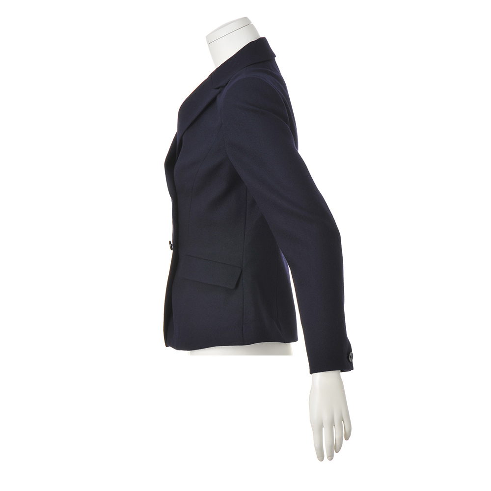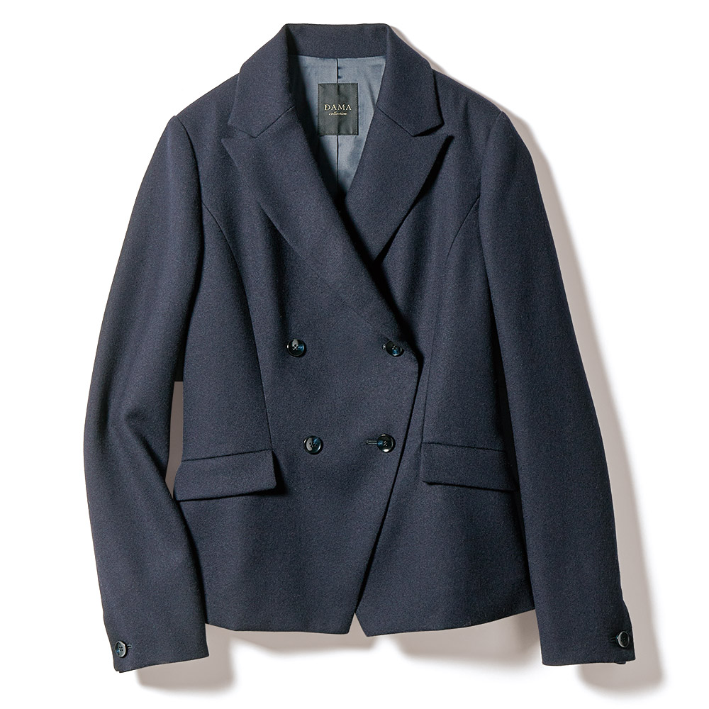 洗練を呼ぶ「オケージョン」特別な日だけではなく、オフィスやちょっとしたイベントにも。正装感に着回し力を加えたセレモニースタイルです。上質を追求したステイトメントスーツ正統派のテーラードを一段モダナイズした、鮮度高いジャケットをご紹介しましょう。素材はひと目で上質と判る、日本製クレープジョーゼット。しなやかな風合いをシャープな形に誂え、凛として麗しい女性像を描いています。ダブルジャケットは、前合わせを斜めにカットしてモードなキレ味を加味。≫ POINTパネル切り替えで立体構成された美フォルムが自慢。袖口は本開きで折り返せる仕様。