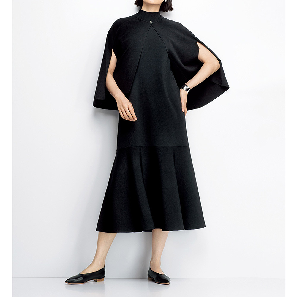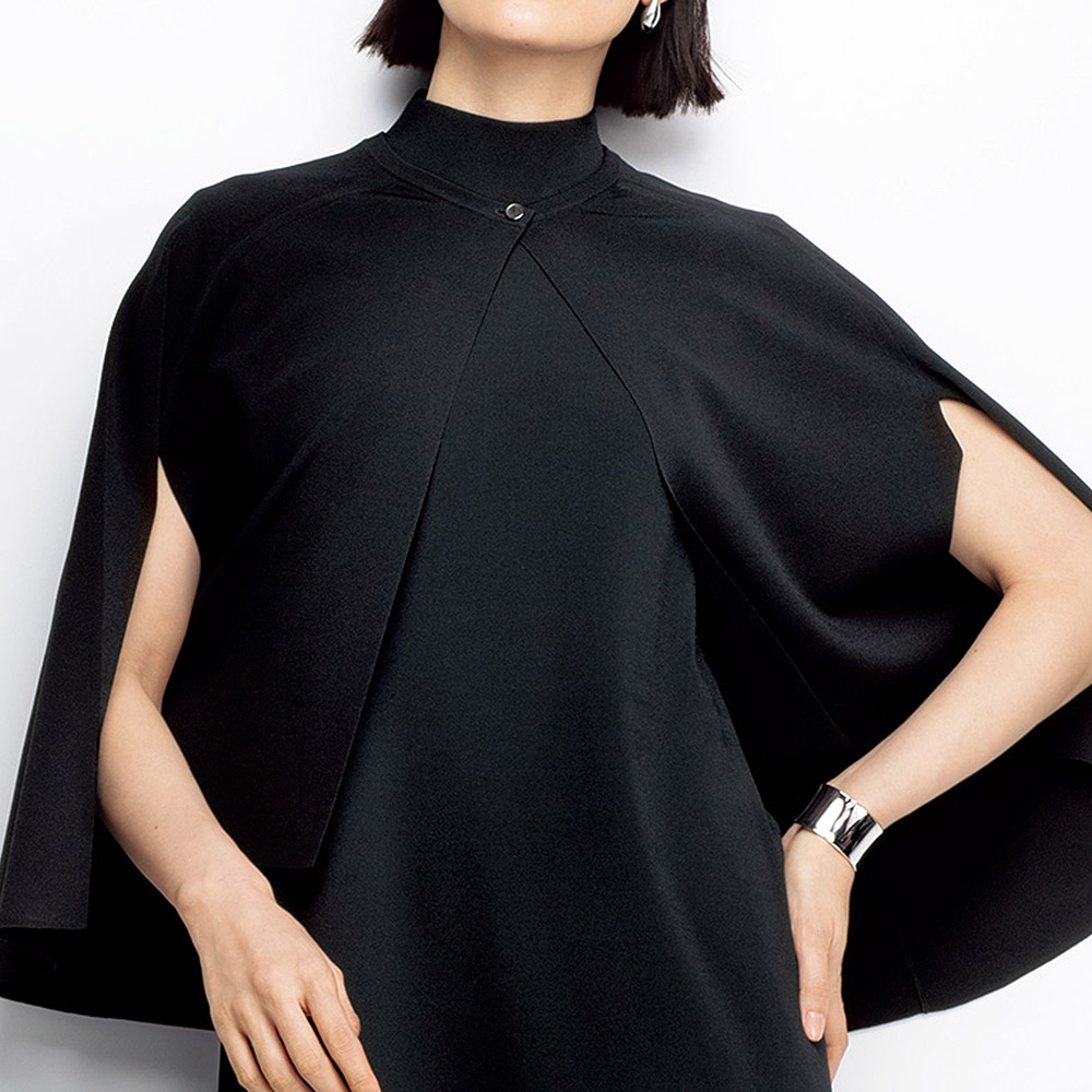 美しさを引き出してくれる拘りのフォルム。汎用性の高いポンチョ。クリアで洗練された表情は、ビスコース・レーヨン糸をハイゲージの総針で編み上げているから。しっかりとした編み地でボディラインを拾いにくいのも、魅力です。肩掛け感覚の軽やかなポンチョは、流れるドレープと後ろに向かって長くなるラウンドヘムが立体感のある美しさ。腕はスリットに通しても、裾から出しても。