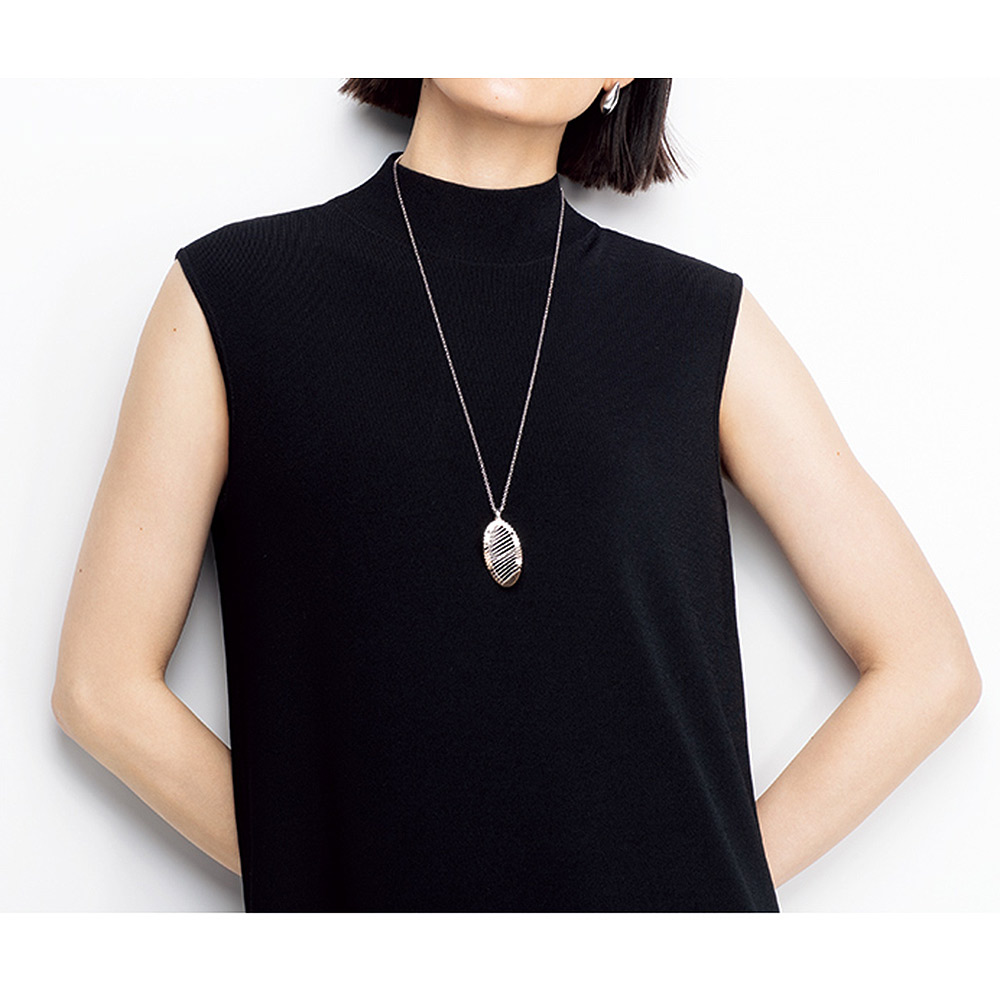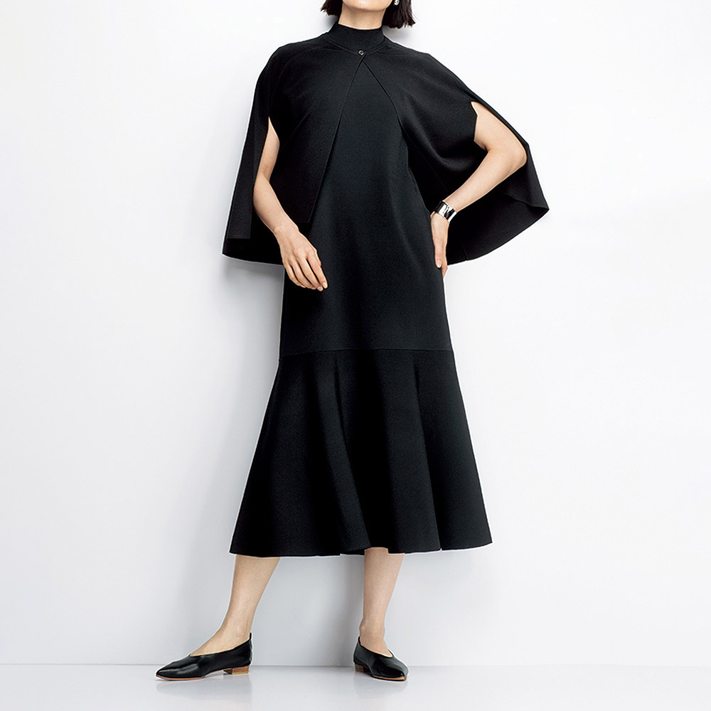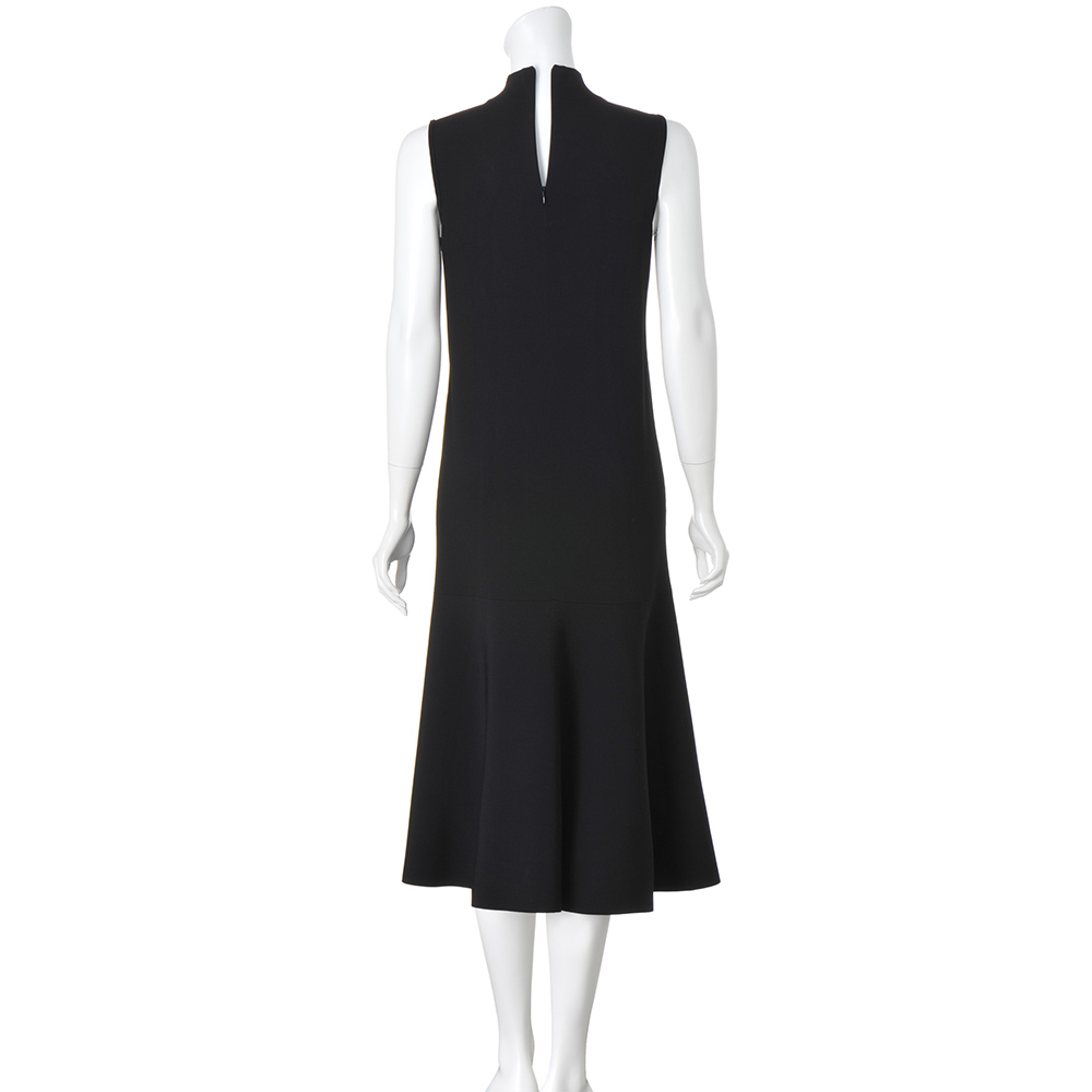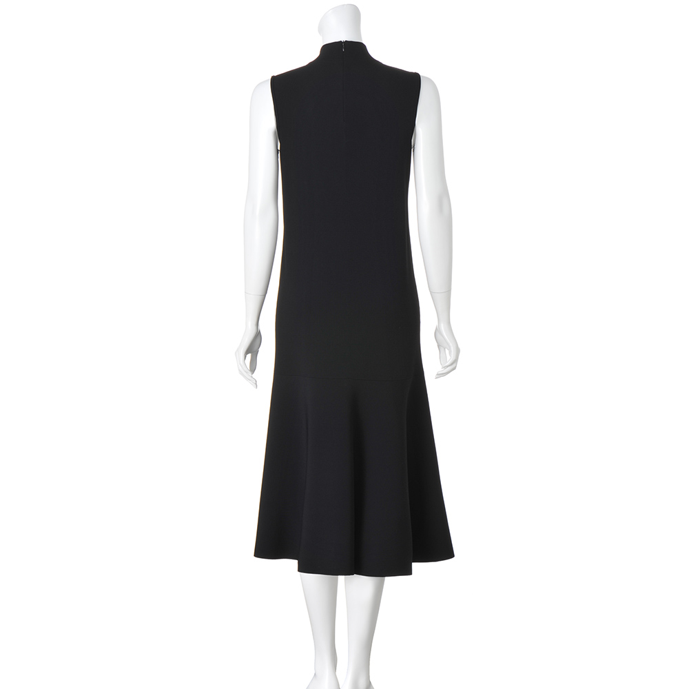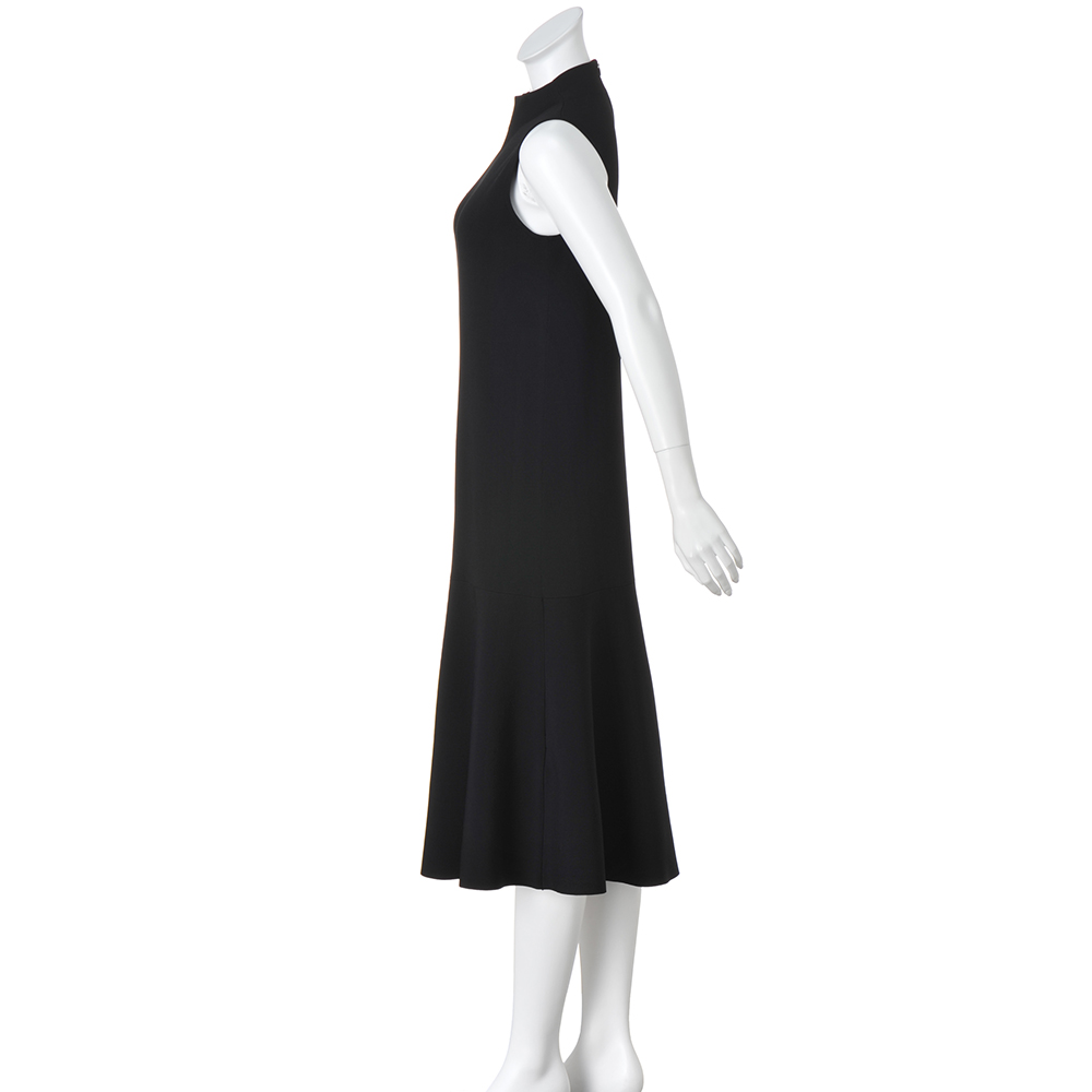 美しさを引き出してくれる拘りのフォルム。美人ワンピース。クリアで洗練された表情は、ビスコース・レーヨン糸をハイゲージの総針で編み上げているから。しっかりとした編み地でボディラインを拾いにくいのも、魅力です。ストンと落ちるシャープなシルエットに、膝上で編み地を横地に変えてフレアー感を演出したソフトマーメイド調。高すぎないハイネック、肩先を覆うノースリーブもすっきりとした印象です。