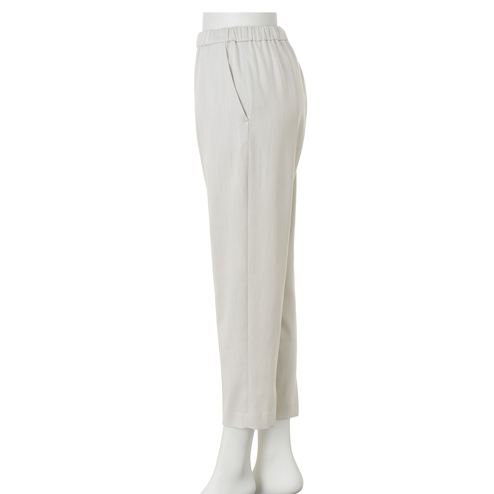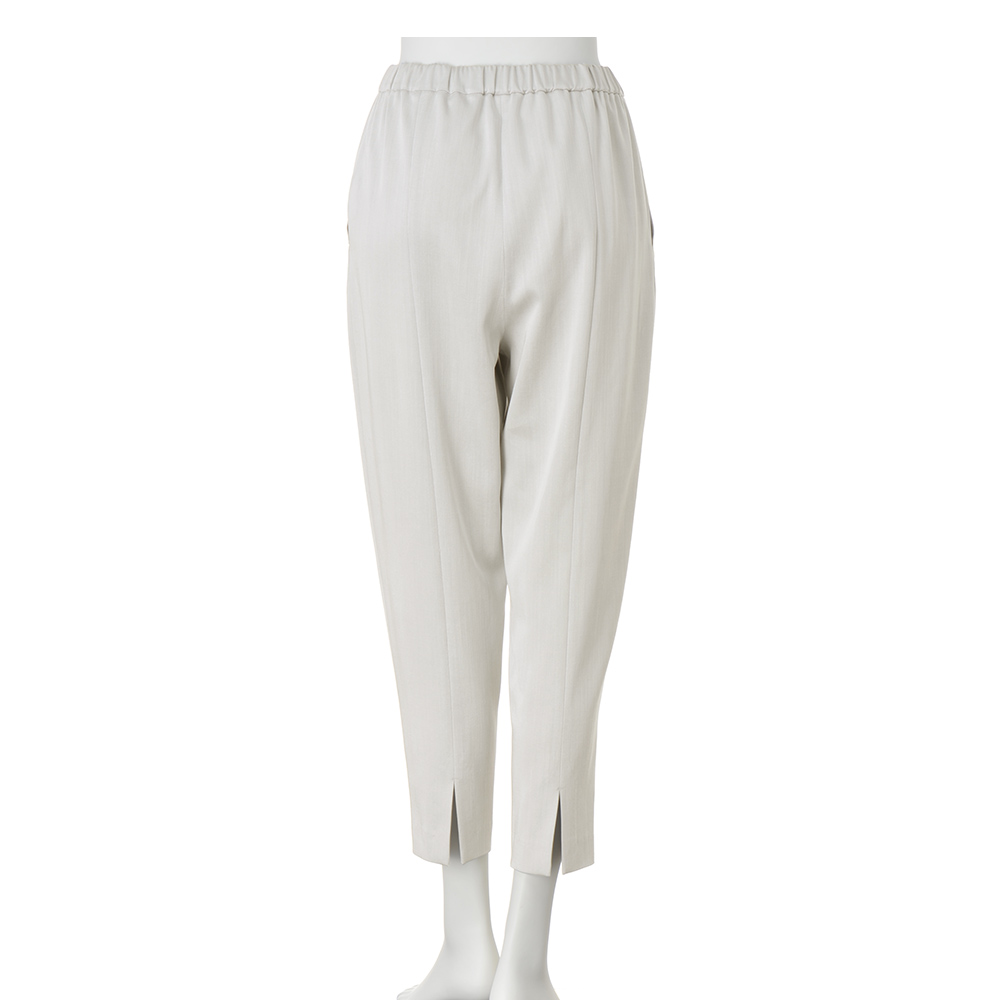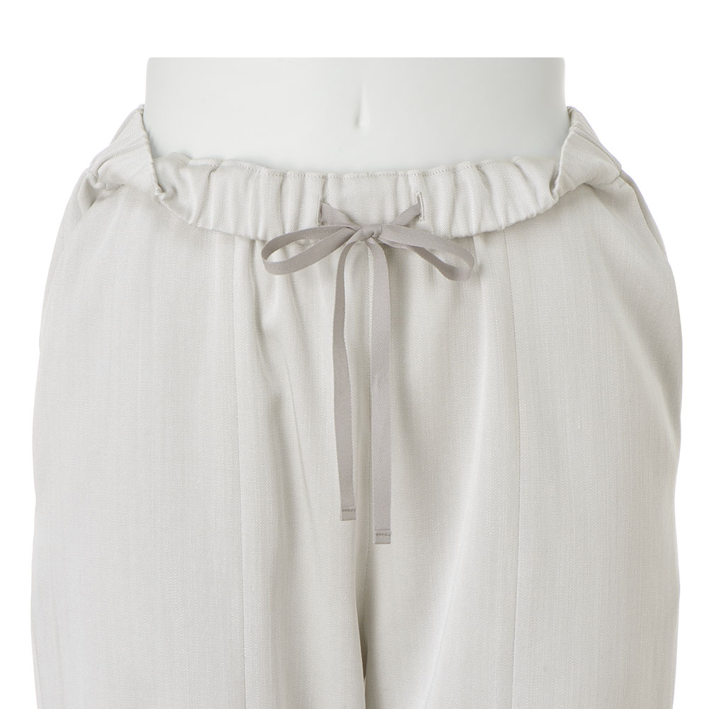 マテリアルの麗しさを心地よく纏う上品なスラブ感のあるとろみ素材。程良いゆとりを持たせつつすっと下に流れるシルエットがこなれたかっこ良さを演出。オンからオフまで活躍します。≫ POINT素材のとろみと前後中心の切り替えで縦ラインを強調しつつ、後ろ中央のスリットで小粋な抜け感をプラス。ウエストゴム+内側ドローストリング仕様のリラシーなデザインも、ぐっとお洒落な印象です。