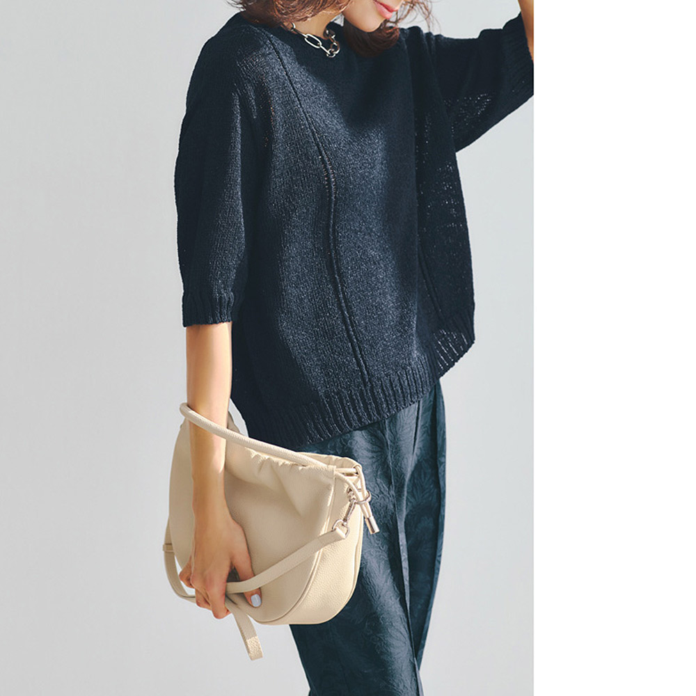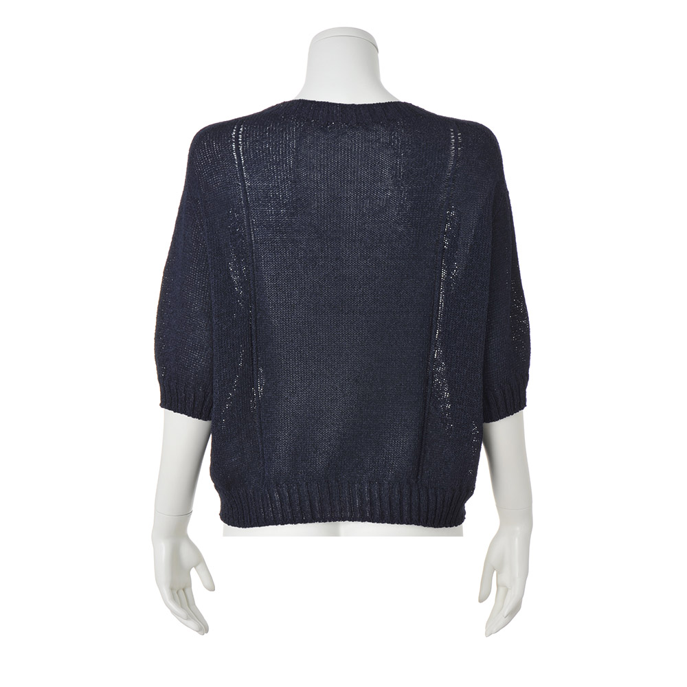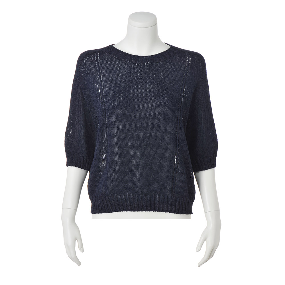 女性らしさが香るマリンスタイル爽やかなシャリ感のある和紙混の糸を使用し、接ぎがなく肌あたりのいい「ホールガーメント(R)」で仕立てたニットプルオーバー。ゆとりあるシルエットに、ボートネックや縦のラインを強調するように入れた透かし柄がアクセント。≫ POINT和紙とポリエステル糸を撚ることで、独特のシャリ感や通気性、軽やかさを実現。
