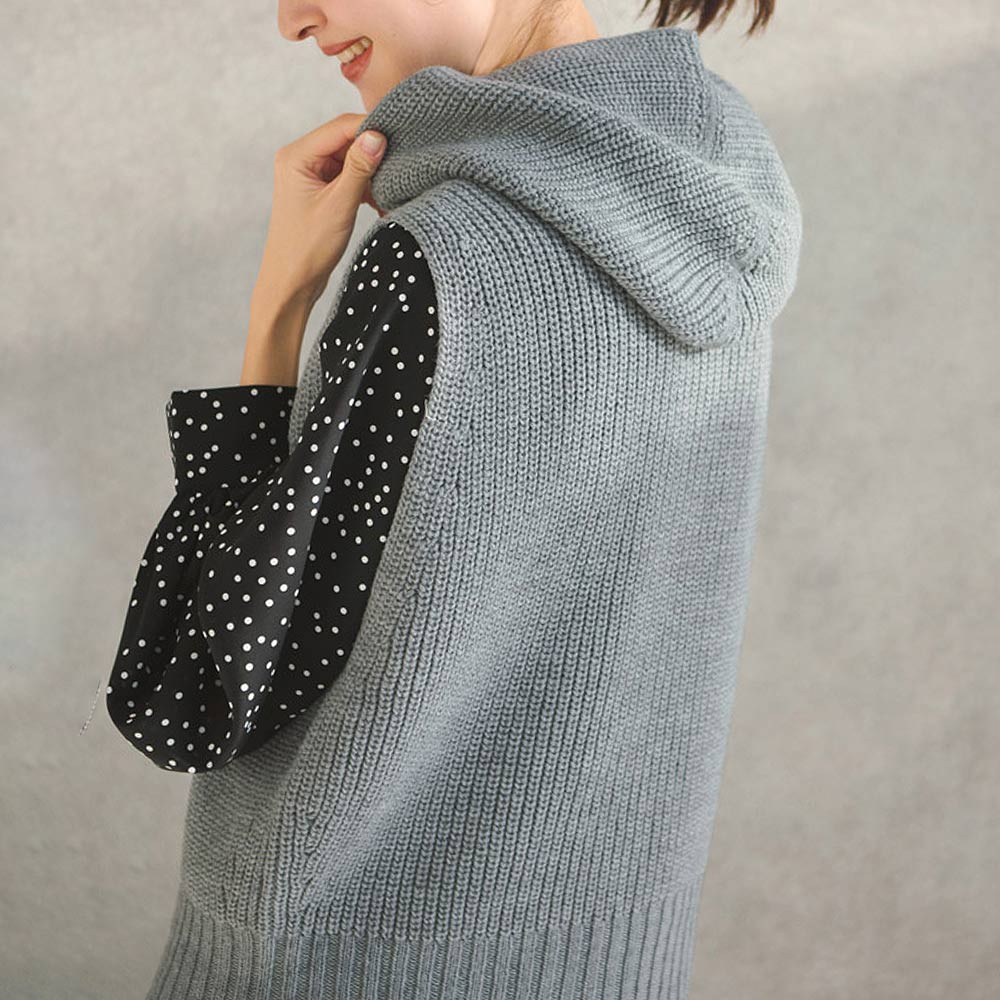 デイリーに使えるカジュアルなアイテムに、リュクスなエッセンスをプラス日本製の、接ぎのないホールガーメント(R)ニット。オフタートルのように見えるフードのデザインが新鮮です。ボクシーなシルエットはシャツやカットソーなどと重ね着がしやすく、着こなしの幅を広げてくれます。胸元のセンターに向かってV字型になった編み地がアクセントに。≫ POINTふくらみ感のある片畦編み。柔らかく心地いい肌ざわりです。