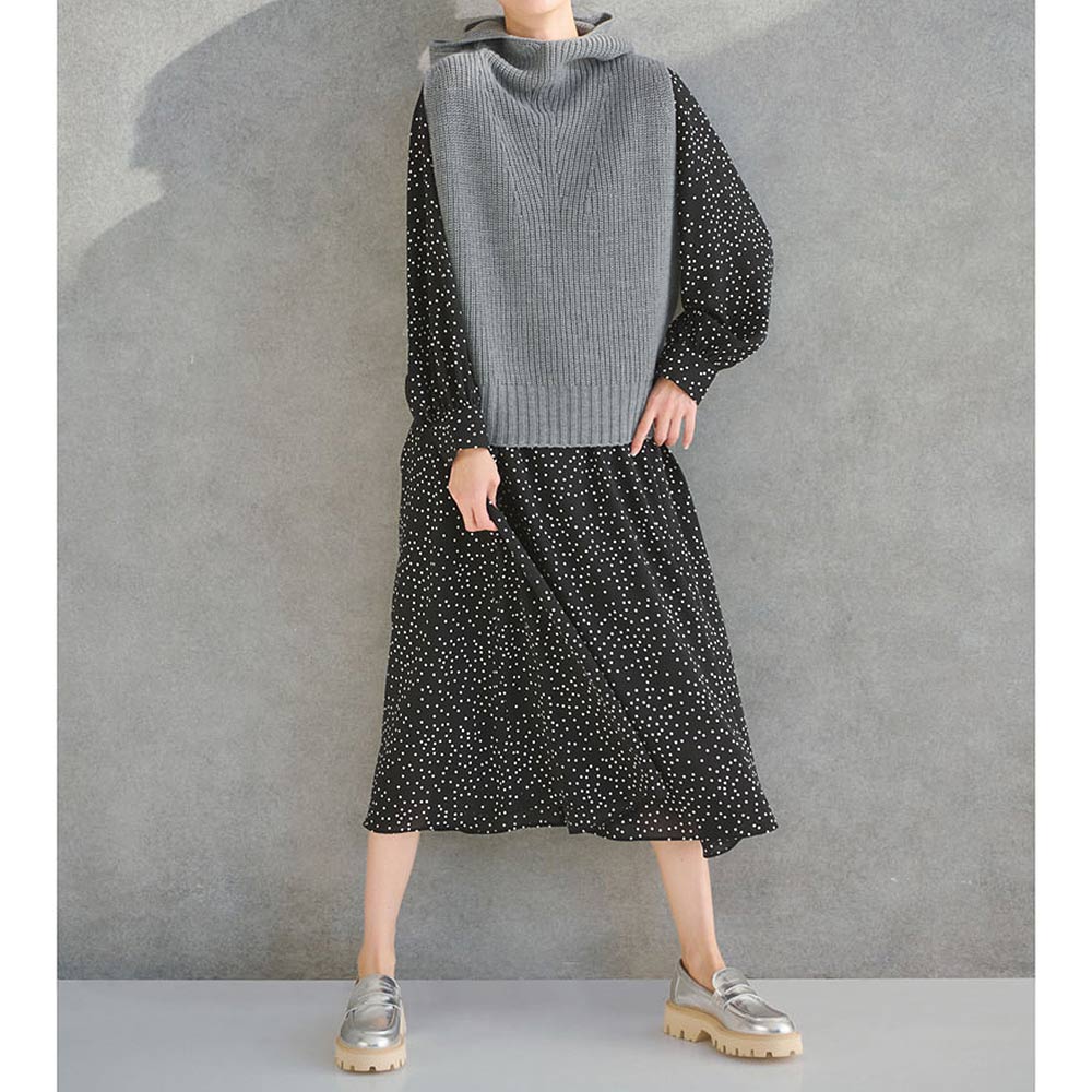 • コーディネート例 /ワンピースにべストを重ねてアクティブな印象に