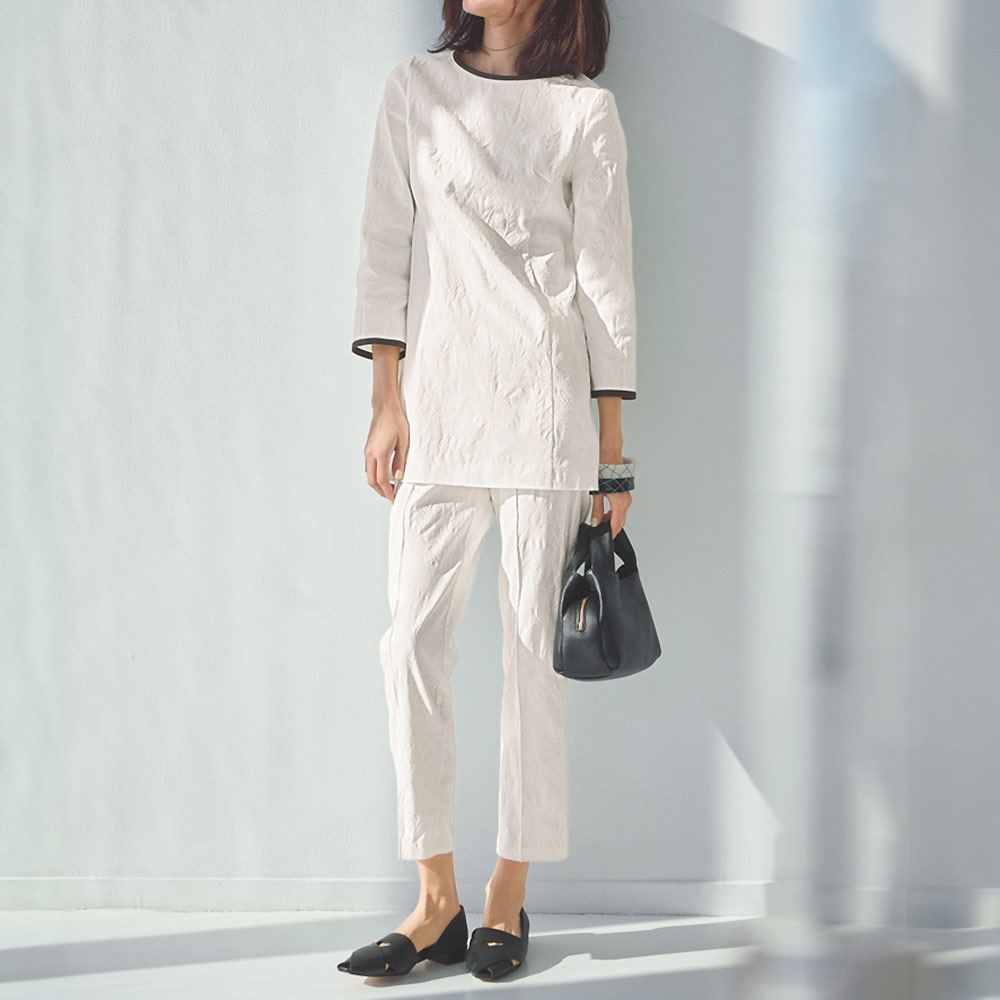 コーディネート例 /ジャカードの陰影が生み出すエレガントな表情でクリーンな白をドラマティックに