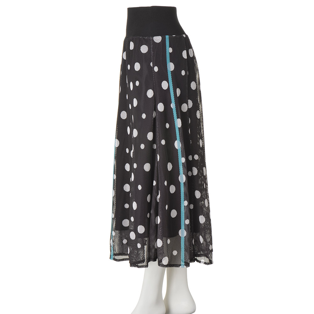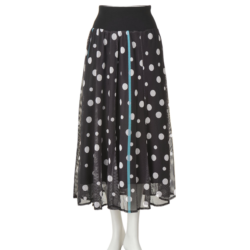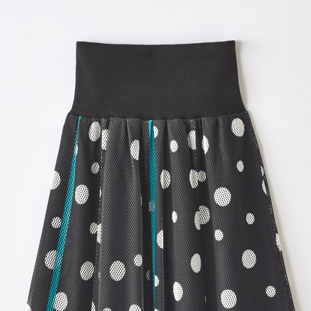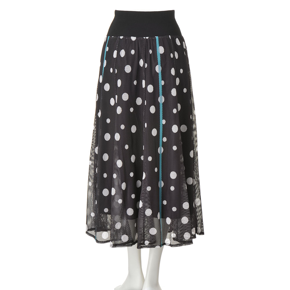 ディテールが映える Fit&Flareフィット&フレア 大小のドットに、爽やかなブルーのラインを配したオリジナルプリントが新鮮。メッシュ生地なので柄が主張しすぎず、軽やかに着こなせます。たっぷりの8枚接ぎのボリュームと、ランダムなプリントの動きを楽しめます。≫ POINT・ウエストは幅広のリブ使いで楽ちん。折り返せば丈感の調節も可能。・メッシュの裏は艶のある生地。シワになりにくいのもポイントです。