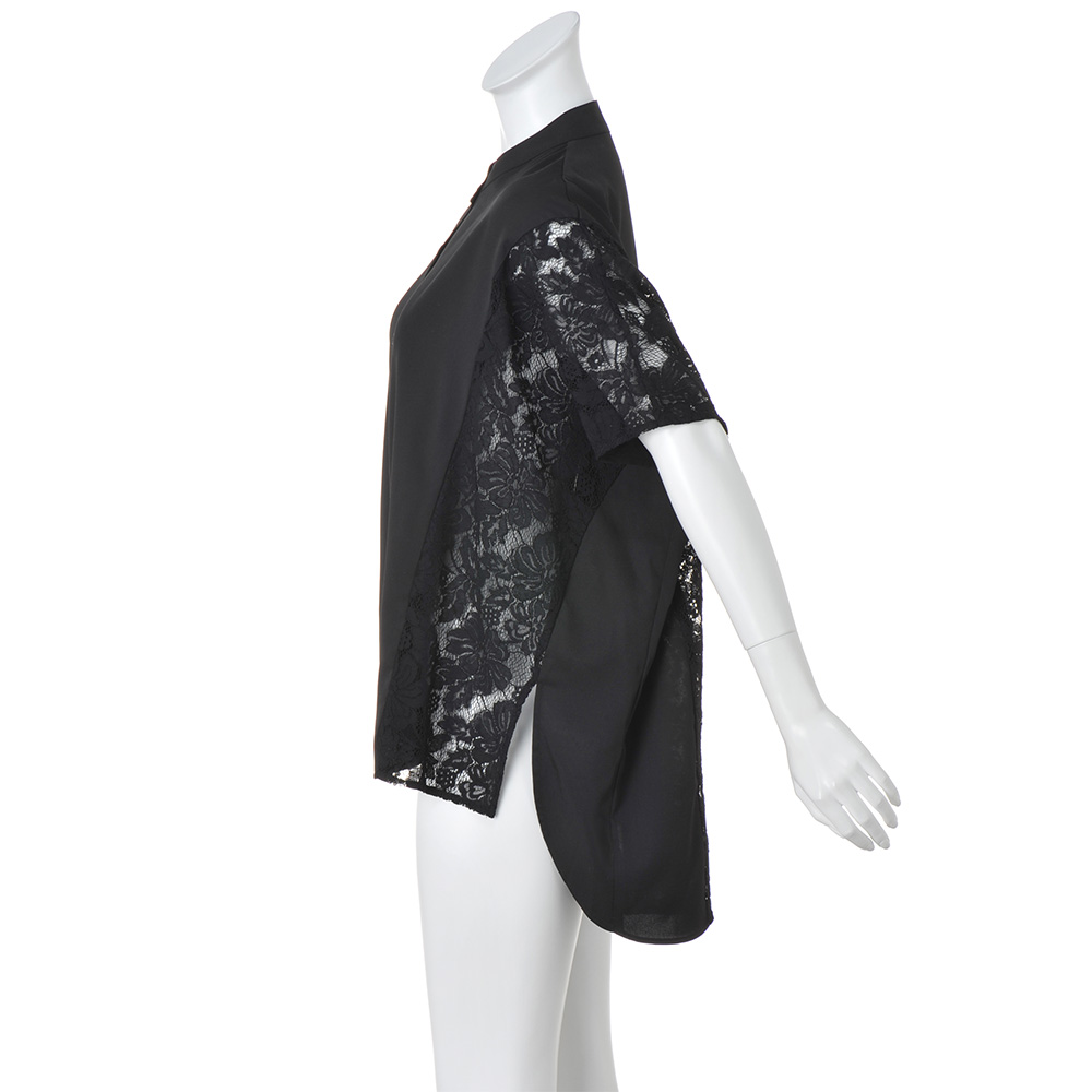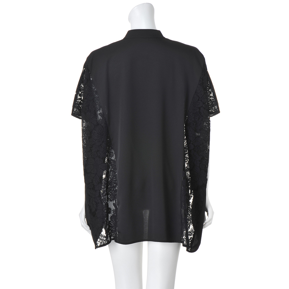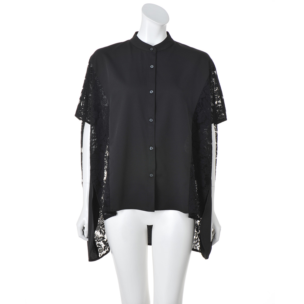 大人が素敵に輝く On styleふんわりと体型をカバーするオーバーシルエット。ベースは落ち感のよい生地を使用し、肩から身頃にかけては、前後ともに花柄のコードレースで切り替え、エレガントなブラウスに仕立てました。襟元はバンドカラーですっきりと、端正な印象に。POINT立体感のあるフラワー柄のコードレースが涼やかで、上品な透け感を演出。
