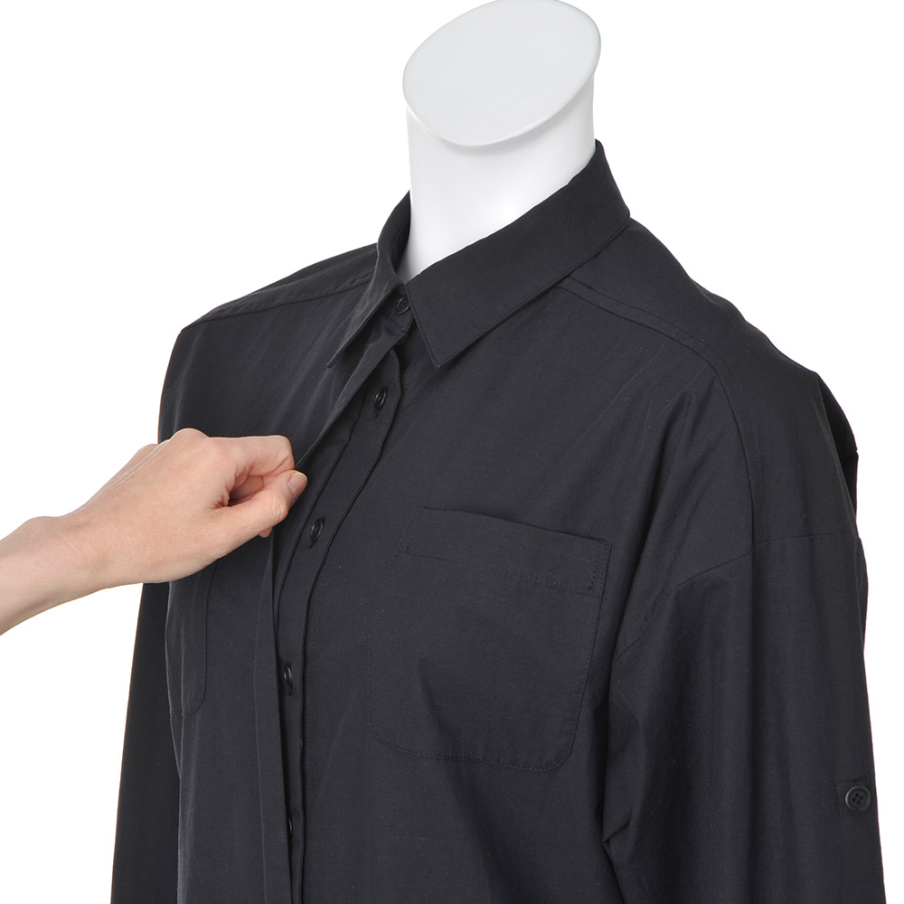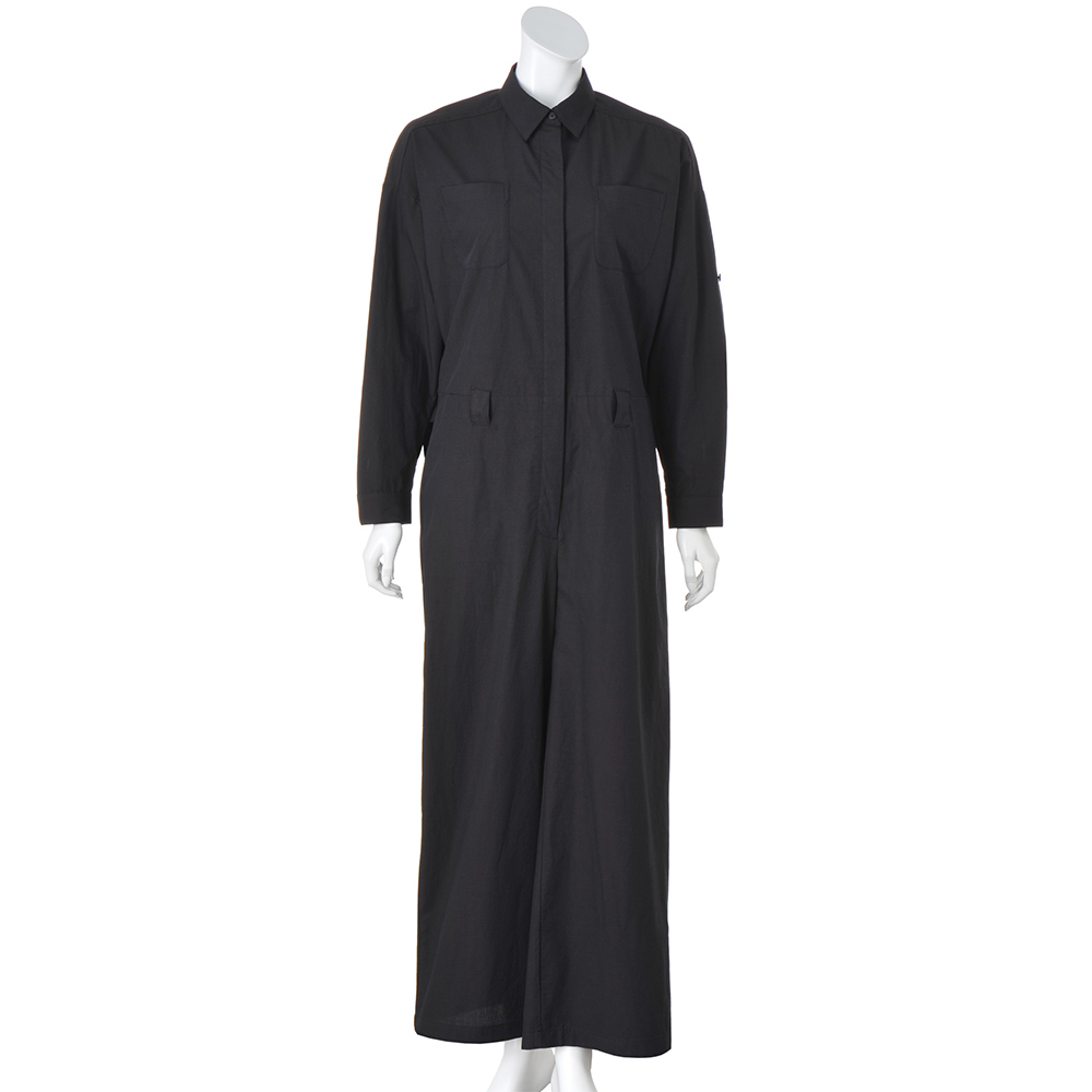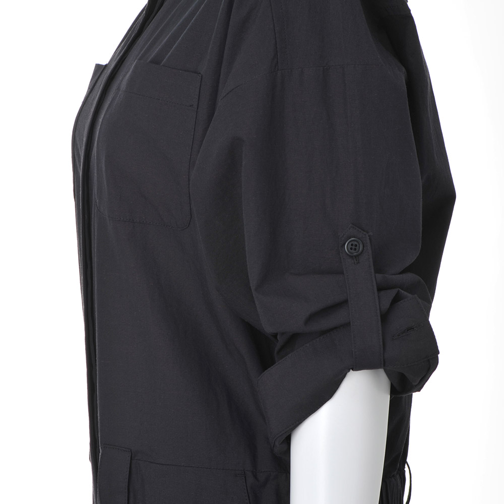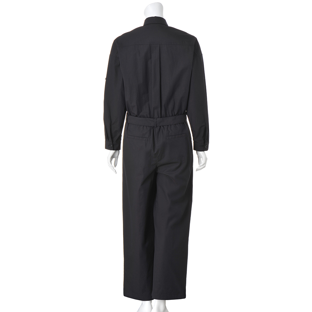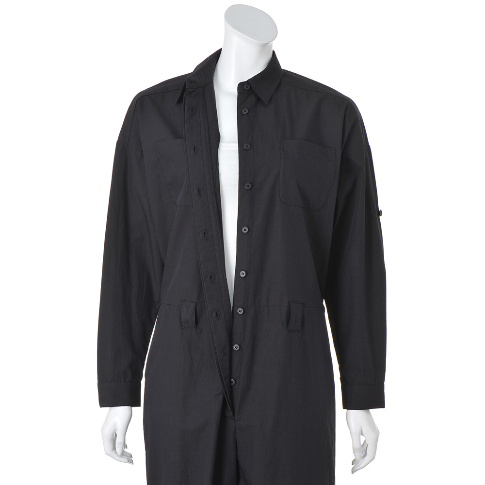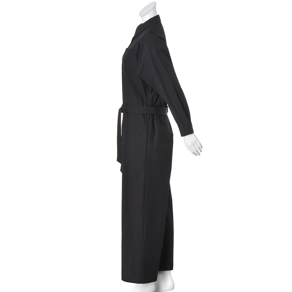 セットアップのような上品ジャンプスーツまるでシャツ+パンツのセットアップのような洗練ルックのジャンプスーツ。上身頃はきちんと感のある比翼前立てのシャツデザイン、ボトム部分はきれいめなセミワイド。上下つながったオールインワンだからこそ、メリハリを演出するウエストマークはマスト。付属の共生地ベルトや手持ちのベルトを巻きやすいよう太めのベルトループや、後ろウエストの平ゴムでブラウジングが叶います。脇下が深めのドルマンスリーブ、ロールアップした袖口を留めるタブ付きで、ジャンプスーツらしいこなれ感も添えて。生地は高密度に織られたコットンリネン。リネンならではのネップや節感のナチュラル感、柔らかな風合いを全身で楽しんで。≫ POINT胸ポケット、後ろヨークとタック、ヒップポケットがロングシルエットを間延びさせないアクセント。