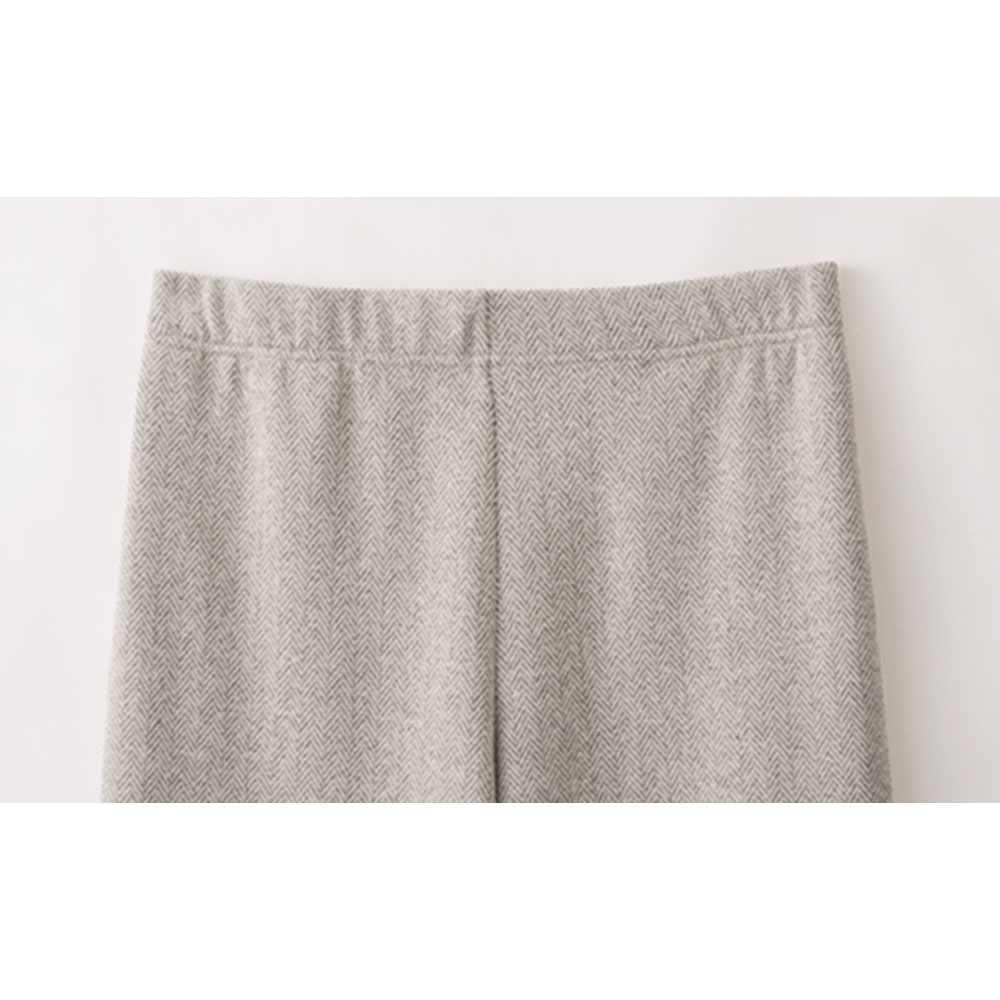 布帛のように見えるイタリア製ジャージー素材。きめ細かく編み込まれたヘリンボーン柄が、品良くシックな存在感を発揮します。レッグラインを拾いにくく美脚に導くセミワイド型は、ゴムベルト×内側ドローコードで安心のはき心地。