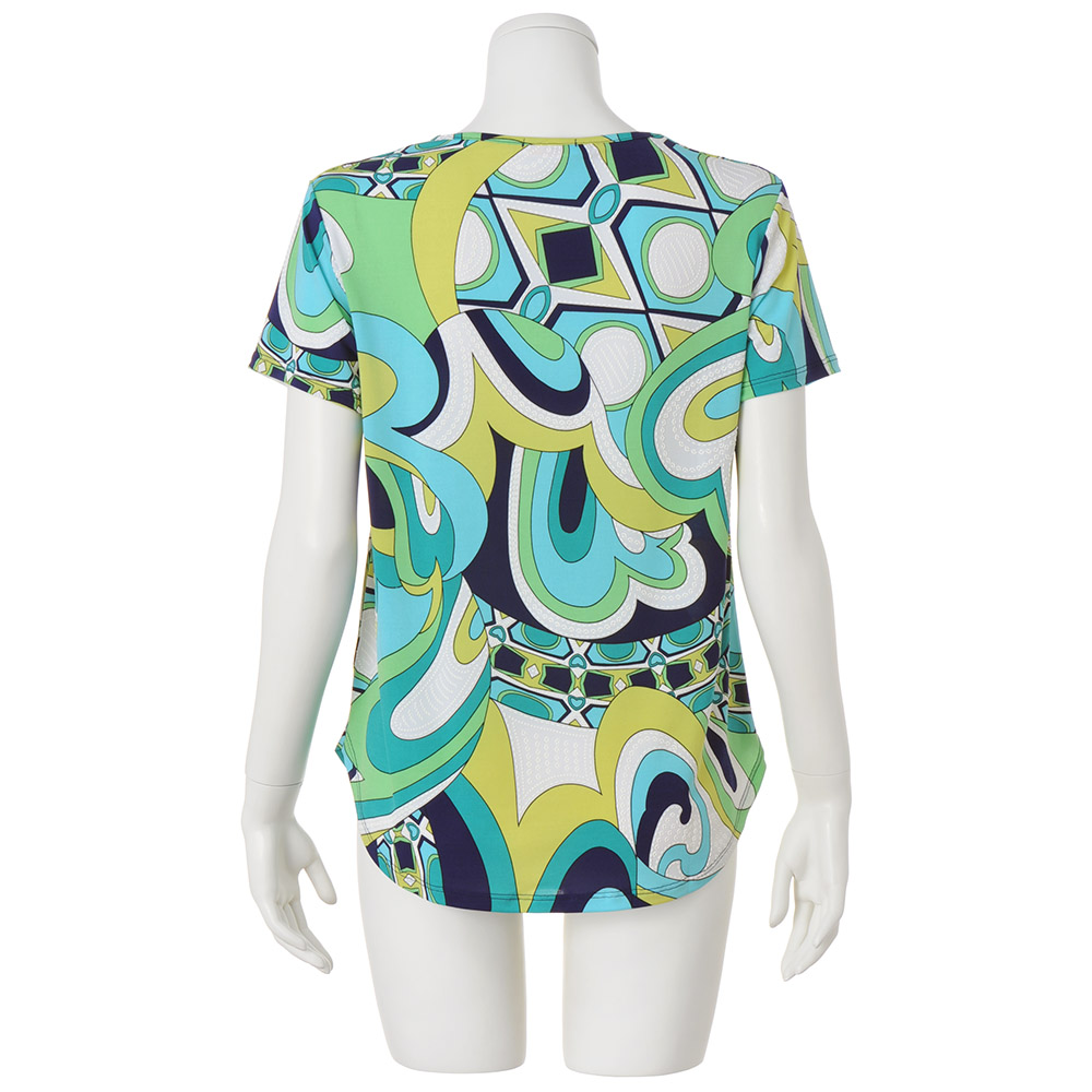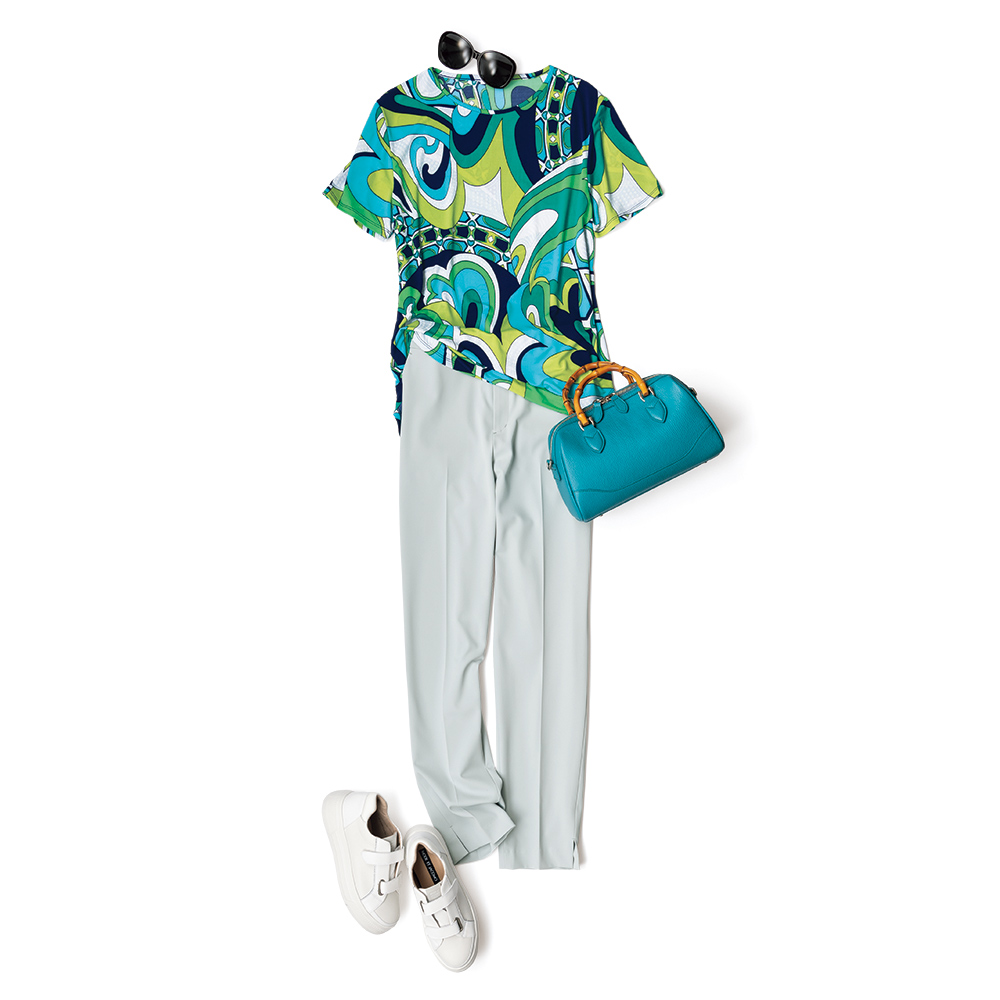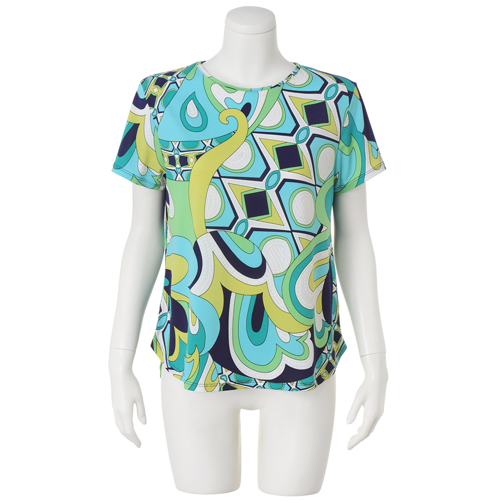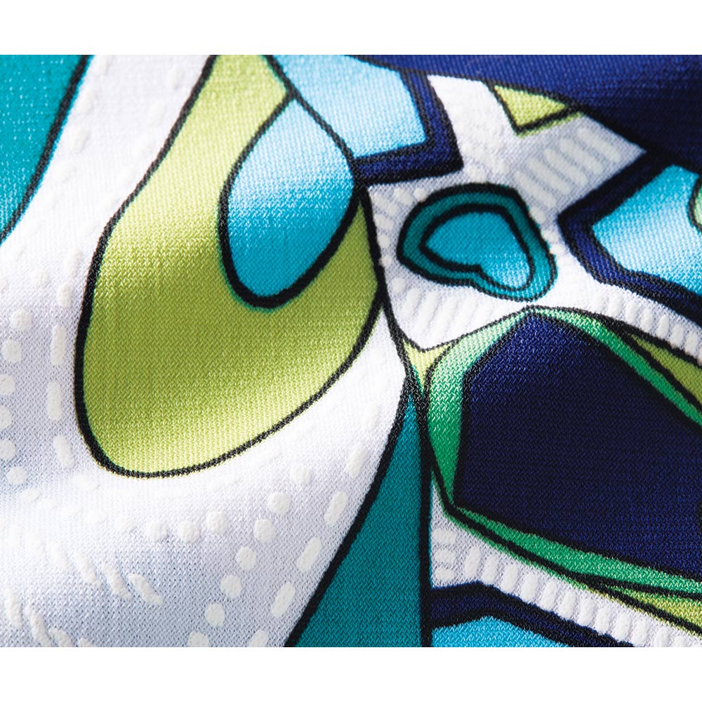 個性煌めく、出張スタイルビジネスにふさわしいシャープさと快適性をリンクさせて。印象を刻む、“ステートメント”な装いをご提案します。分刻みのアジェンダを笑顔で乗り切ってイタリア「Vezzo」のTシャツ。鮮やかな流線のモチーフは、よく見ると白の発泡プリントが施され、繊細さと大胆さを併せもつ柄行きです。とろんと滑らかなジャージー素材を、すっきりとしたTシャツフォルムに仕立てています。