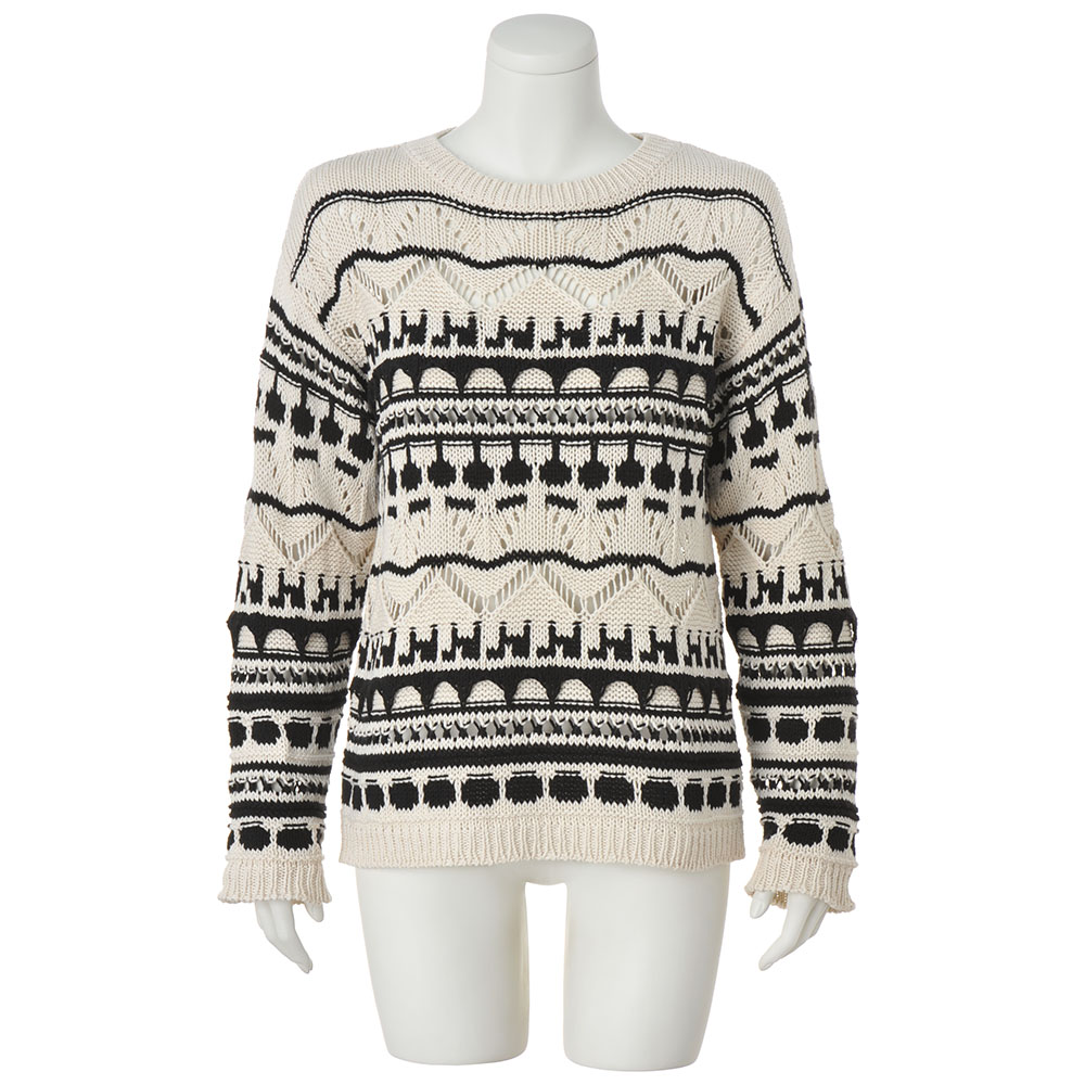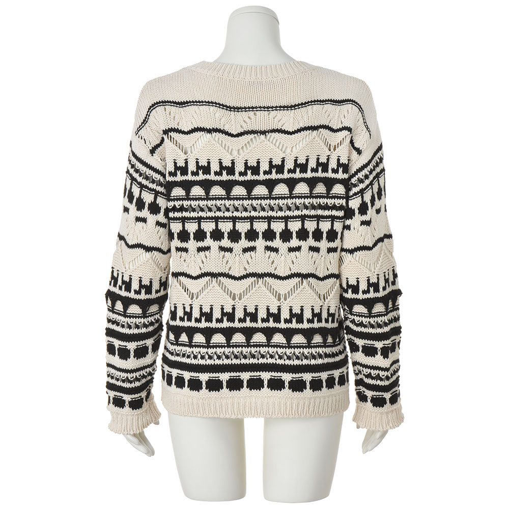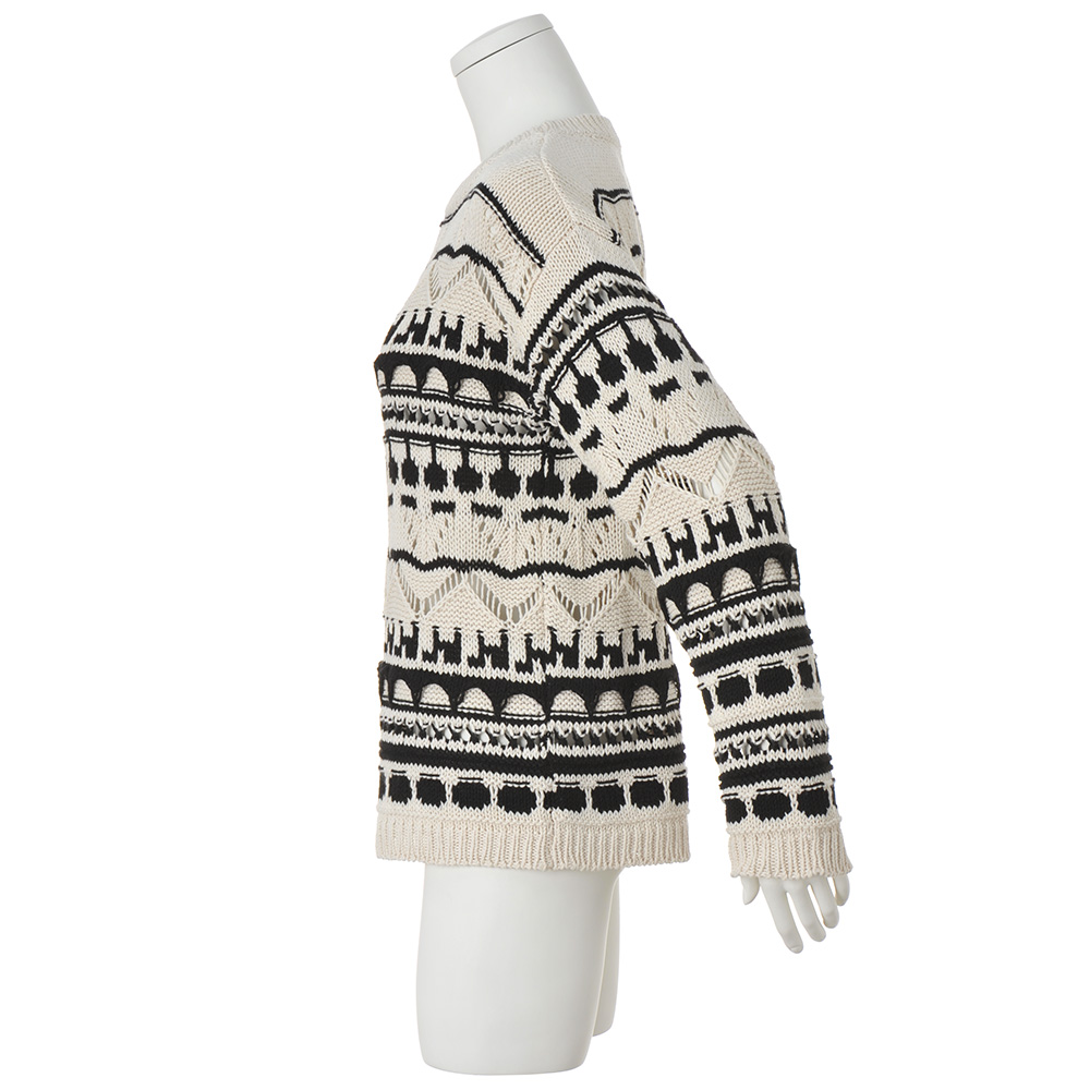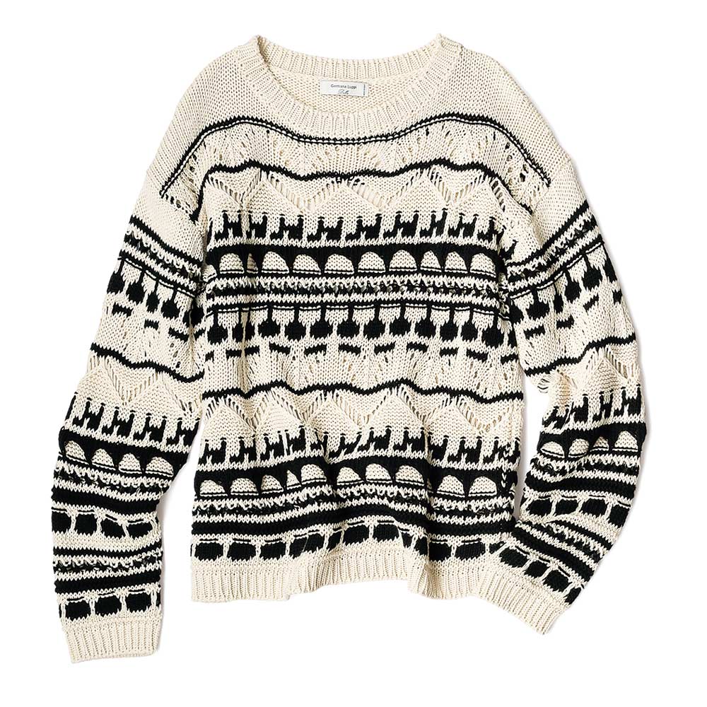 ニットだから叶うリラックス&モードさっと被るだけでハイセンスに決まるのは、ざっくりとした手編み風のクラフト感とモノトーンのモダンさがミックスされているから。イタリアのニット専業ブランド「GermanaLuppi」からのセレクトアイテムで、レーシーな透かし柄も3Dのような立体柄も高度な技術を駆使した機械編み。洗練された表情が、程良いモード感となって現れます。柄がデコラティブな分、形はオーソドックスで着こなしやすく。≫ POINT数種類の透かし編み、モチーフ柄、編み地を二枚重ねた立体柄…。複雑な編み地が主役級の存在感。