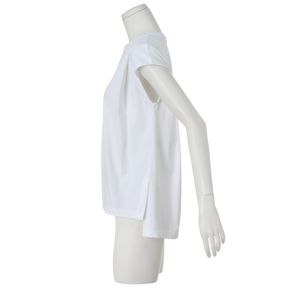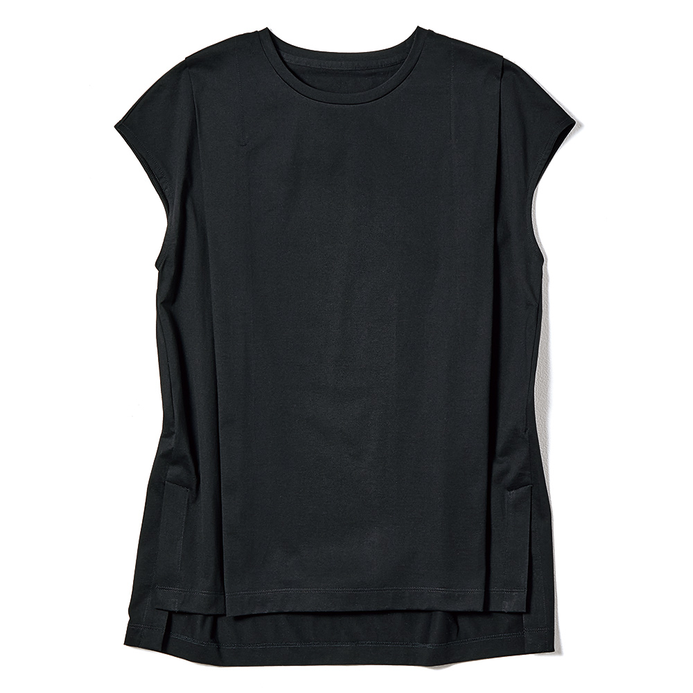 「これさえあれば!」なスタメンアイテム着回しやすくて、機能性も高くて、さりげなく体型カバーまでしてくれる――そんな望みを“全部盛り”した、優秀アイテムを作りました。これさえあれば、毎日のお洒落がもっと楽しく、快適に。「(株)エイガールズ」のスビン綿がもたらす“とろける肌触り”を纏うTシャツ“運命の一着”……そう呼びたくなるTシャツを作りたいというDAMAの想いを叶えてくれたのが、和歌山のテキスタイルメーカー「(株)エイガールズ」のとろけるような肌触りのスビン綿。85年以上続く老舗ファクトリーを背景に、世界の一流メゾンも信頼を寄せる上質なテキスタイルを創造する「(株)エイガールズ」。シグネチャーであるスビン綿を使ったTシャツは、しなやかな風合いと上品な光沢で、纏ったときに別格の美しさを放ちます。ハイゲージ天竺で仕上げ、肩から前後両側に入れたタックが流れ落ちる、細見え効果の高いTシャツ。両脇裾にベントを入れた前後差のある丈で、前だけインしても素敵。肩先を覆うフレンチスリーブがフェミニンです。≫ POINT適正ゲージより、一角上のゲージの編み機を使い、目が詰まったしっとり滑らかな肌触りと光沢を実現しました。
