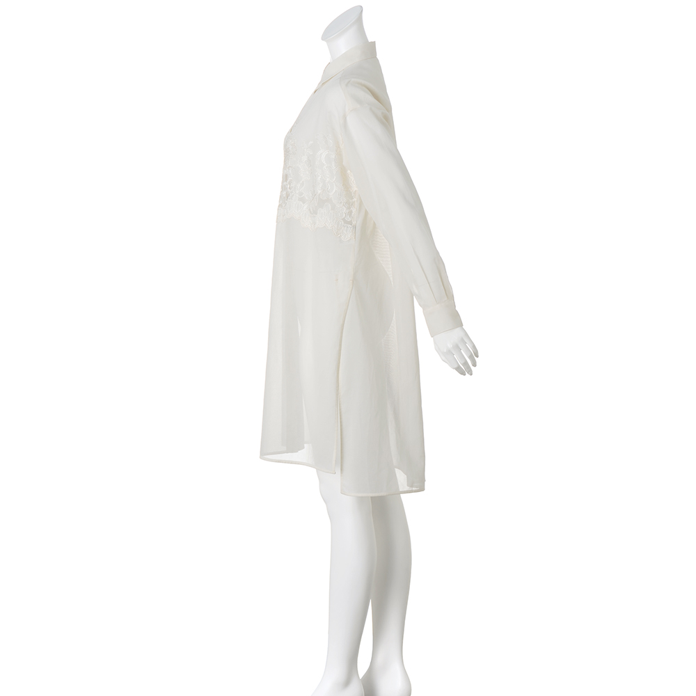 レース切り替え コットンボイル オーガンジー ロングブラウス ブラウス シャツ PC7099