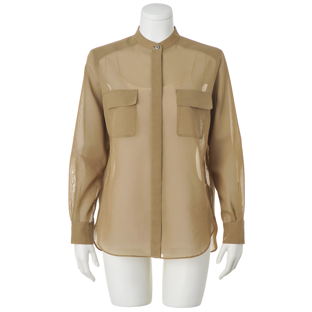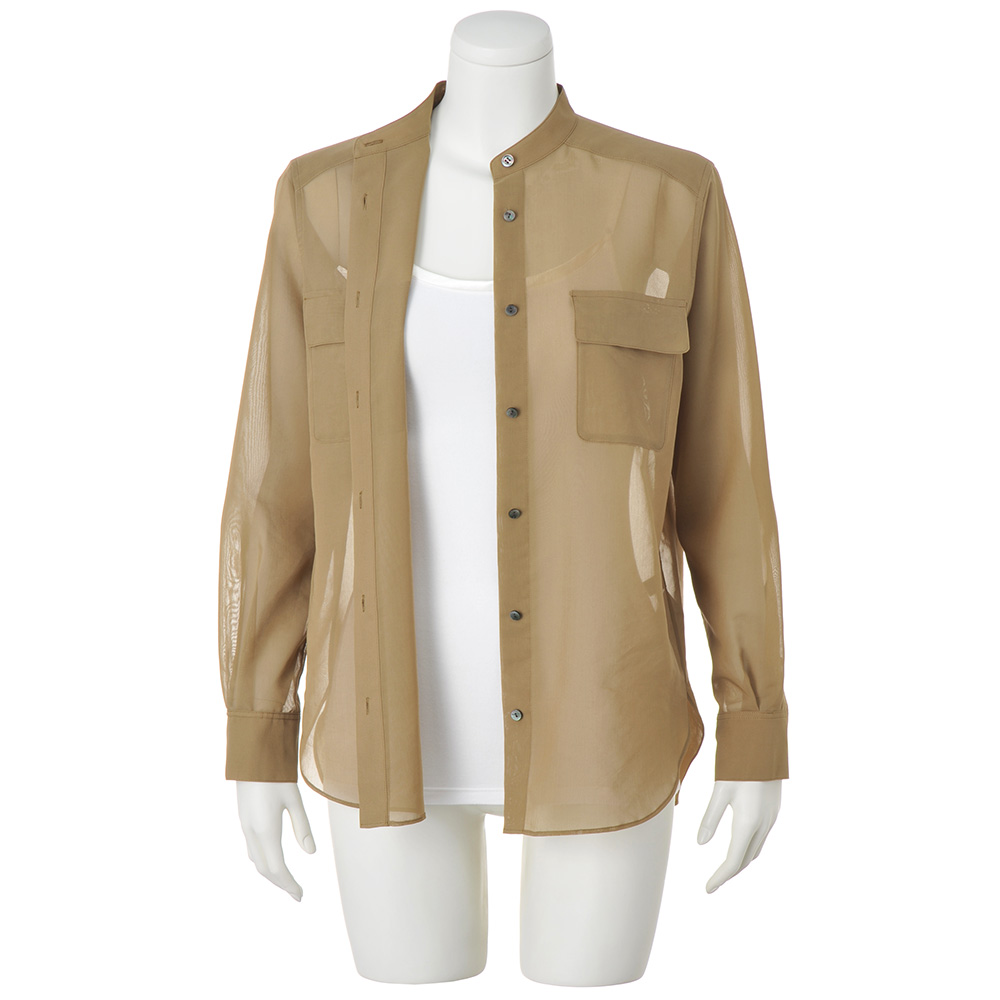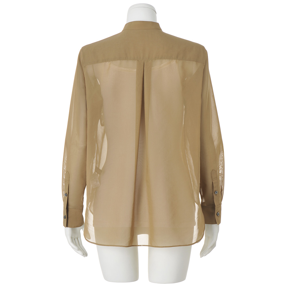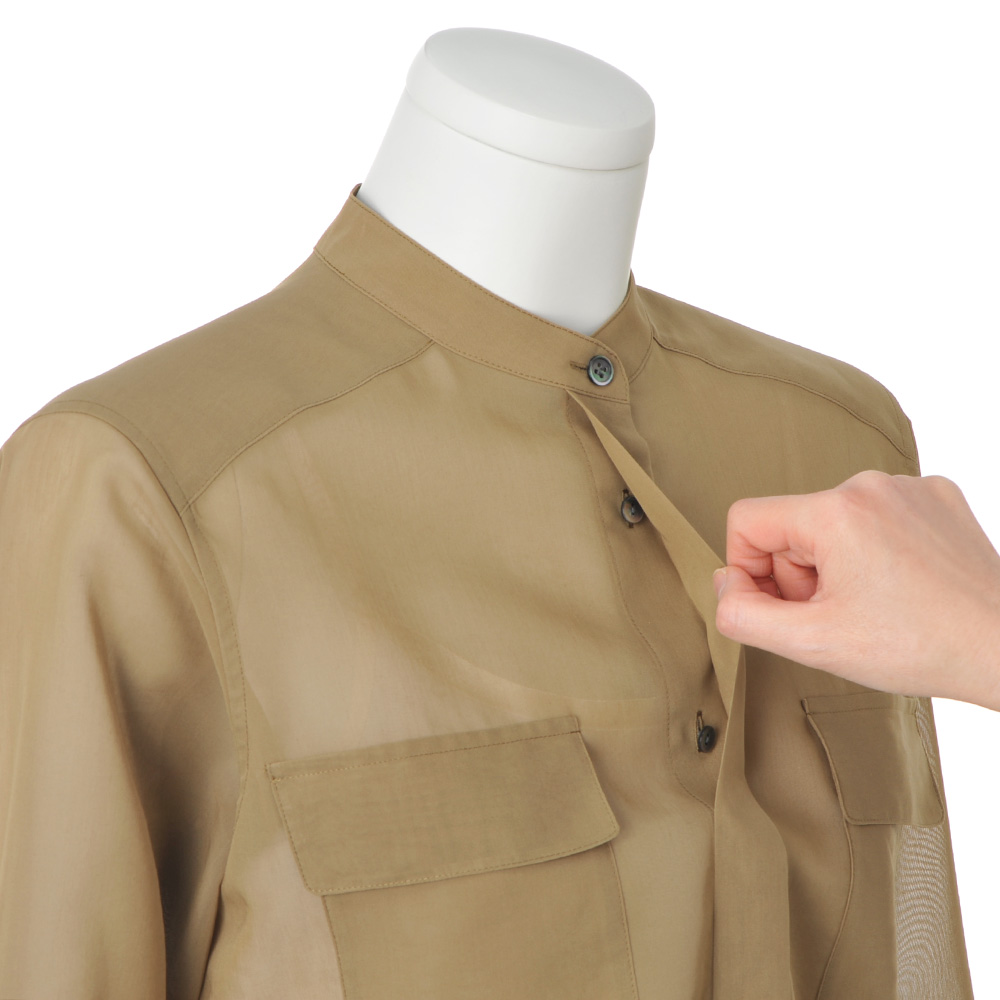 コットン混ボイル オーガンジー バンドカラー シャツ シャツ ブラウス PC7105
