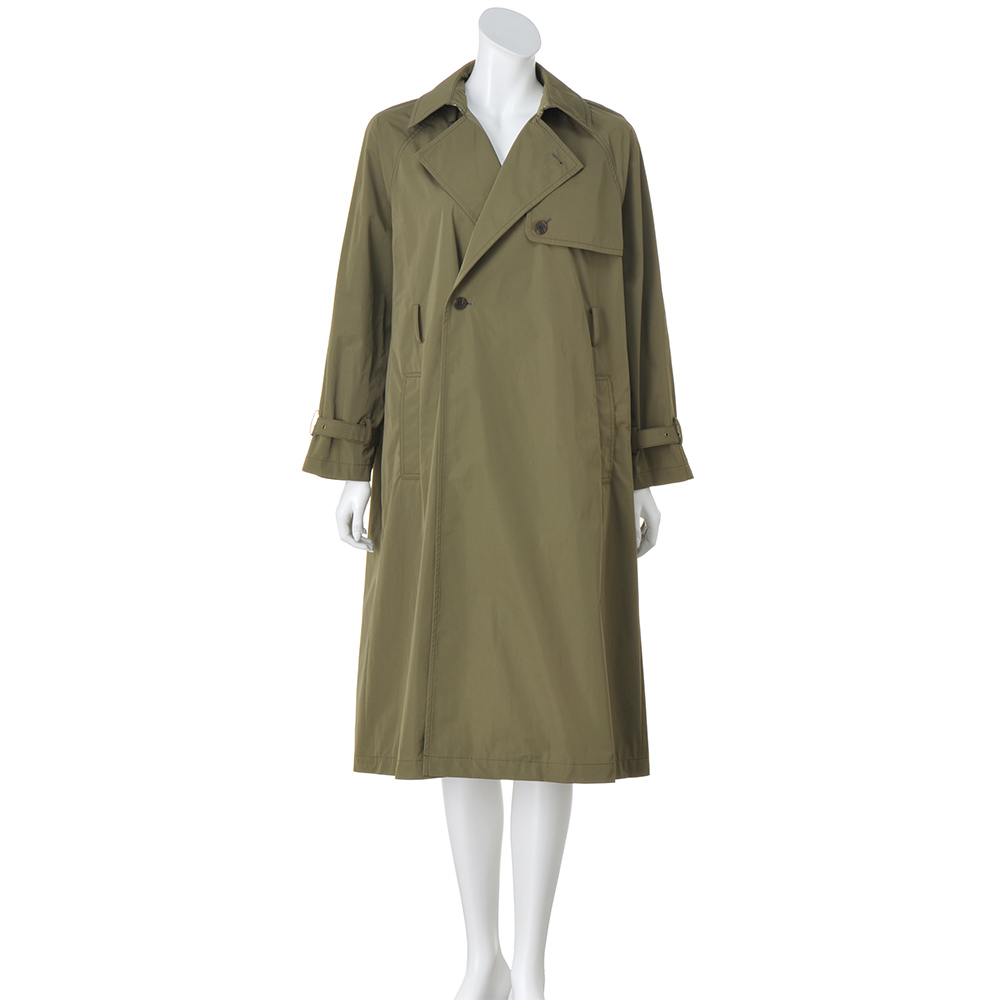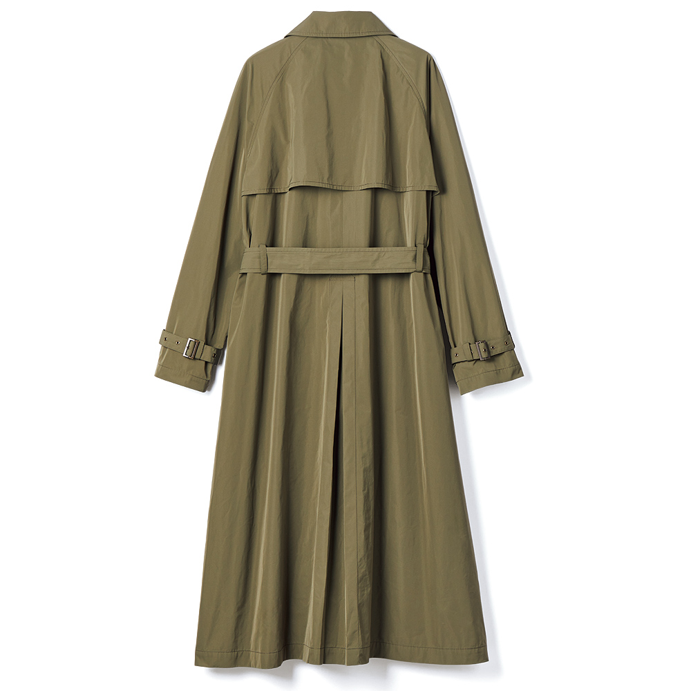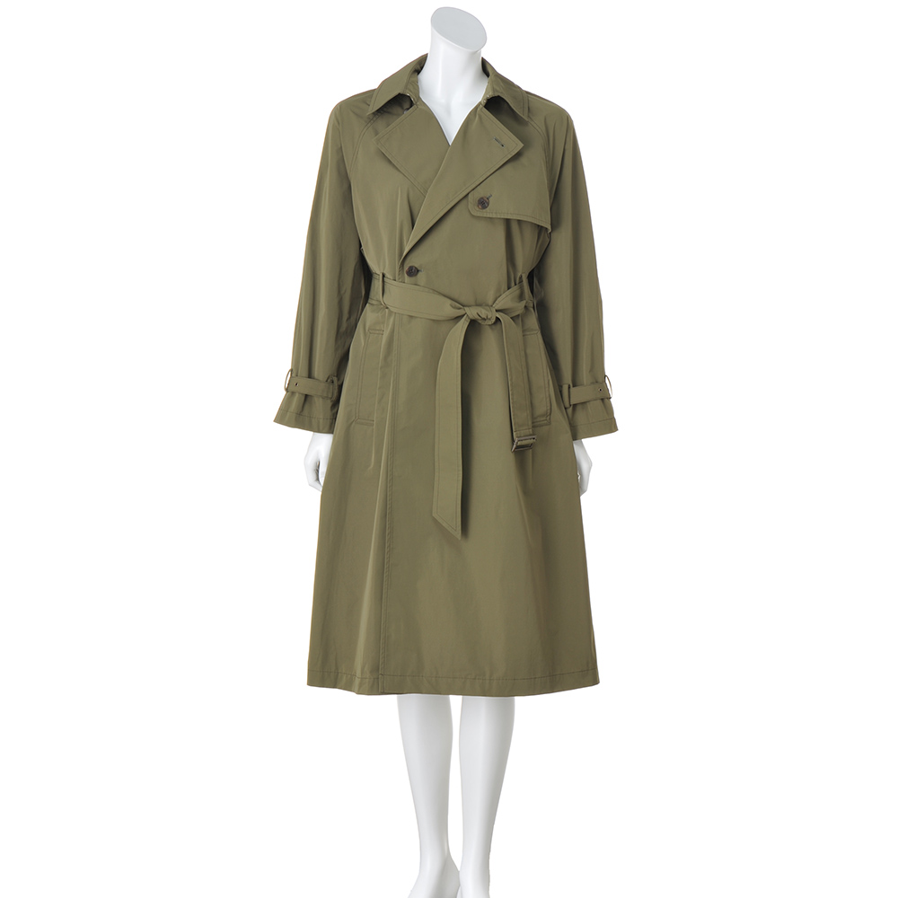 こなれ感トレンチで颯爽と旅立って旅のアウターは快適さと機能性が前提。さらに着回しやすく知的なムードを加味したライトコートを誂えました。デザインは、羽織れば装いが決まる“正統派”トレンチ。「帝人フロンティア(株)」の開発素材SYNEX(R)を使用したタフタ地がしなやかな着心地で、ニュアンスのある表情とスタイルが決まる張り感が魅力です。軽やかな一枚仕立ては、アクセントにステッチを走らせて丁寧な仕立てをアピール。胸元のガンパッチにラグランスリーブ、後ろのアンブレラヨークやインバーテッドプリーツを備え、どの角度からも端麗な印象です。≫ POINTはっ水素材と思えないほどしっとりとした表面で、優雅に見映えるSYNEX(R)のタフタ素材。