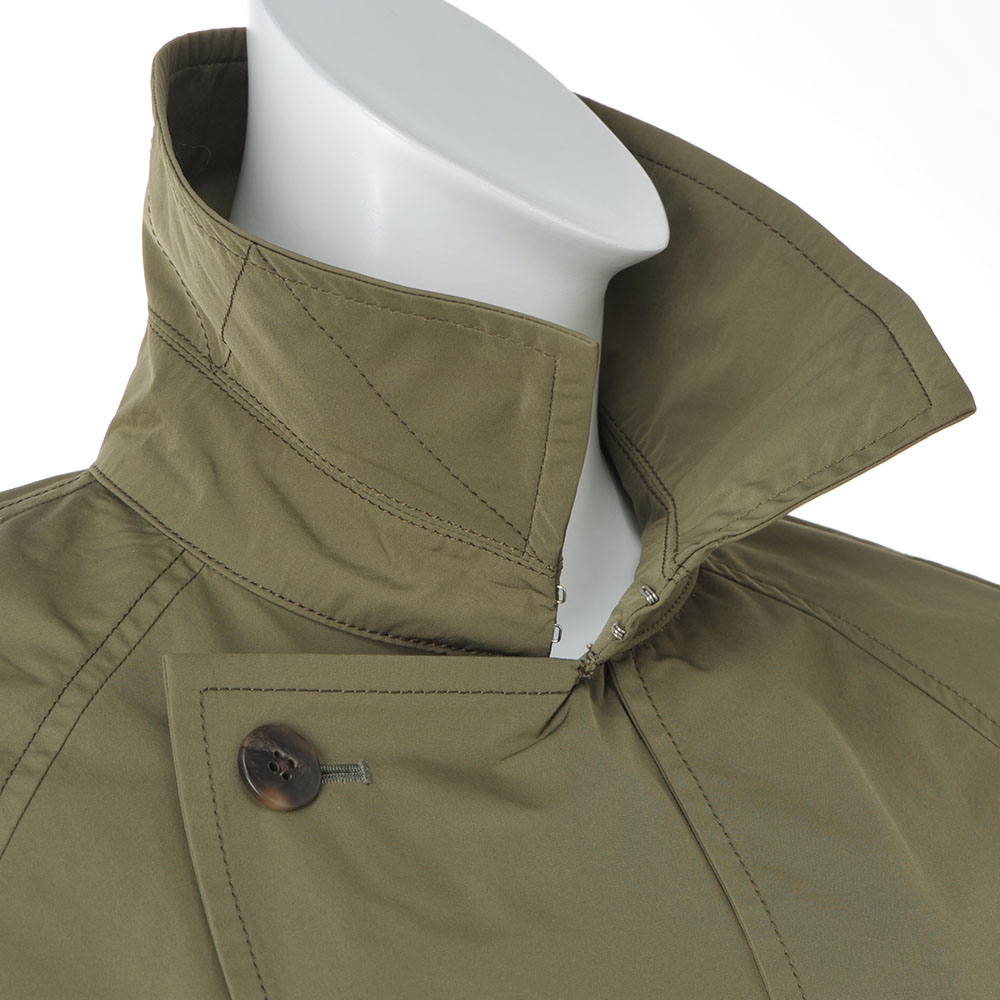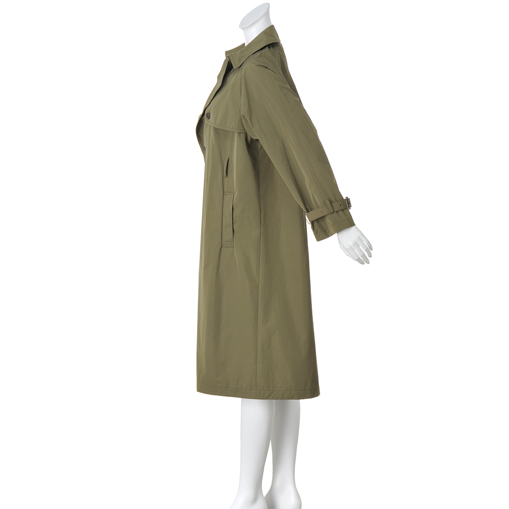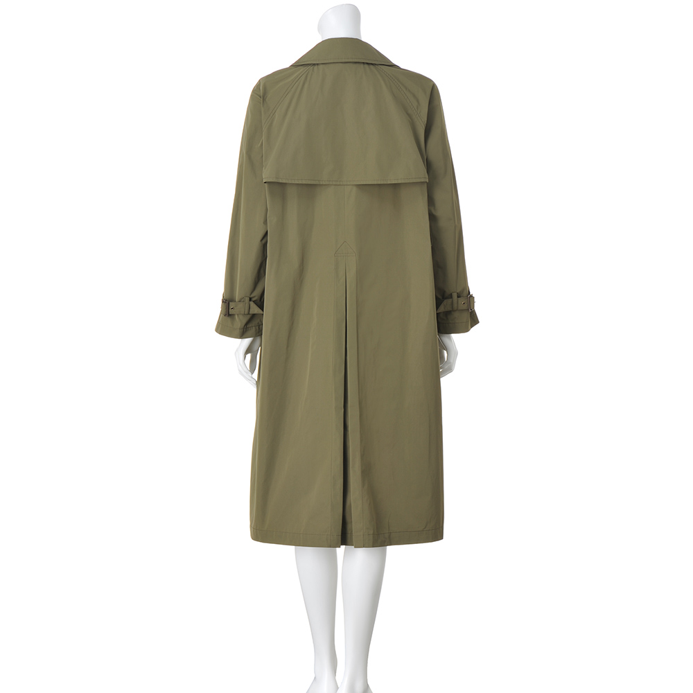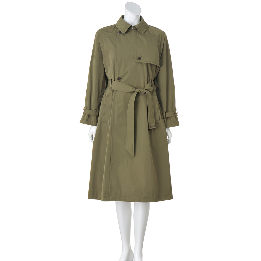 こなれ感トレンチで颯爽と旅立って旅のアウターは快適さと機能性が前提。さらに着回しやすく知的なムードを加味したライトコートを誂えました。デザインは、羽織れば装いが決まる“正統派”トレンチ。「帝人フロンティア(株)」の開発素材SYNEX(R)を使用したタフタ地がしなやかな着心地で、ニュアンスのある表情とスタイルが決まる張り感が魅力です。軽やかな一枚仕立ては、アクセントにステッチを走らせて丁寧な仕立てをアピール。胸元のガンパッチにラグランスリーブ、後ろのアンブレラヨークやインバーテッドプリーツを備え、どの角度からも端麗な印象です。≫ POINTはっ水素材と思えないほどしっとりとした表面で、優雅に見映えるSYNEX(R)のタフタ素材。