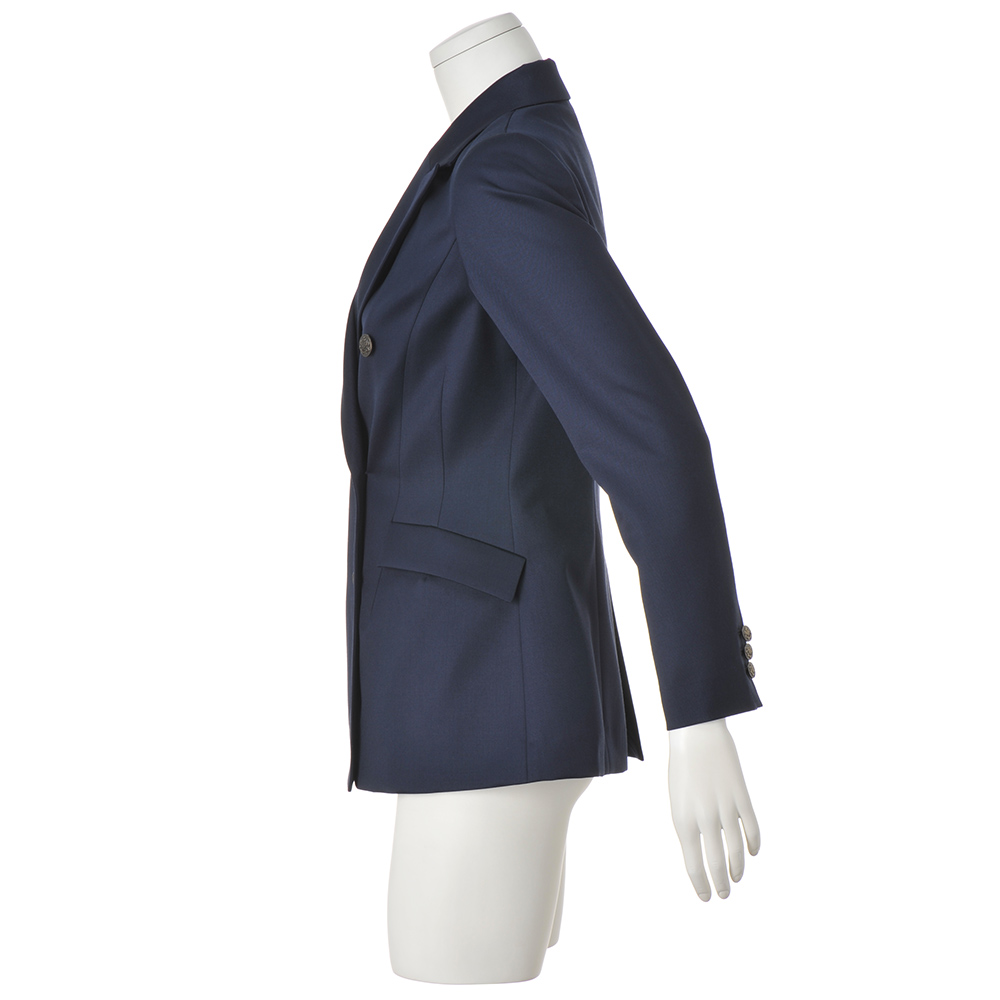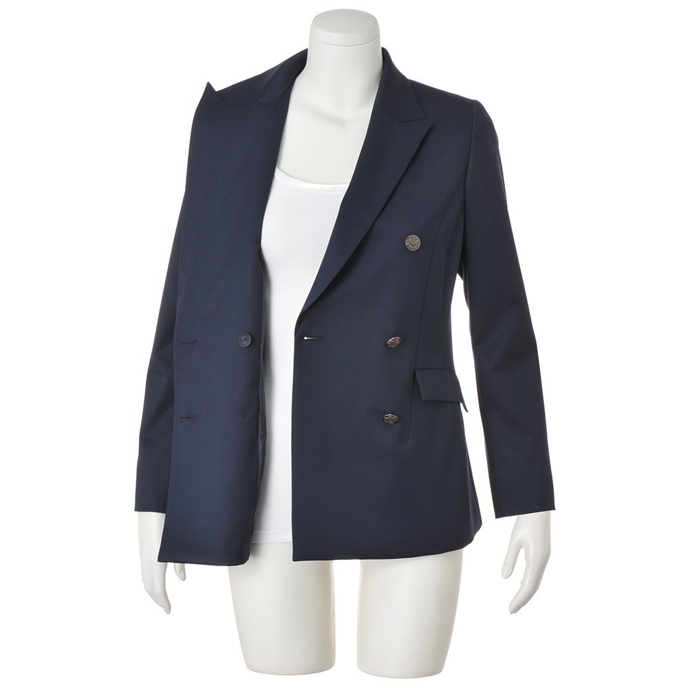 ピークドラペルとダブルブレストの構築的なシルエットで、「紺ブレ」の雰囲気をスタイリッシュに更新。エンブレム調のメタルボタンや斜めに配したフラップポケットが小粋な個性を醸します。同シリーズのスカート(商品番号:PC7151)とセットアップでしなやかに進化した正統派スタイルを演出したり、単品コーディネートでクラス感のあるカジュアルスタイルを完成したり…。現代女性の美意識を満たす着こなしを楽しめます。