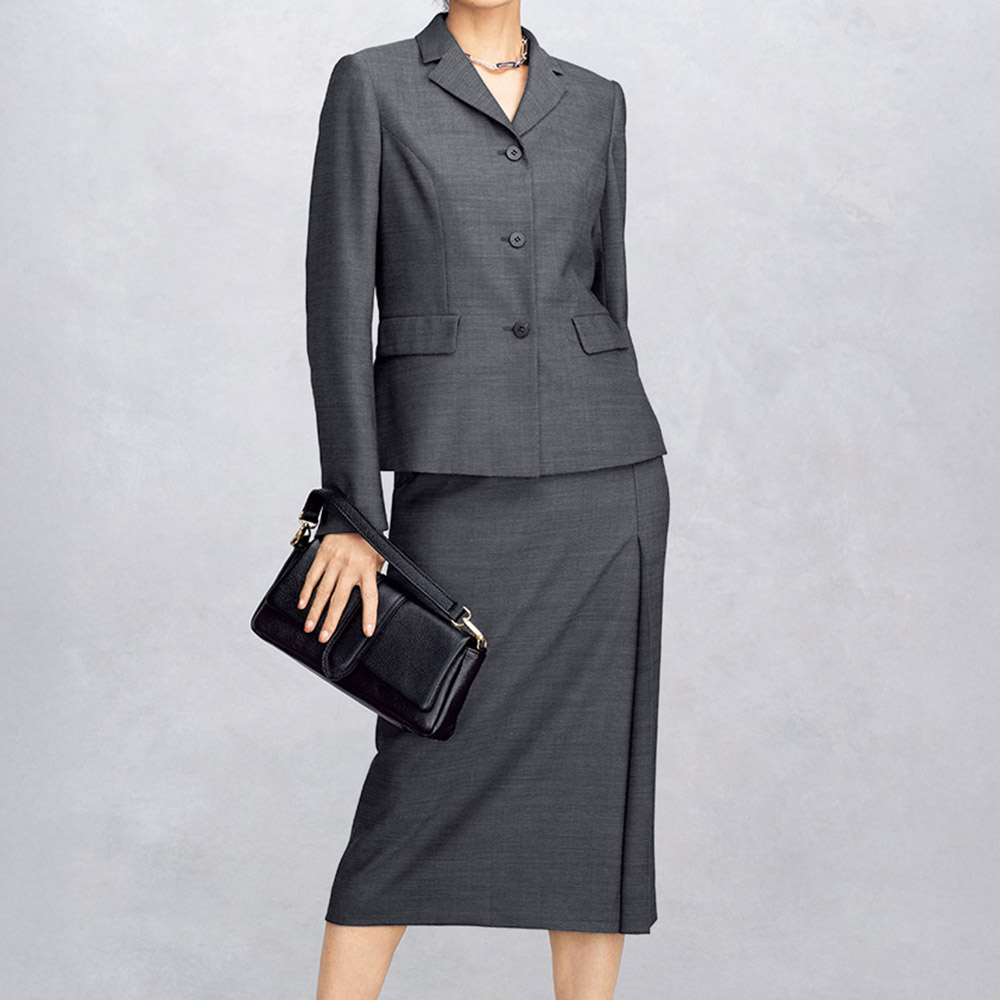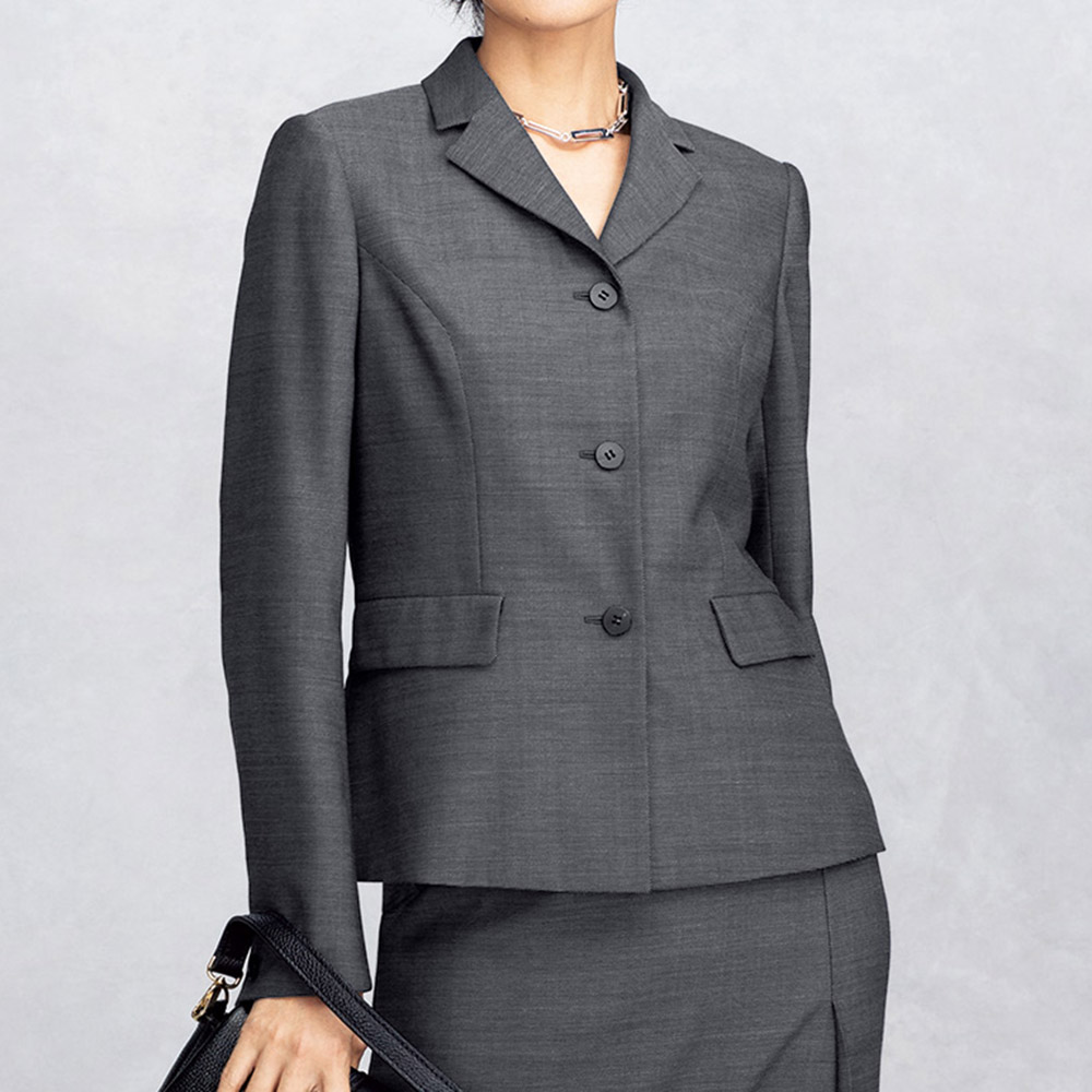 品格とエレガンスを涼やかに表現するジャケット涼やかな着心地と共に品格スタイルを叶えてくれる「NIKKE(日本毛織(株))」のMAFウールメッシュ素材のジャケット。スカート(商品番号PC7153)とセットアップでも単品でも活躍するデザインを意識しているのが拘りです。クラシカルなテーラードカラーで、肩パッドとパネル切り替えで構築した美シルエットを軽快な着丈に設定。水牛ボタンで本格志向を表現しつつ、折り返しても着られる本開き仕様の袖口でさりげないアレンジ力を授けています。正統美を支えるMAFウールメッシュ。MAFウールは、「NIKKE(日本毛織(株))」が誇るニュージーランドスーパーファインメリノウールの中でも細く長い繊維だけを選りすぐった原料を使用した名素材。撚糸や織り方を巧みに操った豊富なラインアップは、「本物を装う」企画はもちろん、DAMAコレクションに欠かせない存在です。その中から、Super120’s原料の超細番手糸を使って、経糸と緯糸の色を変えつつメッシュ状に織り上げたサマーウール。シャンブレー調の艶めきが涼やかな気品を醸し、軽くしなやかで、サラリとした風合いも特徴。まさに才色兼備なテキスタイルを堪能していただきたくて、単品でもセットアップでも長く愛用できるミニマルなジャケットをご用意しました。