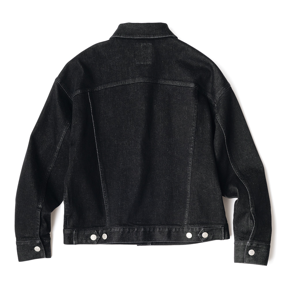 ヴィンテージブラックのクールなGジャン移りゆく季節に頼れるアイテム「Gジャン」をブラックデニムで。デニムなのにソフトな肌当たりと伸びやかな着心地、ヴィンテージライクなこなれ感。製品洗い加工でブラックデニムのハードさを抑えた色を表現しています。デザインはGジャンのタイムレスなディテールはそのままに、ドロップショルダーのワイドな身幅×ショートな丈感で、トレンドを押さえたバランスに。上半身をコンパクトに見せることでスタイルアップが叶い、合わせるボトムスも選びません。≫ POINT生地は1980年代後半のデニムの復刻版。適度なアタリ感と同色ステッチできれいめな仕上がりに。