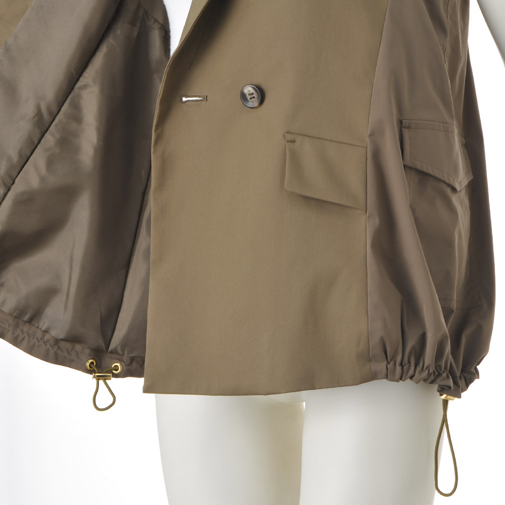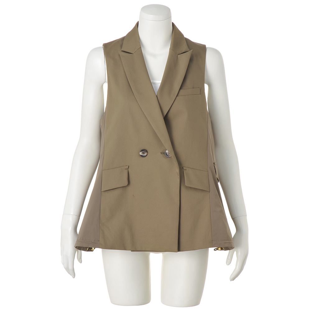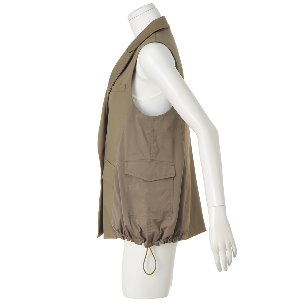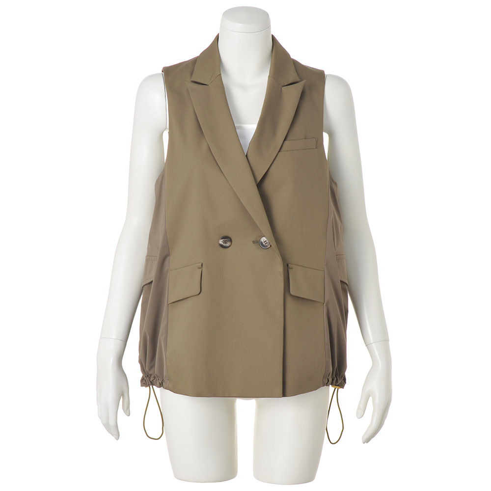 ひとクセありなジレでカジュアルをキレ味よく。休日にお洒落を楽しむためのジレなら、ちょっとモードな遊び心があっていい。正面はコットン混素材で仕立てた端正なテーラードカラー&ダブルフロント、両脇はカジュアルなタフタ素材で切り替えて大きなフラップポケットを利かせたミリタリー風。裾のサイドに入れたゴムヒモを絞ったふんわりまろやかなシルエットで、女性らしさも忘れずに。ヒップが隠れる丈感で、パンツやスカート、ワンピースとも好相性。≫ POINT異素材使い、トラッド×ミリタリーのテイストミックス、ゴムヒモによる脇のシルエットのアレンジで着映え度満点!