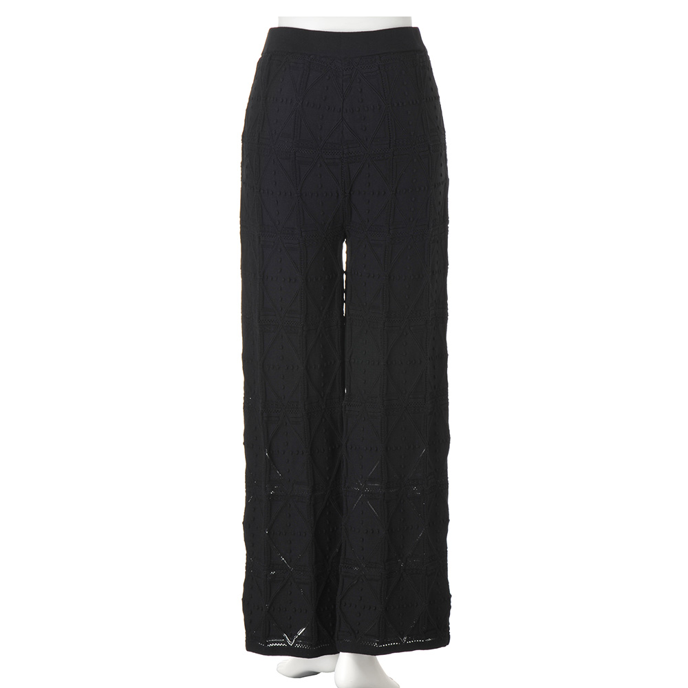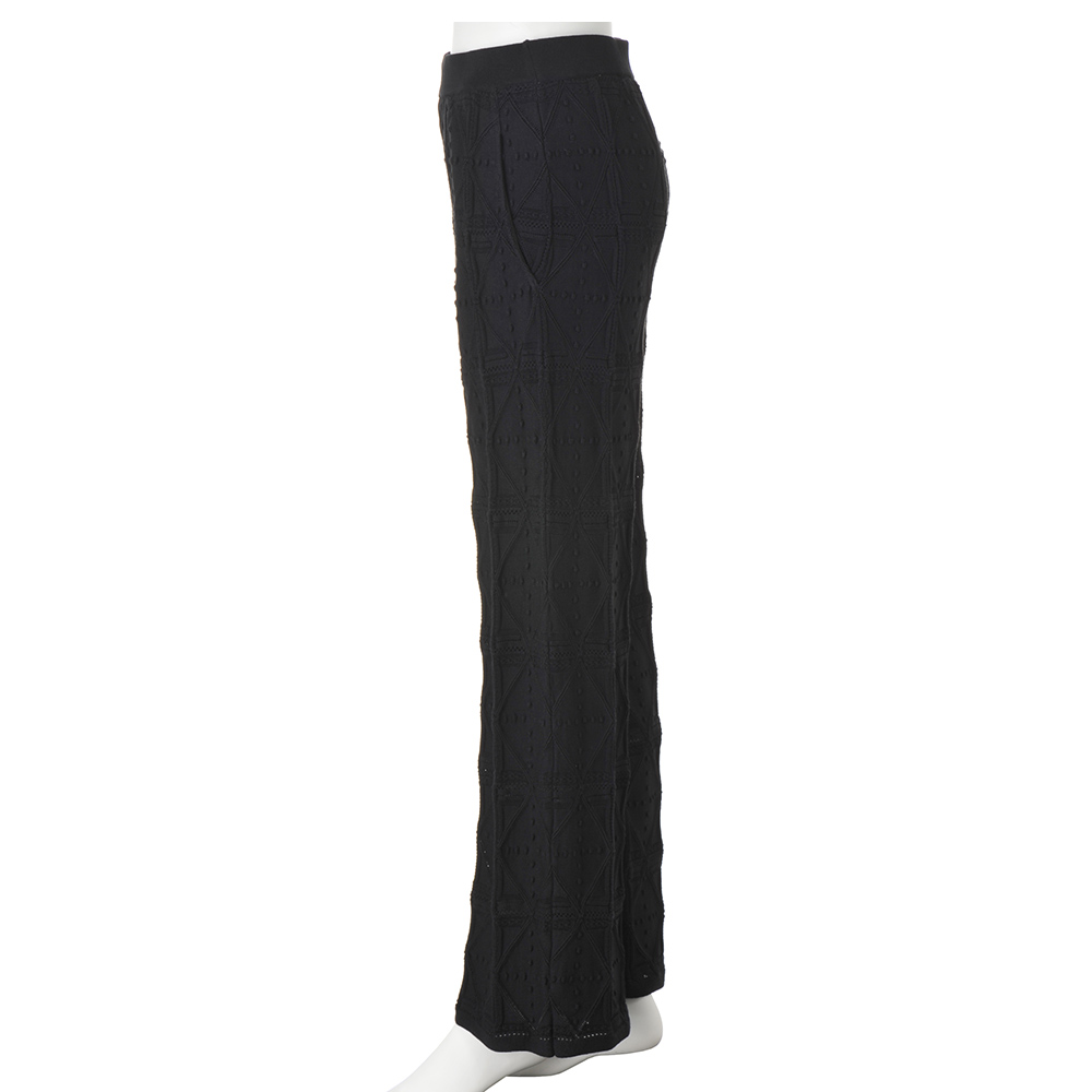 強撚コットン 幾何学柄編み ニットパンツ ストレートパンツ パンツ PC7169