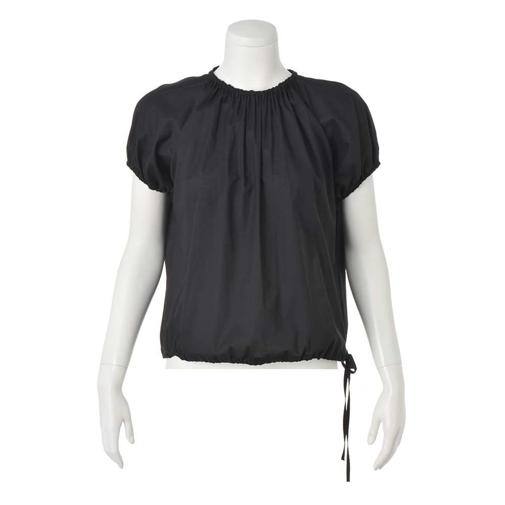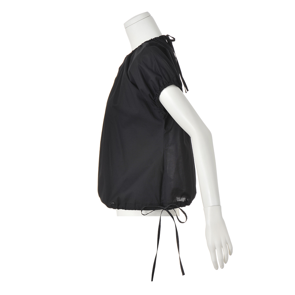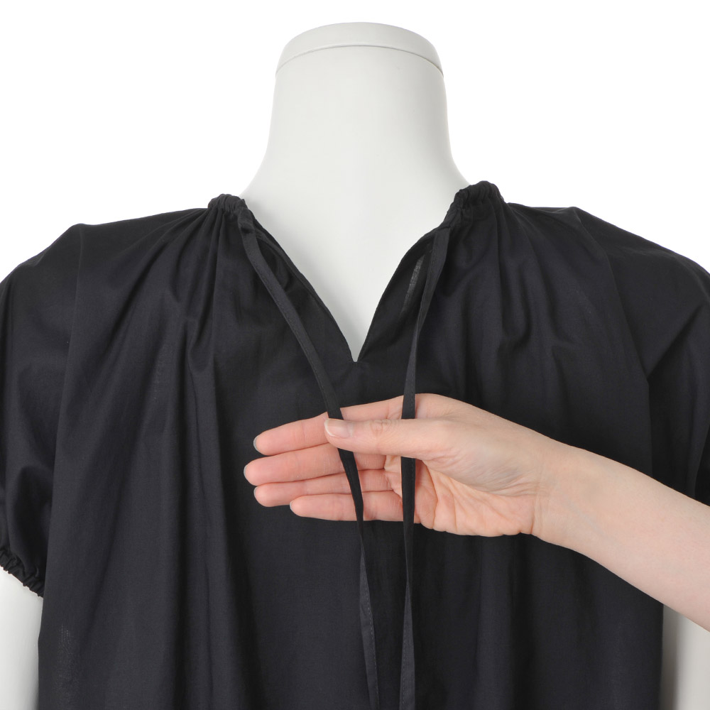 透ける、光る。涼しげで華やかな気配を纏うほんの少しの光沢や上品な透け感は、涼しげでありながら、着る人を華やかに見せてくれるもの。シアーな素材も、大人は落ち着いた色のトーンを選んでみる。すると美人度がアップする法則があるみたい。“涼しげに輝く人”を目指して。透けない軽さでふわり軽く薄く涼しい綿ボイル生地を、通常よりも少し糸密度を上げることで透けにくい仕様にしています。プルオーバーブラウスは、襟と袖口にギャザーたっぷりでキュート。裾のリボンを絞るとコクーンシルエットに。動きのあるスカート(商品番号PC7171)とブラウスはワンピース風にも、別々に着ても◎。