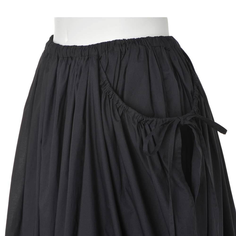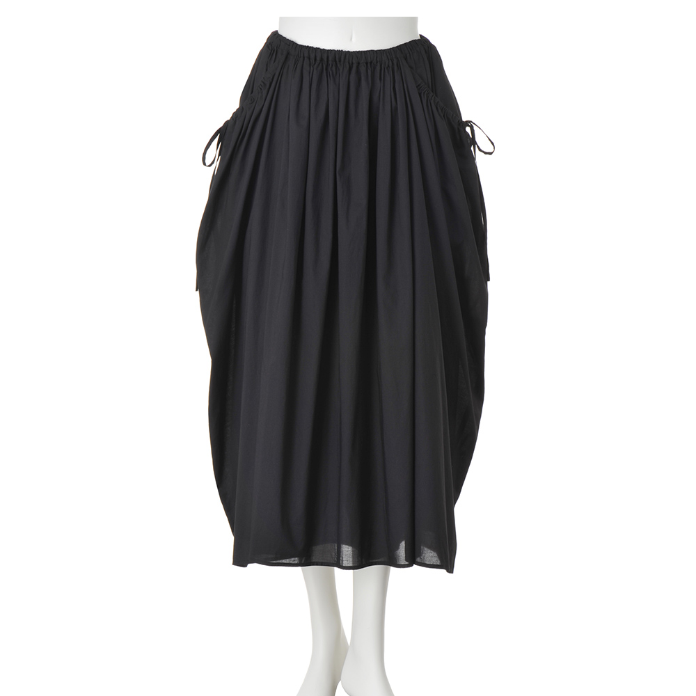 透ける、光る。涼しげで華やかな気配を纏うほんの少しの光沢や上品な透け感は、涼しげでありながら、着る人を華やかに見せてくれるもの。シアーな素材も、大人は落ち着いた色のトーンを選んでみる。すると美人度がアップする法則があるみたい。“涼しげに輝く人”を目指して。透けない軽さでふわり、ひらり軽く薄く涼しい綿ボイル生地を、通常よりも少し糸密度を上げることで透けにくい仕様にしています。ギャザーたっぷりのフレアスカートは、両サイドのポケット&リボンの部分で、実は二重になっているとわかる可愛らしいデザイン。動きのあるスカートとブラウス(商品番号PC7170)はワンピース風にも、別々に着ても◎。