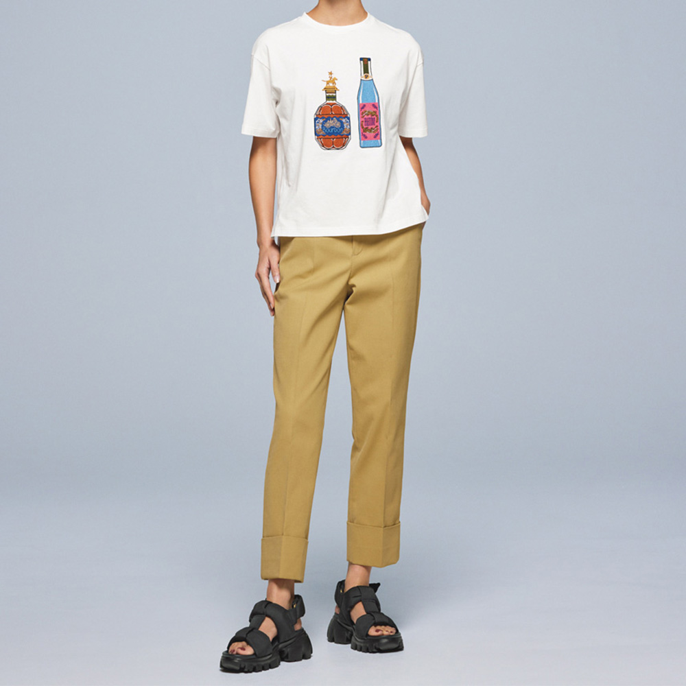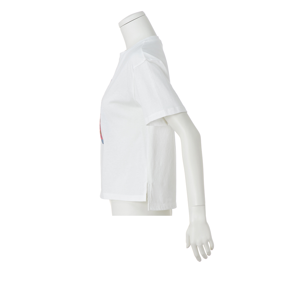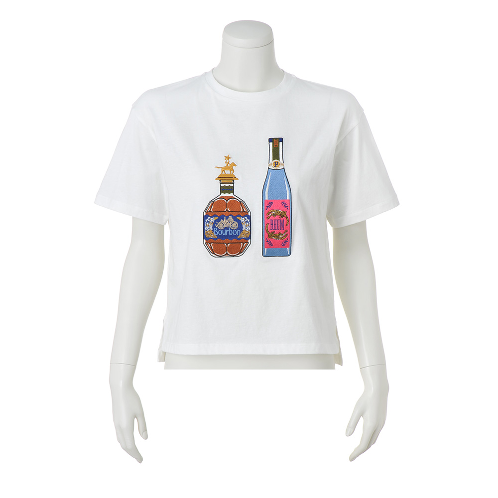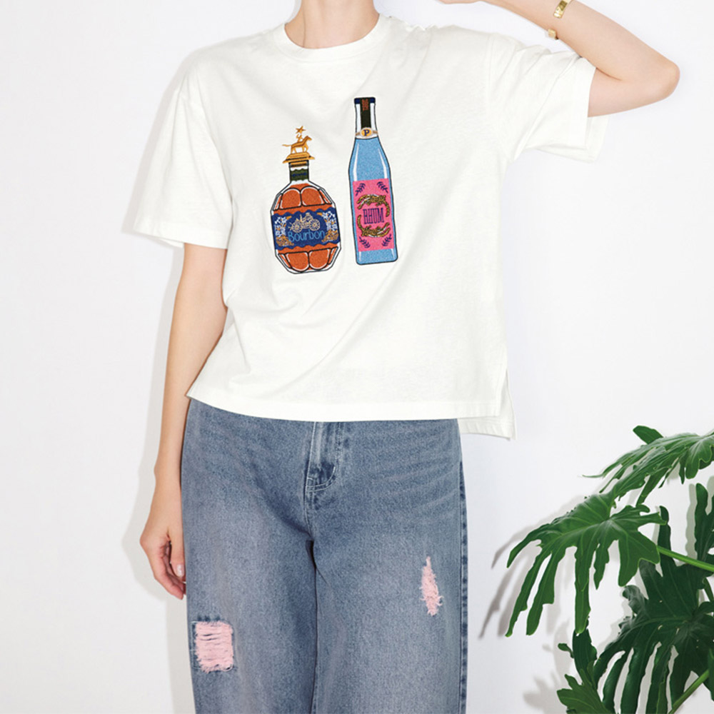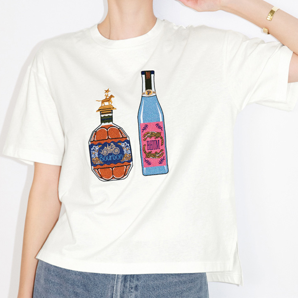 緻密で色鮮やかな刺しゅうが装いを彩って微光沢の糸で針目を詰めつつ立体的に刺しゅうしたのは、カラフルな色と動物モチーフが愛らしいボトル柄。素材は素肌に優しいコットン100%。少し身幅を広く、袖もゆったりとデザインし、涼味あふれる爽やかな着心地を追求しました。オーバーやインなど、さまざまに着こなせるよう、丈は短めで裾は前後差をつけたサイドスリット入り。≫ POINTホワイトとブラックともに刺しゅうは同じ配色。ポリエステル糸の刺しゅうだから、家庭での手洗いができるのも汗ばむ季節に嬉しいポイントです。