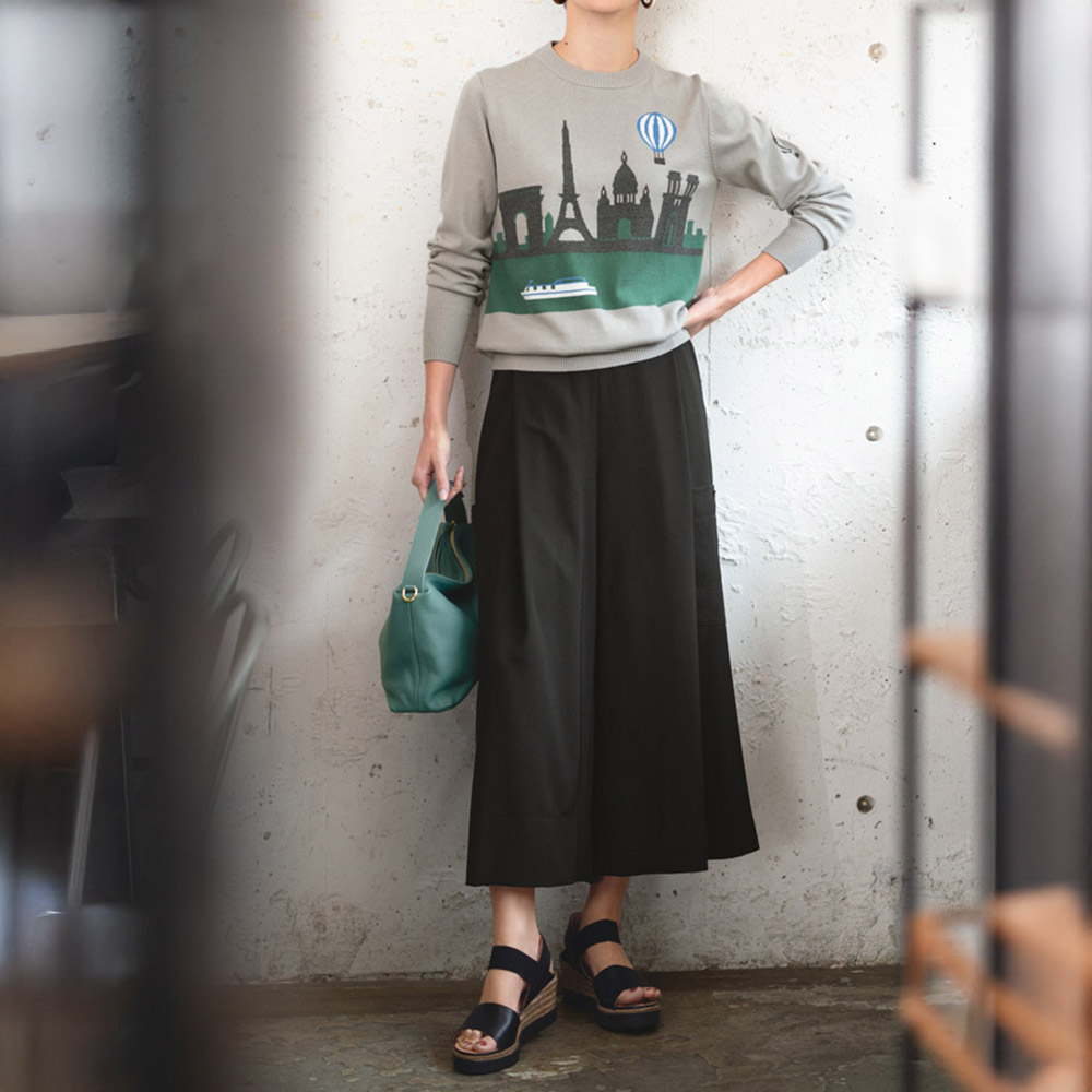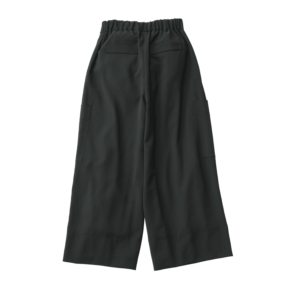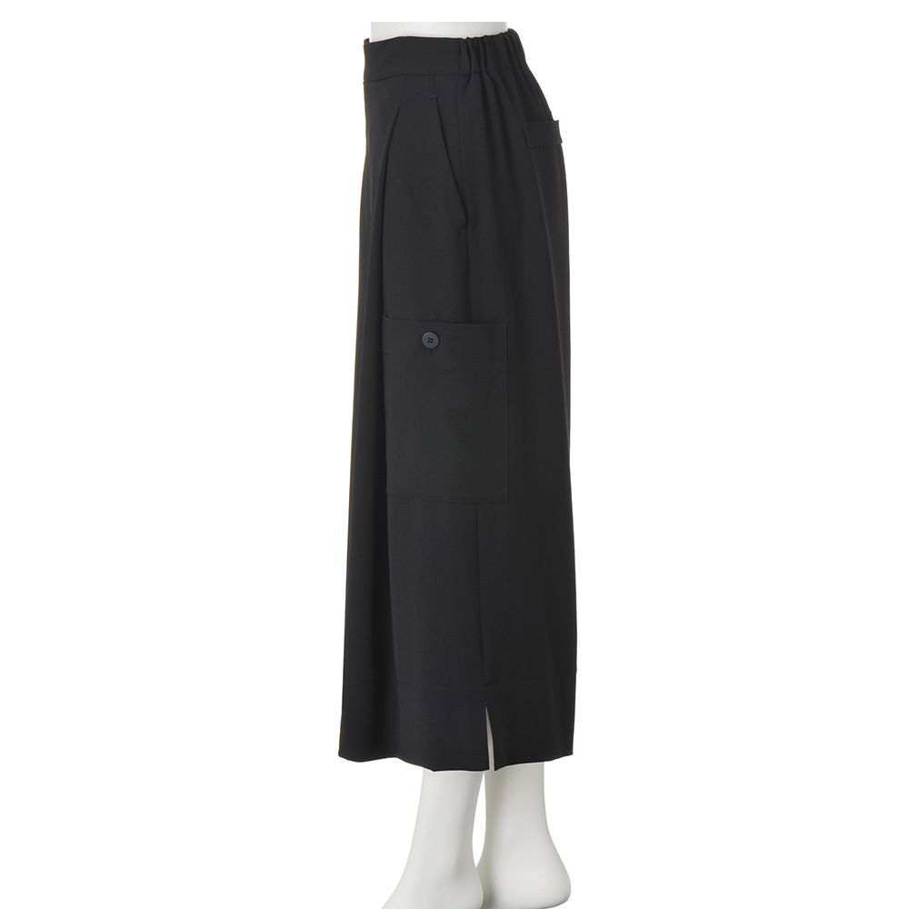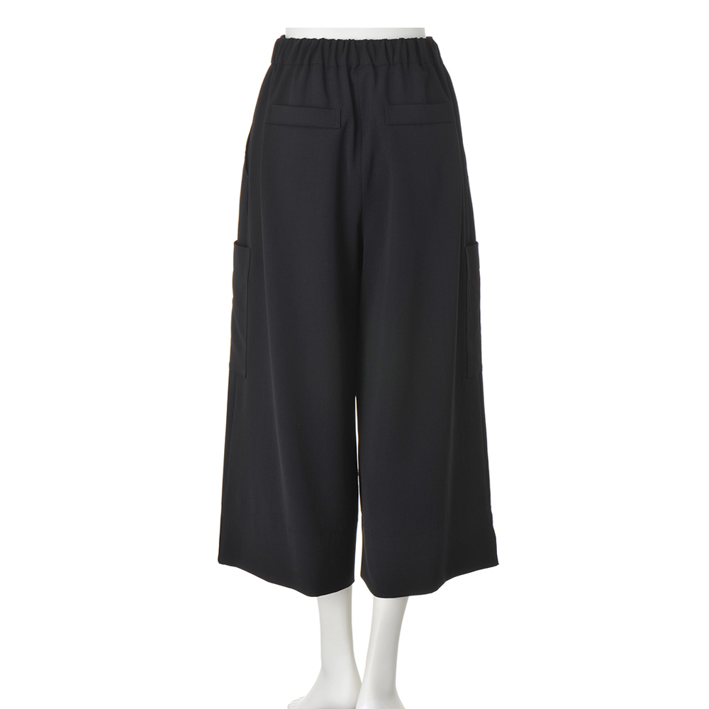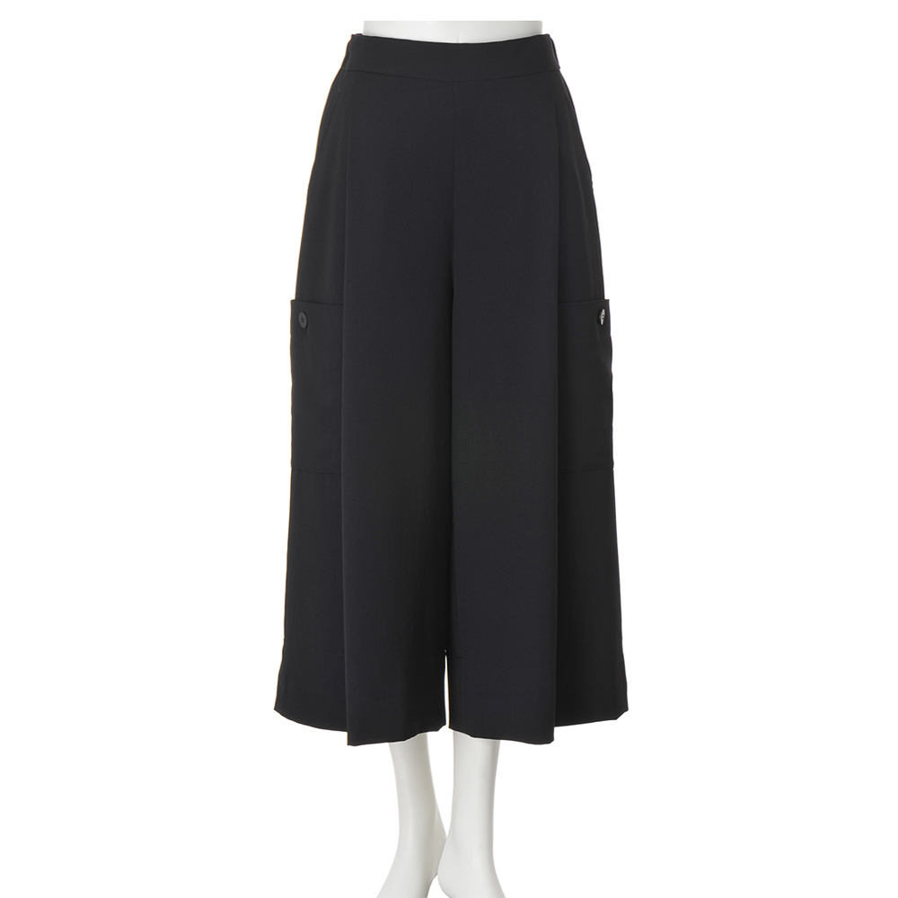 落ち感素材で仕立てたキュロットは、カーゴパンツ風のポケットがアクセント。フロントに深いタックを入れ、ボリュームのあるシルエットをつくっています。≫ POINTさらっとした肌触りのキュロットは、ウエストの後ろ部分にのみゴムを入れたプルオンタイプ。幅広く折り返した裾の両サイドにはスリットが。滑りのいい裏地つき。