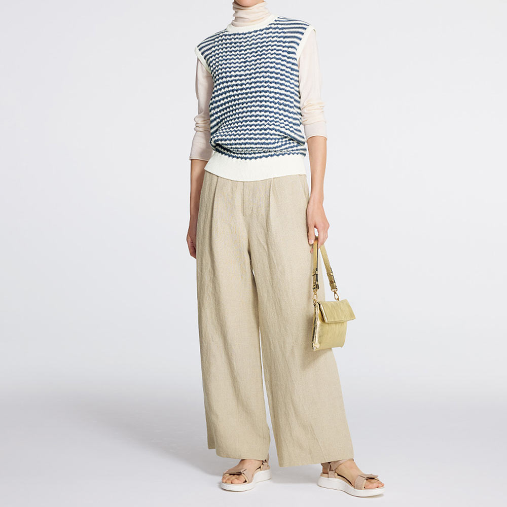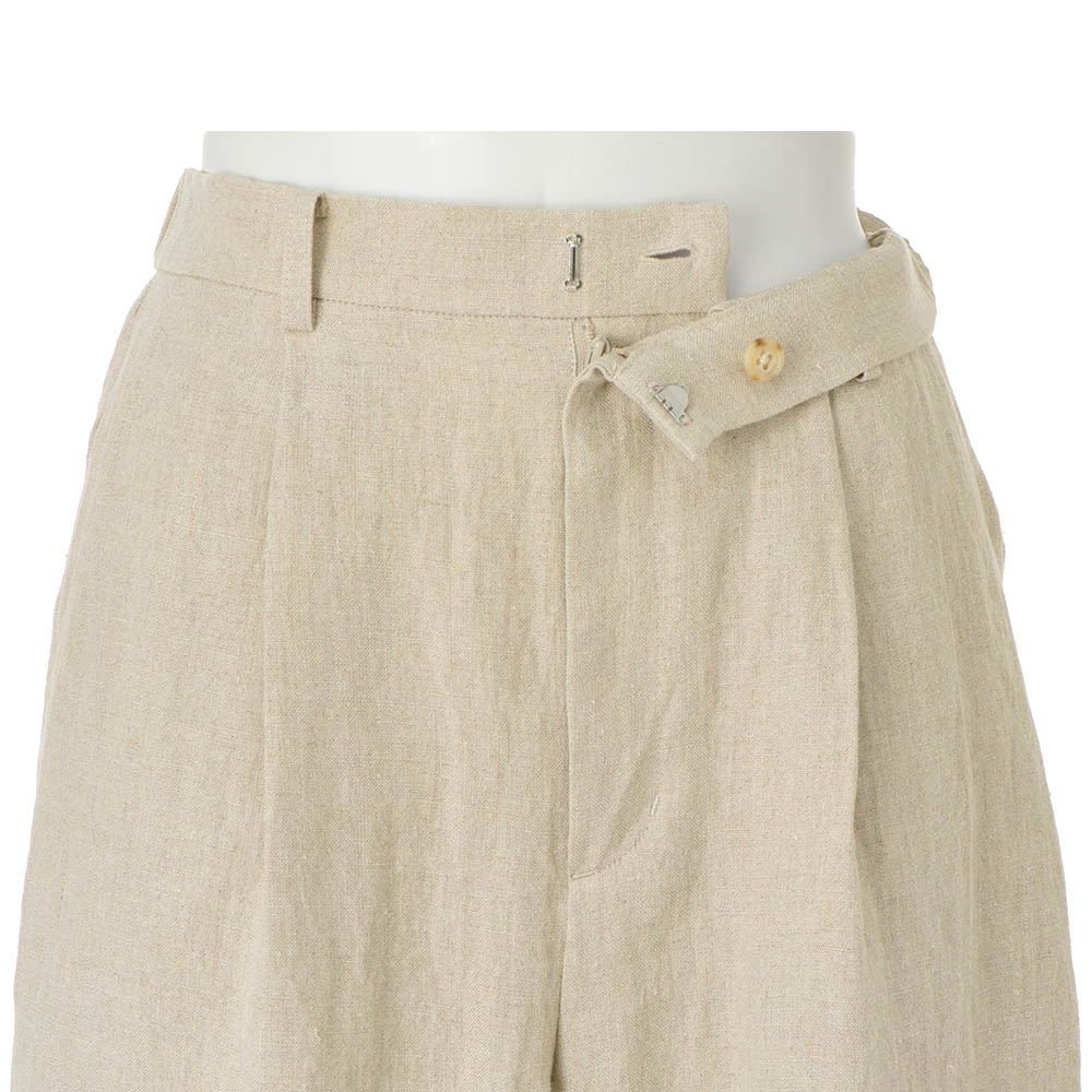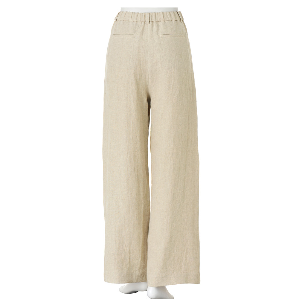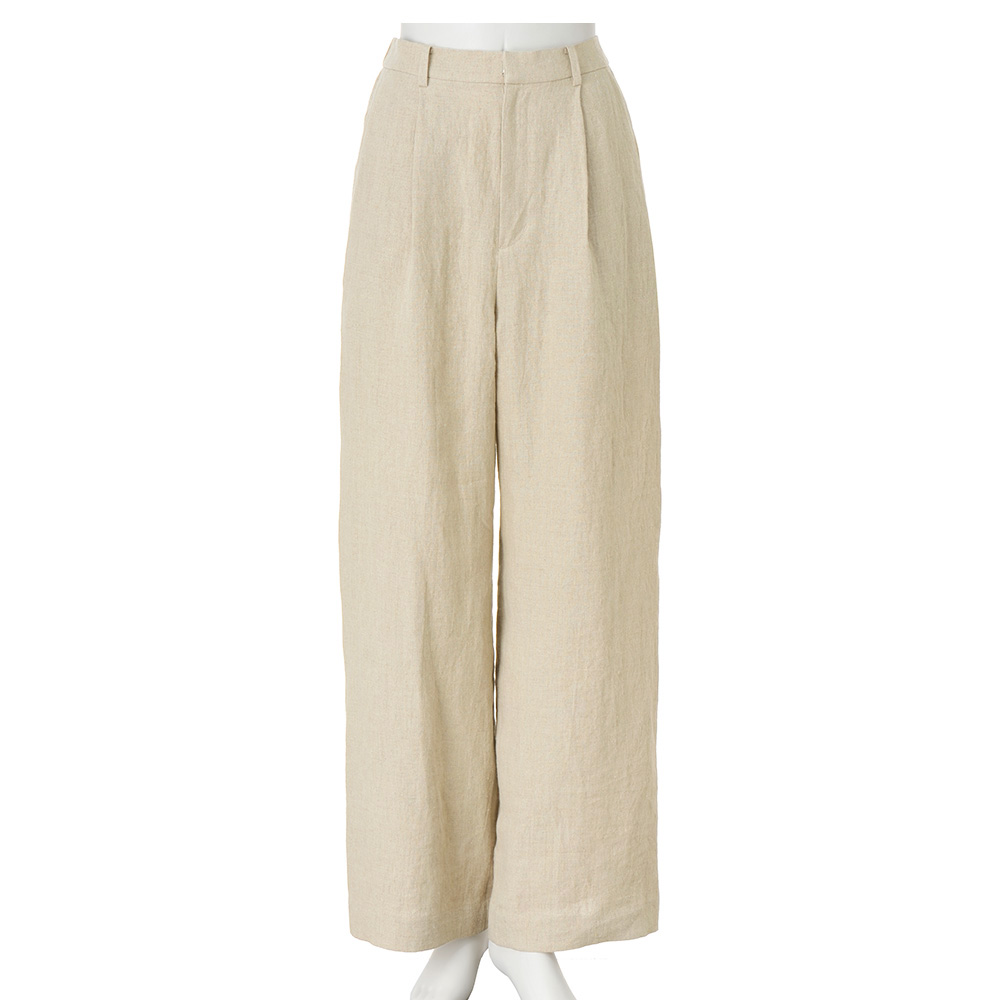 ワッシャー加工を施したリネン仕立てのセミワイド。着回しの利くシンプルデザインながら素材のニュアンスがトレンドライクな雰囲気を醸します。≫ POINT時間をかけた染色、生地に余計なテンションをかけない仕上げ…丁寧な工程でリネンのネップ感やワッシャー加工の風合いを活かしています。