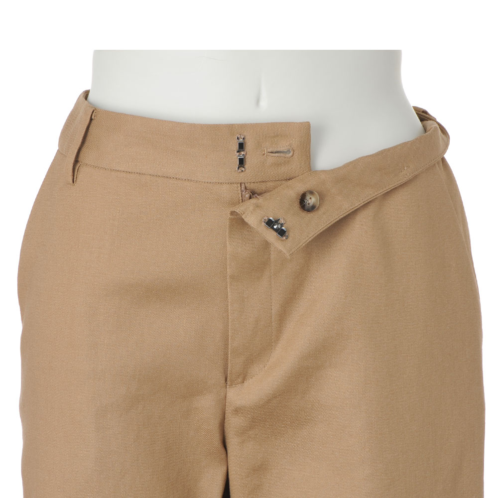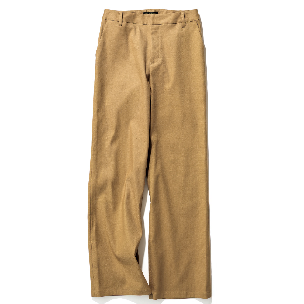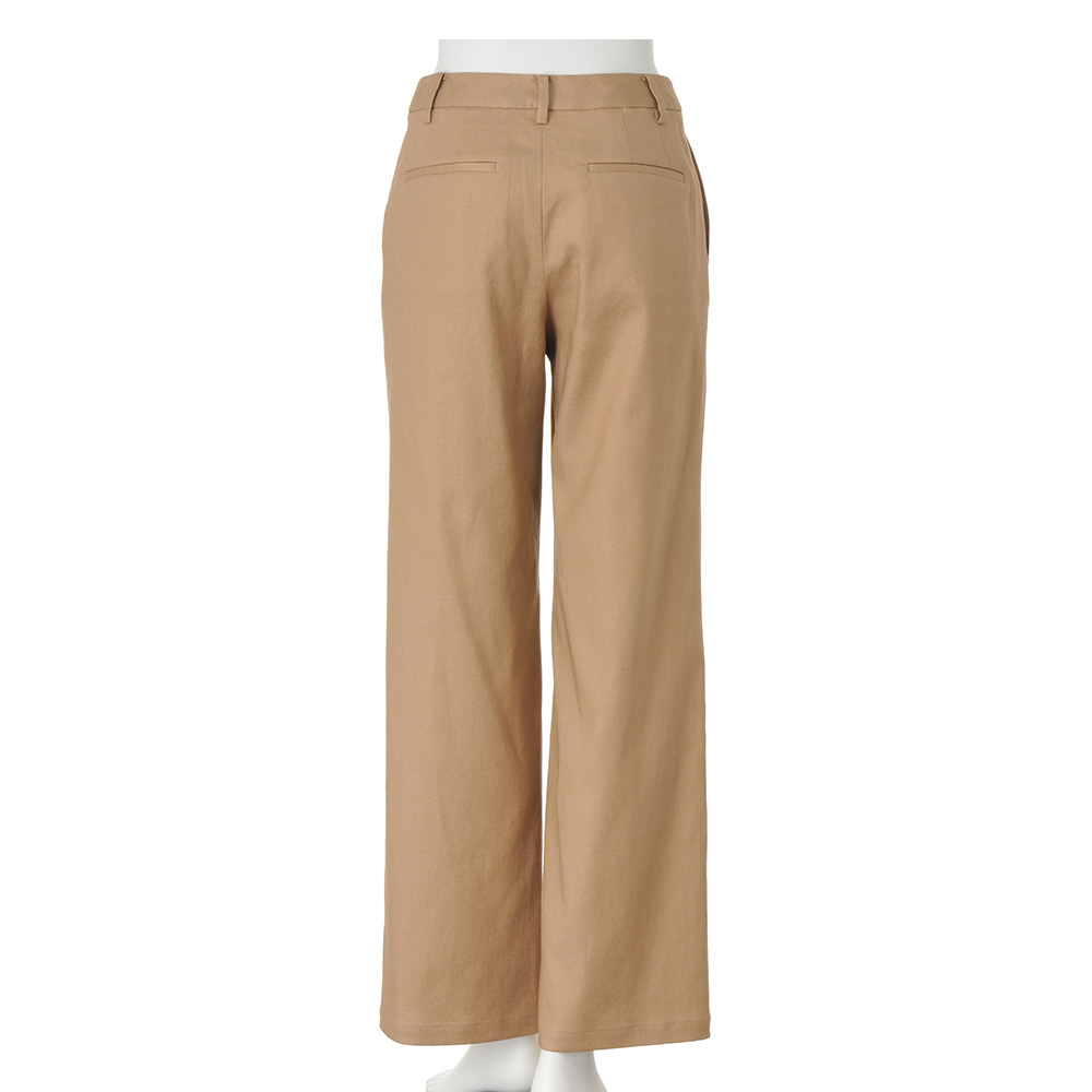 「帝国繊維(株)」のオリジナルのストレッチリネン。リネン本来の風合いを活かしつつ快適なストレッチ性やイージーケア性を備えたテキスタイルでDAMA プレミアム世代にふさわしいベーシックなアイテムを仕立てました。ストレッチリネン素材のセミワイドシルエット。ノータックでお腹周りをすっきり仕上げ、わたりから膝にかけて程良く絞ることで自然な美脚シルエットを演出します。≫ POINT片玉縁ポケットとダブルダーツで、腰位置が高く立体感のあるヒップラインを演出しています。