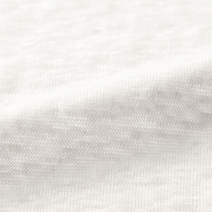 (ア)オフホワイト(花) material フレンチリネンジャージーに特殊な加工をほどこした、柔らかな風合い。上品な光沢感と洗うたび肌になじむ心地よさが魅力。