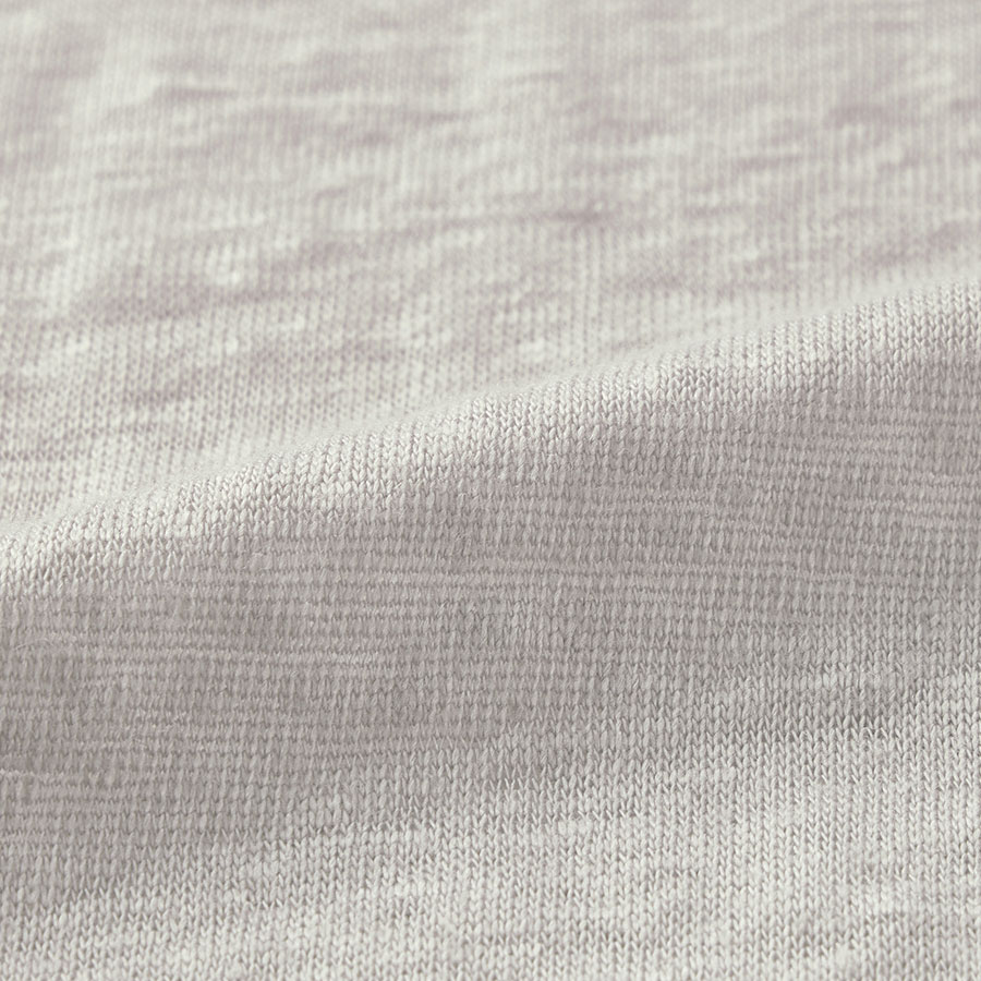 (イ)アイスグレー(空) material フレンチリネンジャージーに特殊な加工をほどこした、柔らかな風合い。上品な光沢感と洗うたび肌になじむ心地よさが魅力。