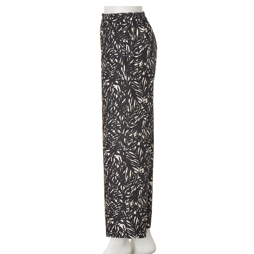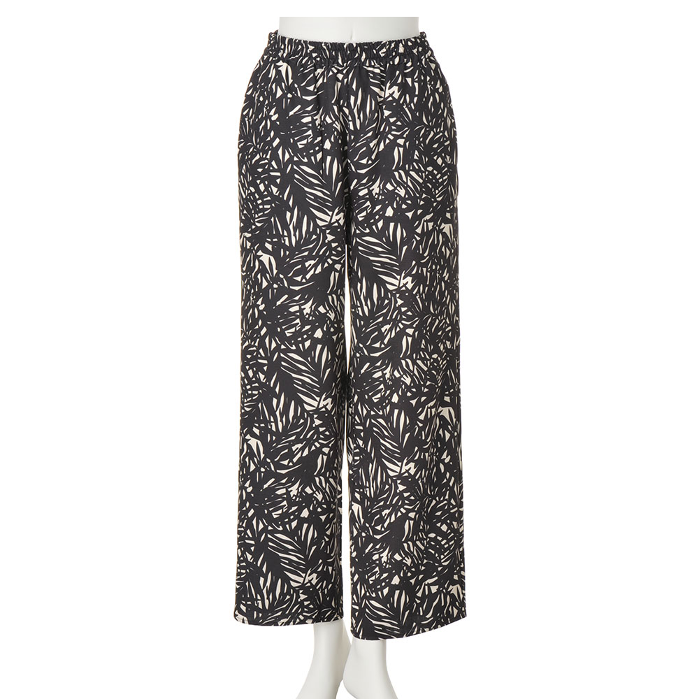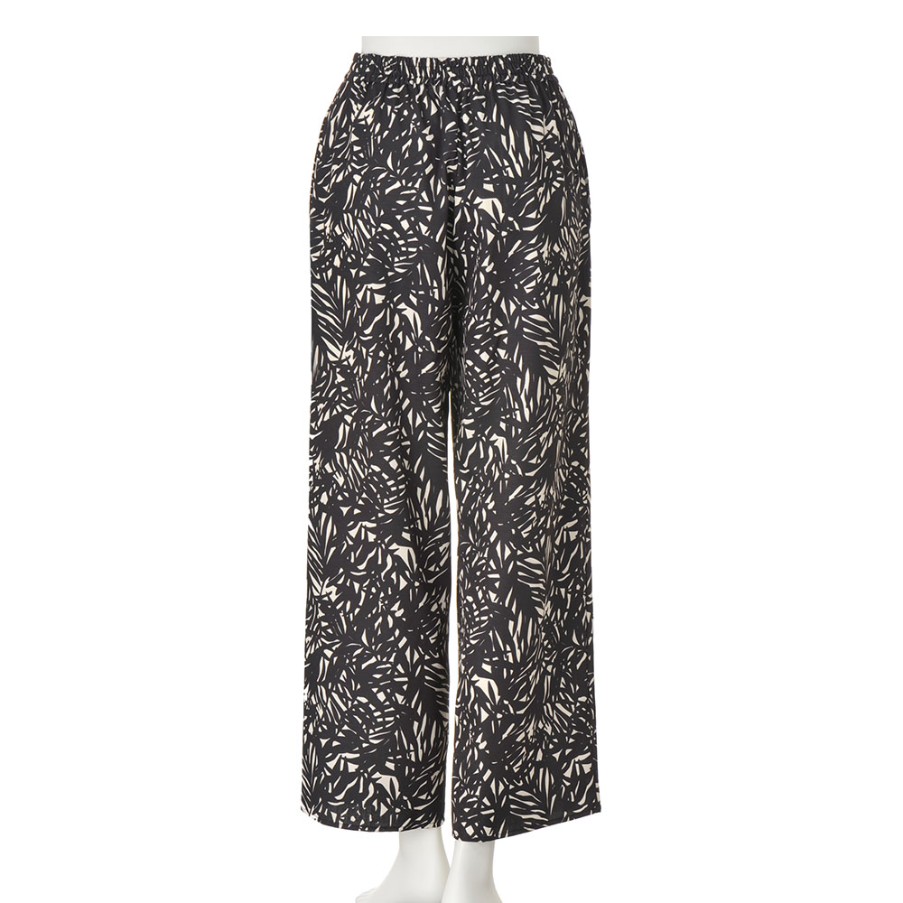マシンウォッシャブル リーフ柄プリント ワイドパンツ イージーパンツ パンツ PC7248