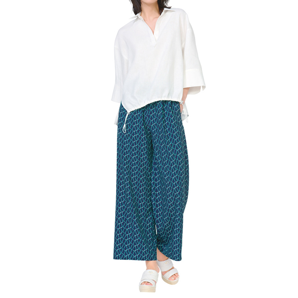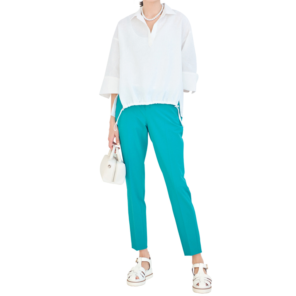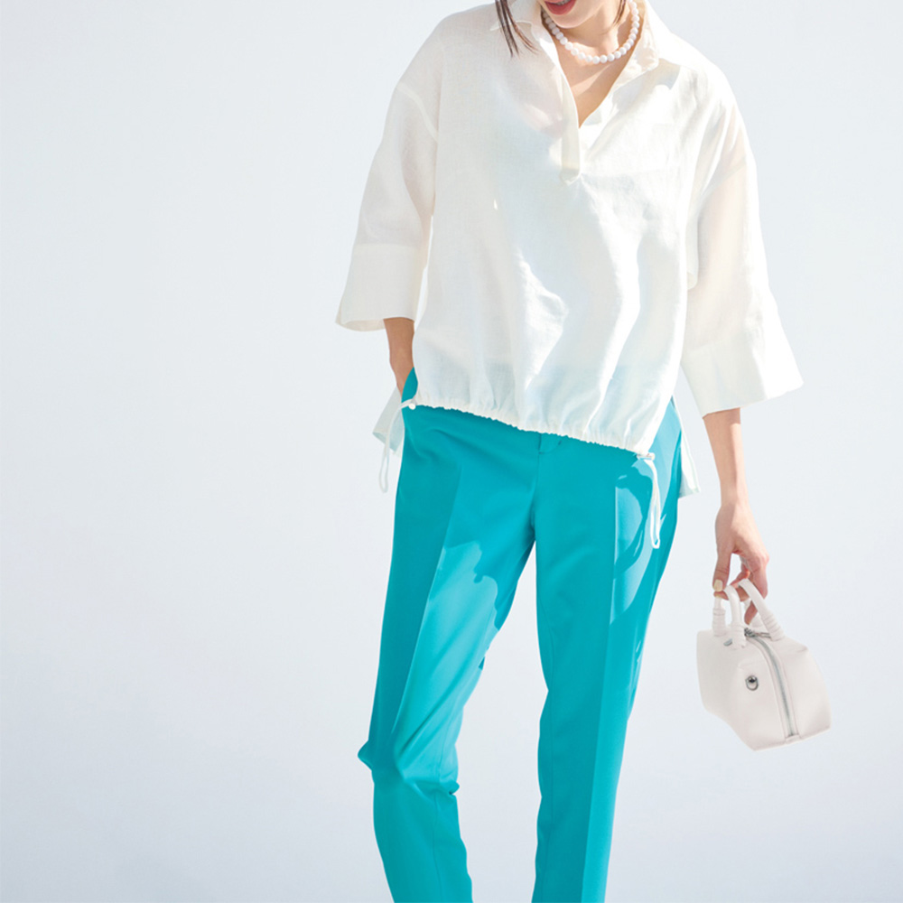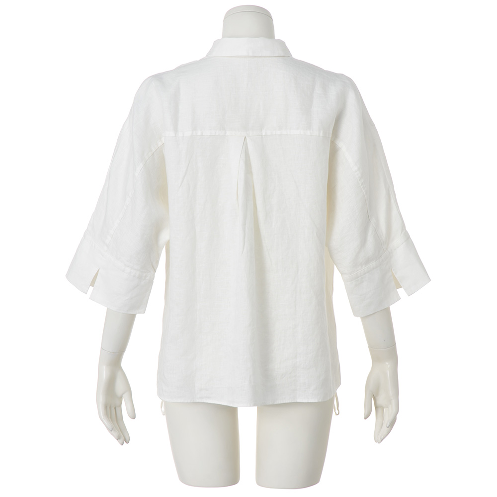 軽やかなフレンチリネンのブラウスでこなれる風が通るゆったりしたシルエットで、暑い時期でも心地よく過ごせるブラウス。着るたびに生地が柔らかくなり、自然にからだになじんでいく、フレンチリネンならではの風合いが楽しめます。デコルテが美しく見えるスキッパーの襟や、前裾のドローストリング仕様など、ゆとりがありつつも全体をすっきりした印象に見せるデザインの工夫も秀逸。[ウォッシャブル]