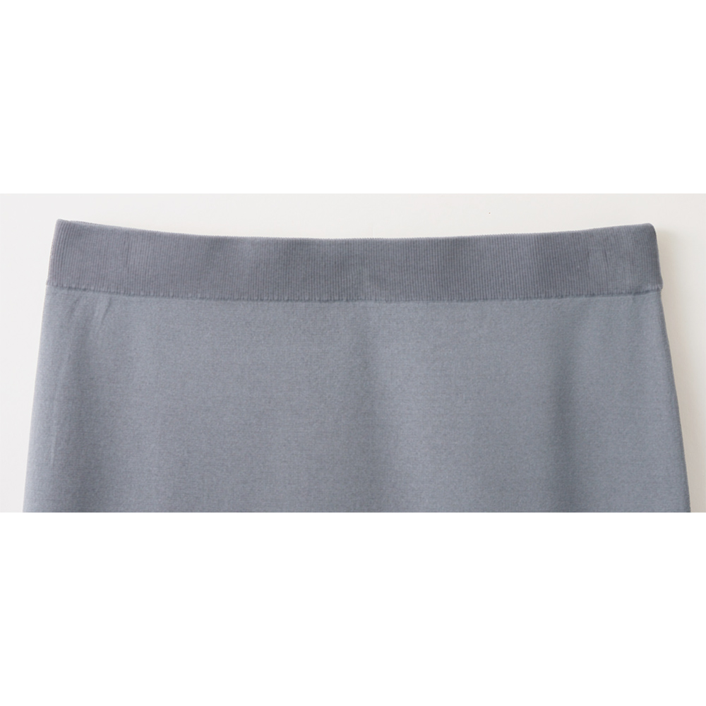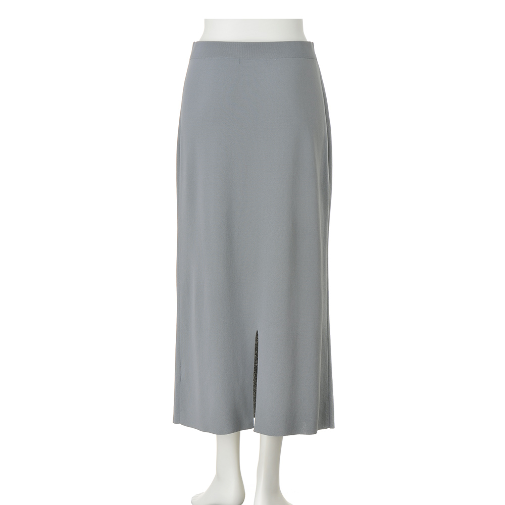 クールな色と素材で叶える清廉なシンプリシティクールなグレーに接触冷感機能が心丈夫な、ハイゲージのニット。ペンシルスカートは、スタイリッシュなロング丈。編み地はボディラインが響きにくいよう、総針編みにしています。ウエストは総ゴムで、着心地も快適なプルオンタイプ。ミニマルなデザインだからこそ、きれいな目面や美しく編まれたバックスリットなど、細部の拘りが上質感を後押しします。