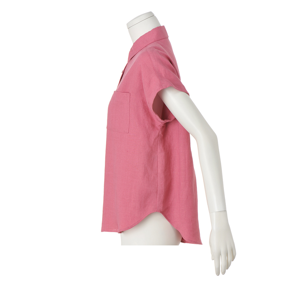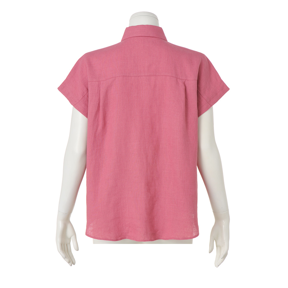 表情を明るく照らす麗し色のリネンシャツ豊かな風土と長い伝統が育んだ、生命力に満ちたリトアニアリネンを厳選し、細密に織り上げたのはリトアニア「LINAS」社。多幸感溢れる色を気負いなく着ていただきたくて、装飾を削ぎ落したシンプルなシャツに仕立てました。もちろん、テクニック要らずで着映えする工夫は随所に。身頃続きのフレンチスリーブは、肩から二の腕のラインを華奢に演出。さらに肩ヨークを前振りにすることで、細見えとリラクシーな着心地を両立させています。本貝のボタンやスクエアポケットも、きりりと知的な雰囲気を盛り上げるのにひと役買って…。後ろ身頃はヨーク下に左右2か所のタックを取り、さりげなく背中を包み込むシルエットに。前を開けて羽織りにするなど、様々にアレンジが利く一着です。