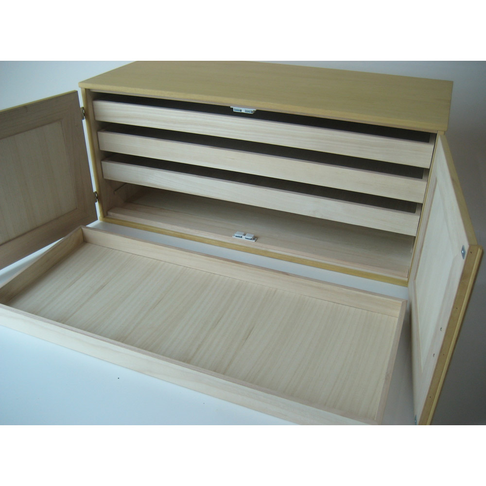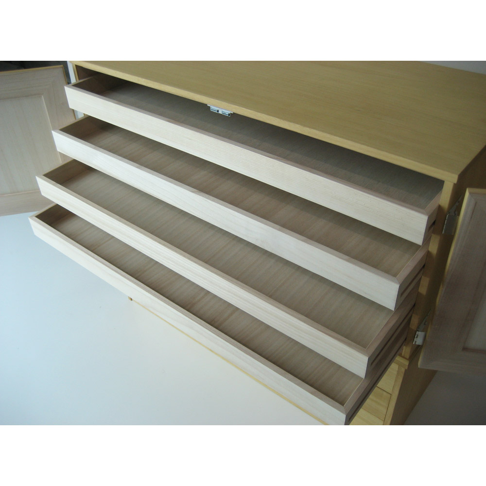 和盆が取り出しやすい 扉が大きく開くので和盆がラクに取り出せます。たとう紙は折らずに収納可能。