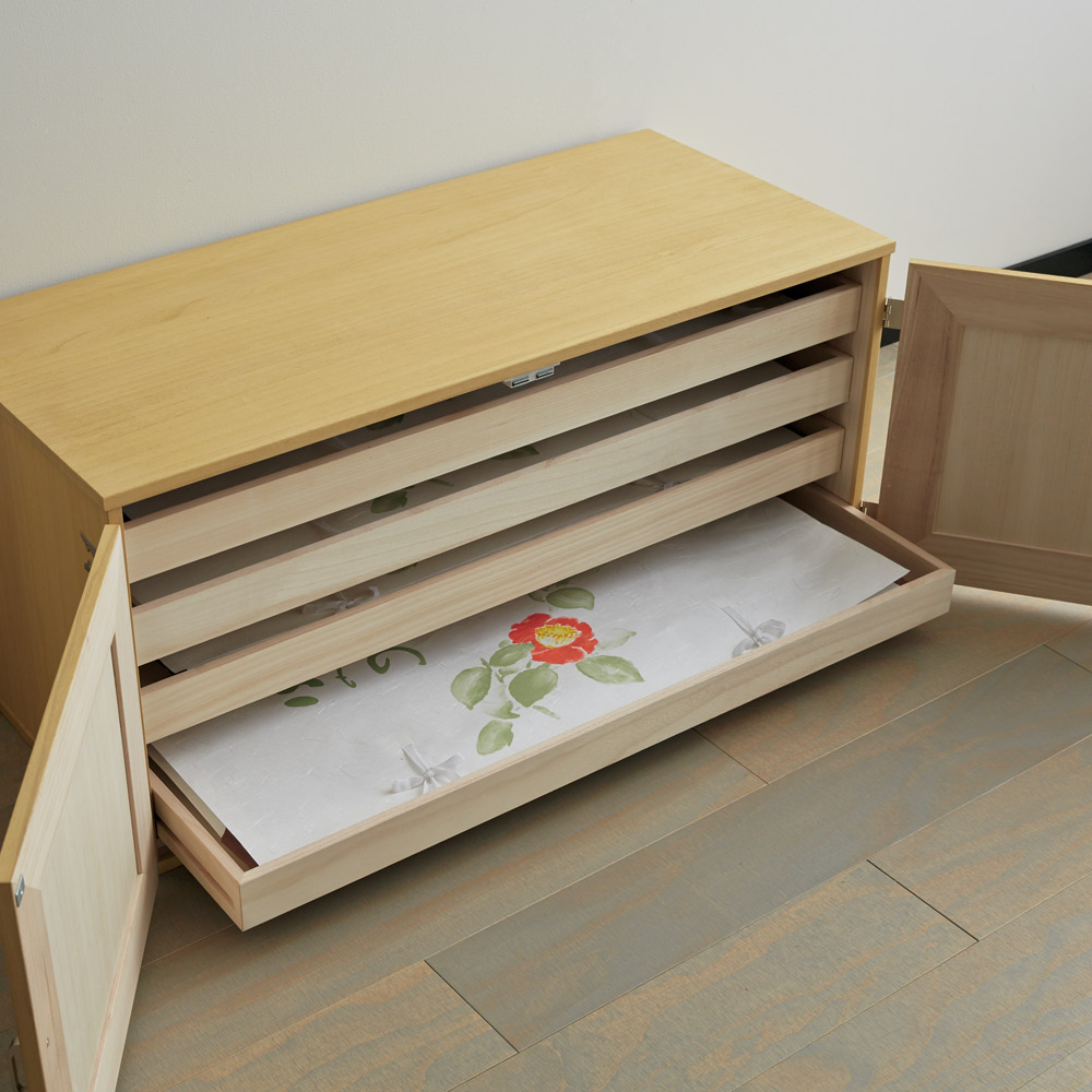 たとう紙をスッキリ収納。引き出し1段あたり、たとう紙が3枚入ります。