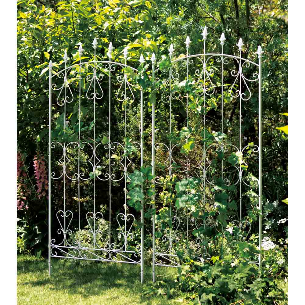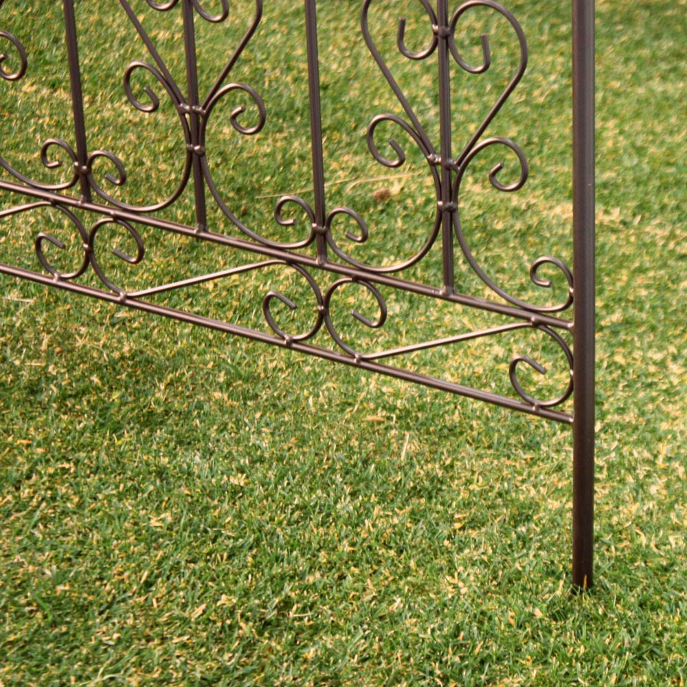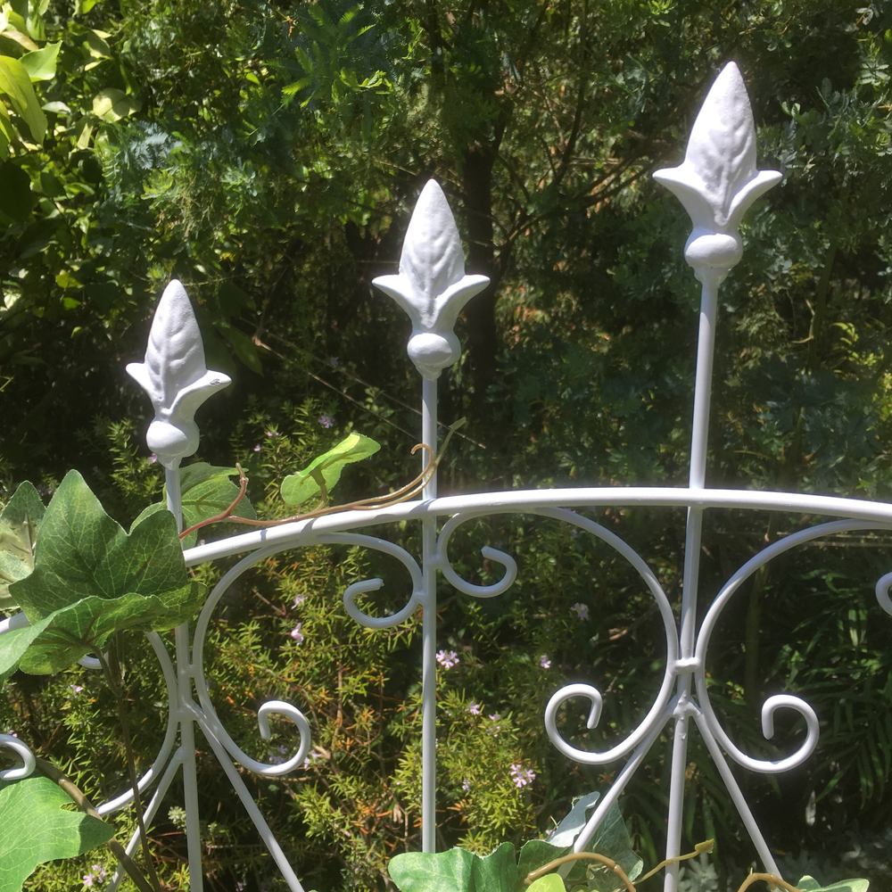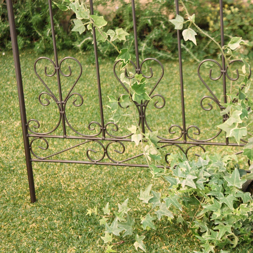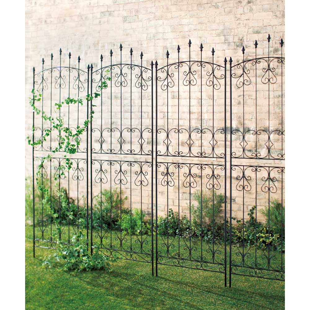 ※スチール製品は素材の特性上、経年変化でサビが発生致します。長くお使い頂くために、お届け直後の錆止め材の塗布をお薦めしております。 また、ご使用開始後も定期的なお手入れをお薦めします。(お手入れ方法&取り付け方法)ヨーロッパの古城を思わせるクラシカルなデザインフェンス。トレリスとして、お庭の間仕切りとして。柵としてやんわりと視線を遮って。目隠しにもぴったりです。重厚感あるアイアン製のフェンスは、イングリッシュ風ガーデンにもしっくりなじみます。フェンス突端にしつらえた鋳物の装飾が、古城をイメージさせるデザイン。並べて使用すればお隣との境界、お庭を仕切るガーデンフェンス風に使えます。クレマチスなどの繊細なツル性植物と合わせれば、荘厳な表情に。オフシーズンのお庭にも賑わいを添えてくれます。【フェンス・トレリス】お隣との境界やお庭を仕切るガーデンフェンスとしてはもちろん、つる性の植物を這わせてトレリスとしての使い方もおすすめ。デコラティブなデザインのフェンスは、オフシーズンのお庭にも賑わいを添えてくれます。