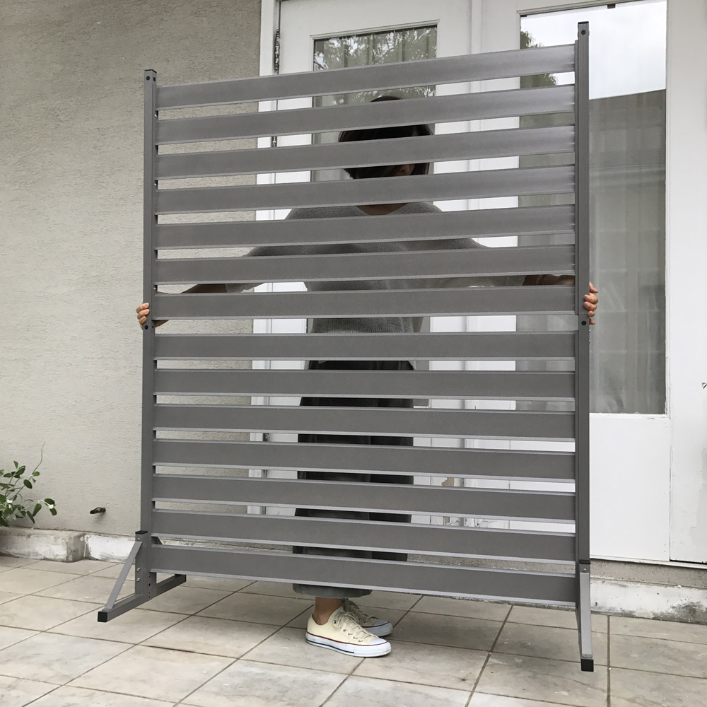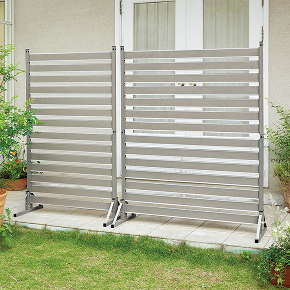隠したい背景や視線をカバー本格派フェンスをお手軽に。目隠しして、きれいな背景づくりを◆隣家裏の雑多なものが背景に…外からの視線が気になる…と感じていませんか?◆背景を目隠しして、お庭にプライベート空間をつくることができるエクステリア用品です。◆グリーンが映え、お庭にも溶け込むシンプルデザイン。ナチュラルガーデニングをお好みの方にもおすすめ。腐りにくく、長持ちするアルミ製◆サビに強く耐久性の高いアルミ製。◆雨やサビにも強く、害虫被害もうけにくい人気の素材です。人気のボーダー柄フェンス◆目隠ししながらスタイリッシュな印象のボーダー柄。◆色はおしゃれで上品なダークブラウン・シルバーをご用意。組立簡単で軽量◆組立はもちろん、軽くて扱いやすいので女性でも安心。◆連結して挿し込むだけの簡単連結。コーナー使いも可能です。◆固定用ペグで、簡単に、しっかりと設置できます。◆専門店のような仕上がりのプライベートガーデンがらくらく完成する簡易フェンス。
